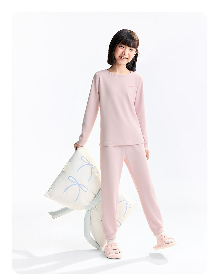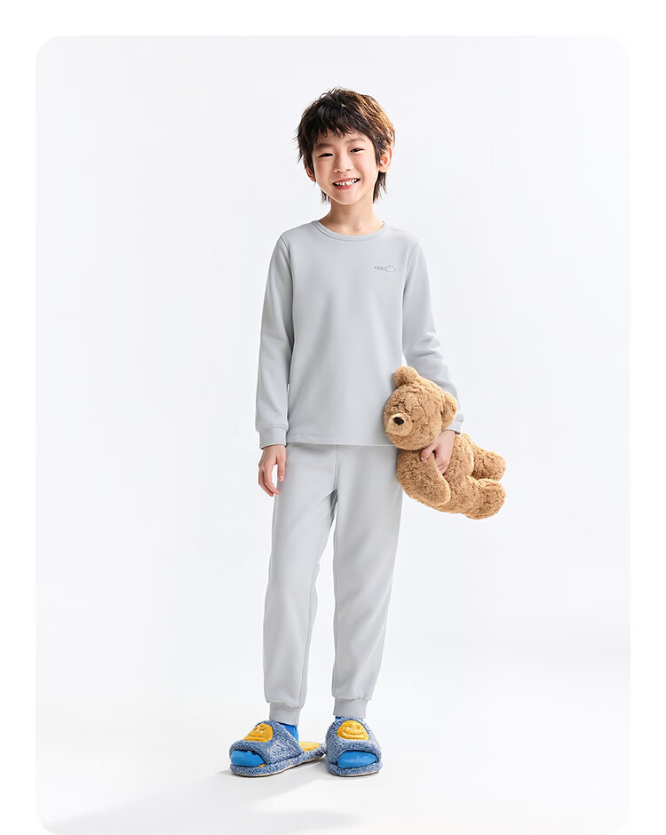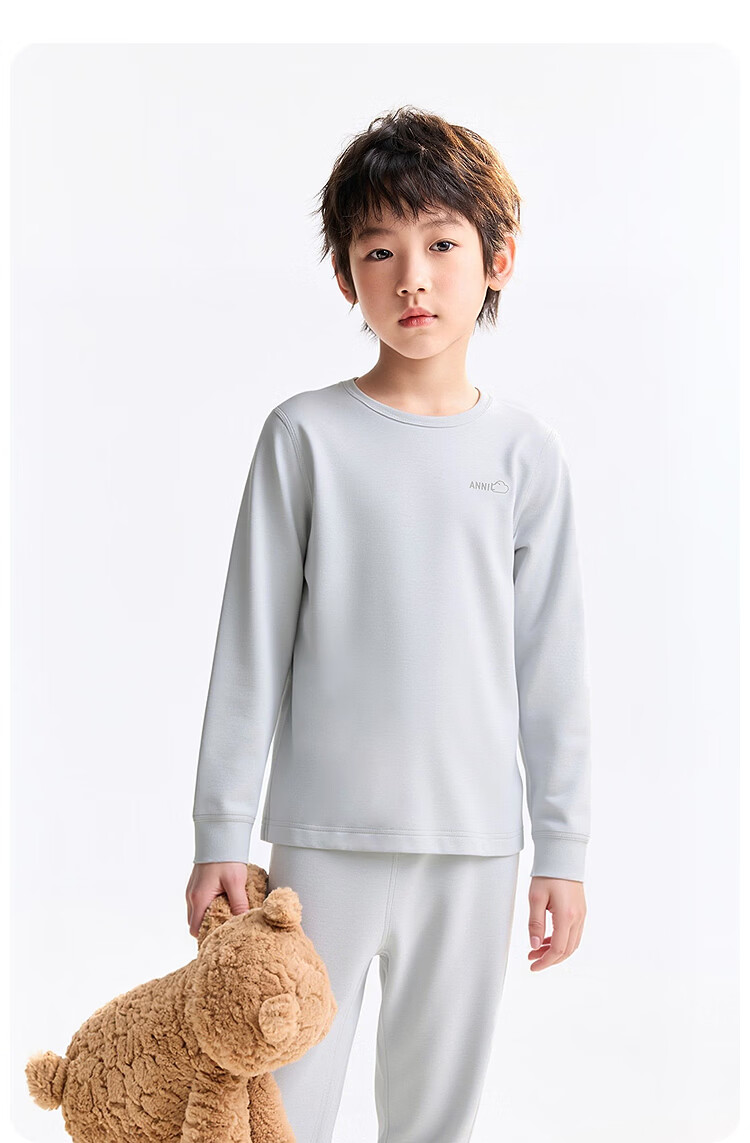 Anne's men's and women's clothing cotton bottoming autumn clothes and pants set 2026 spring new long-sleeved pajamas and pants home clothes light lotus gray 120