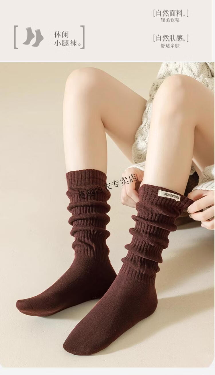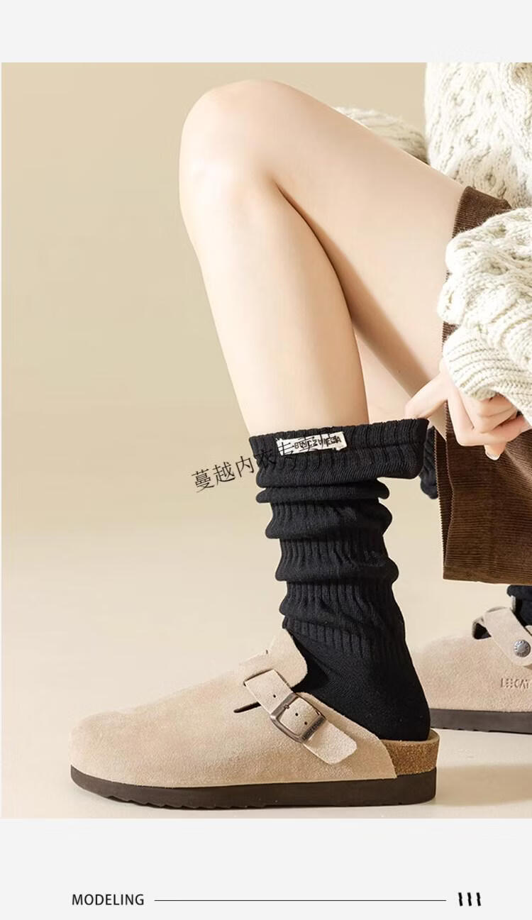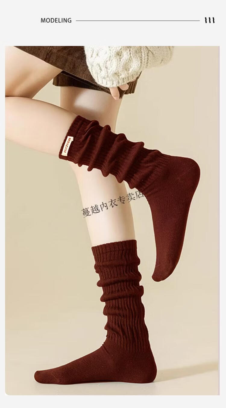 Modal Angora red socks women's pile socks pure cotton 2026 new spring and autumn Maillard color calf stockings 2 black 2 white
