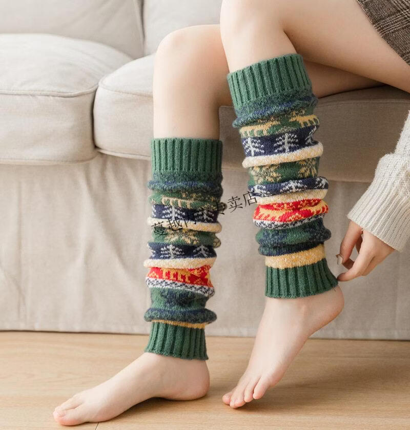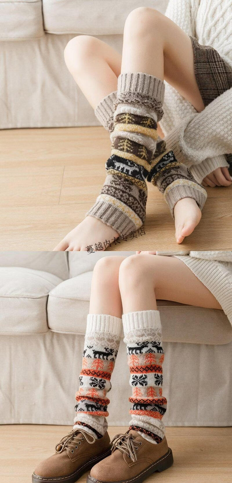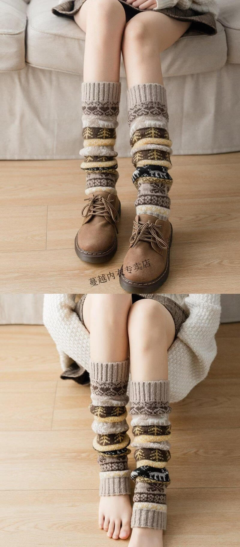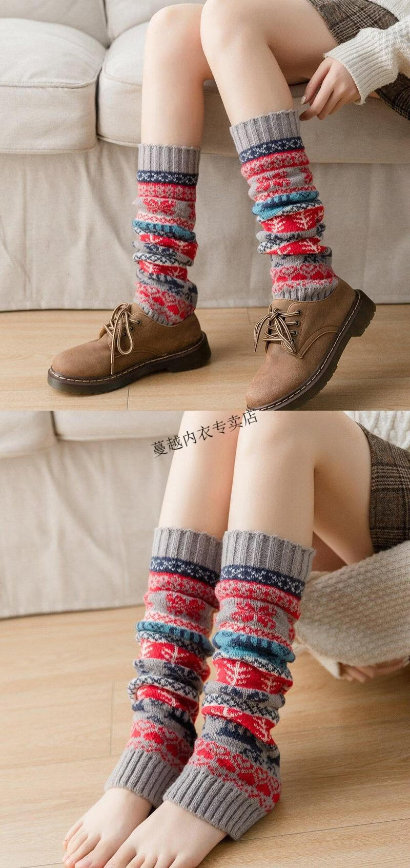 Modal Japanese autumn and winter calf warmers, ankle and leg warmers, socks, ankle and leg warmers, women's foot warmers, cold protection artifact, red, one size fits all