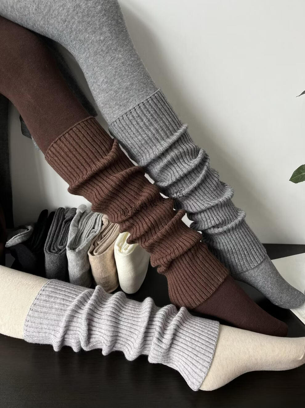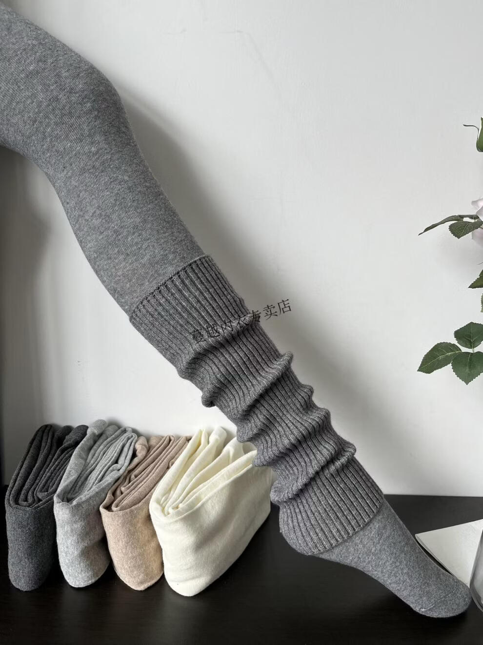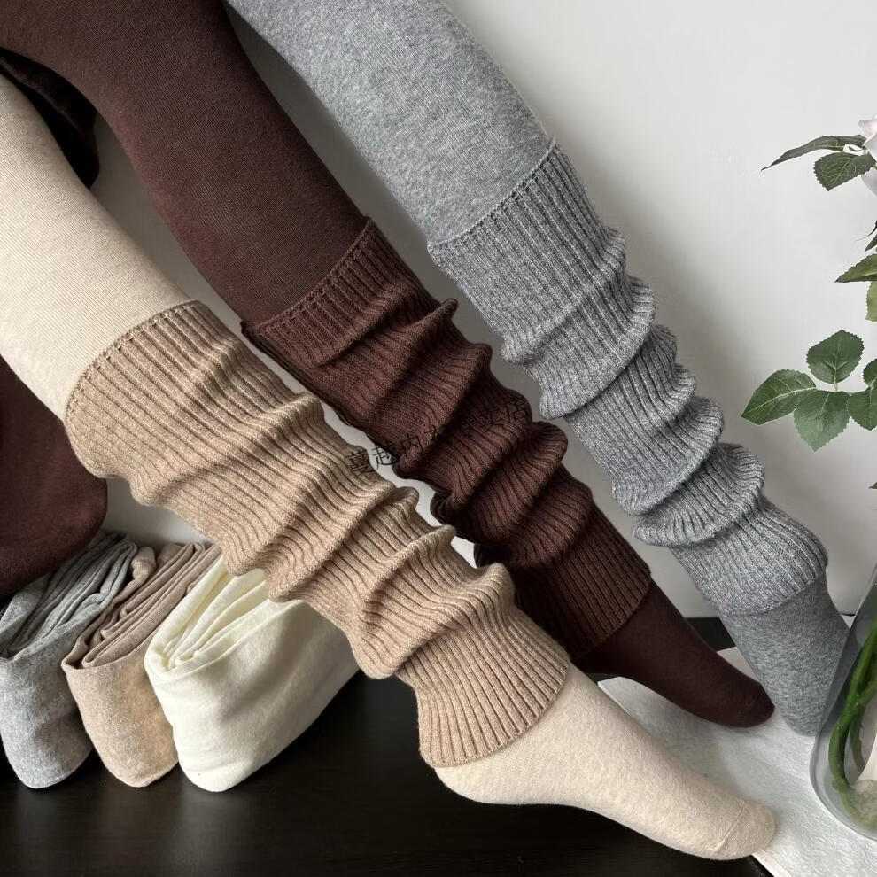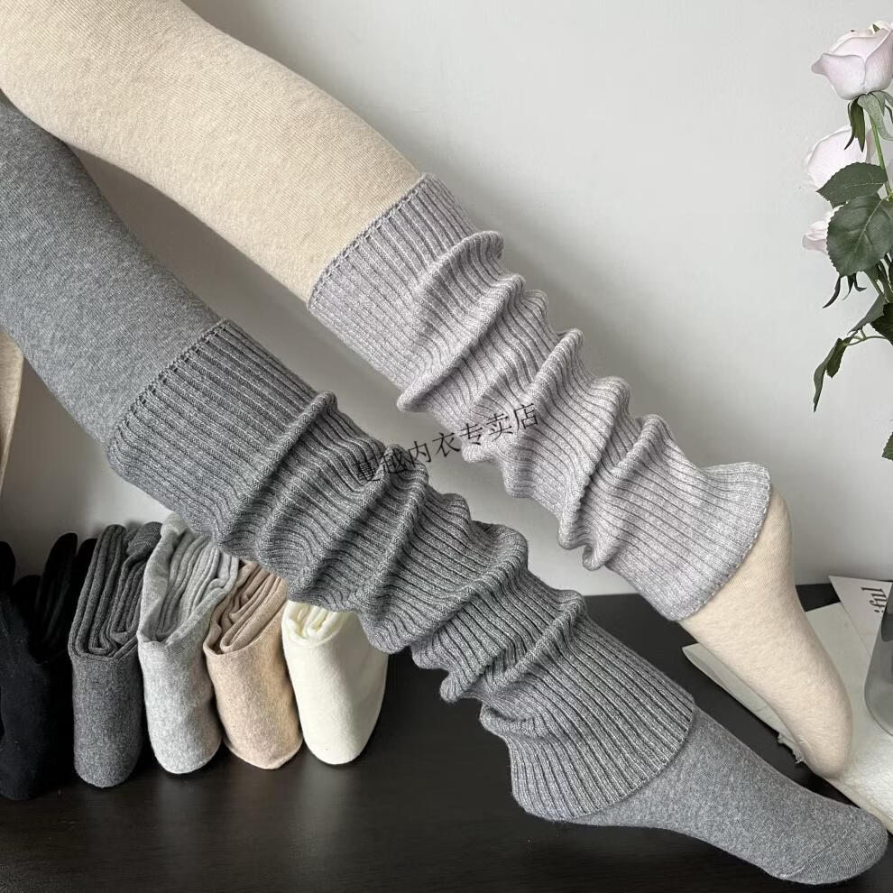 Modal American retro stacked smoky gray cashmere socks for women in autumn and winter, fashionable, cool and versatile brown knitted leg covers, smoky gray (40cm)