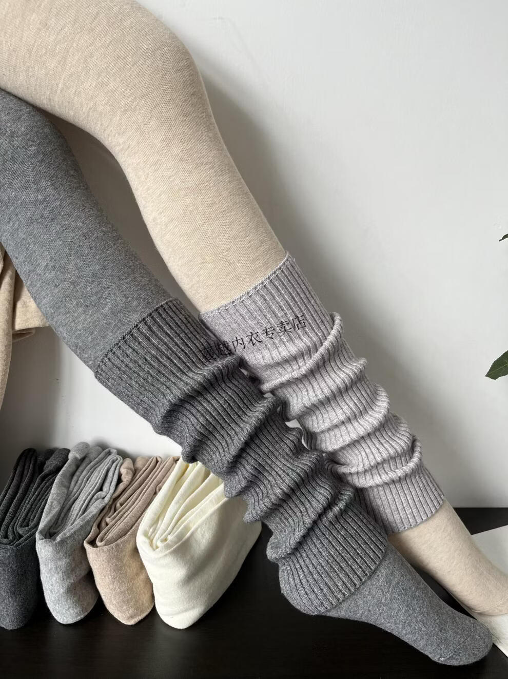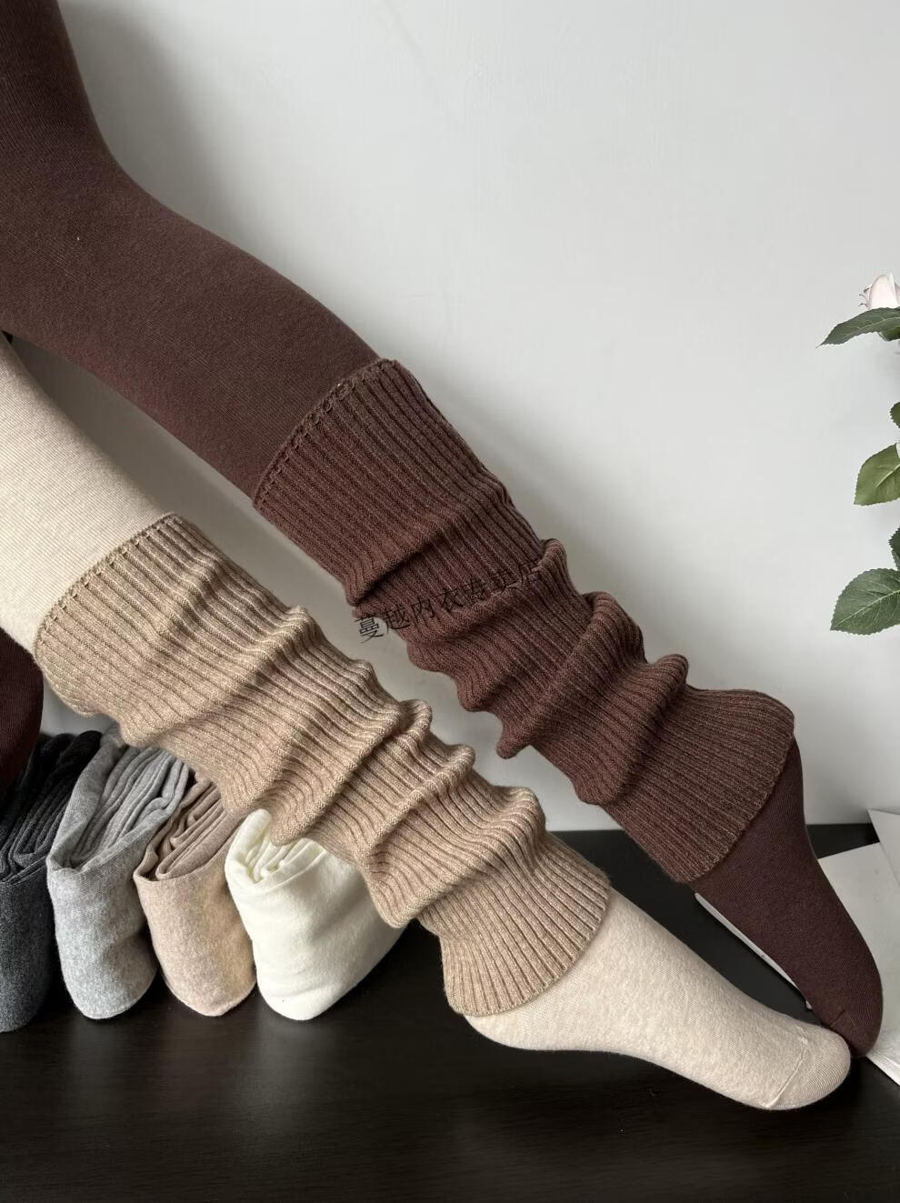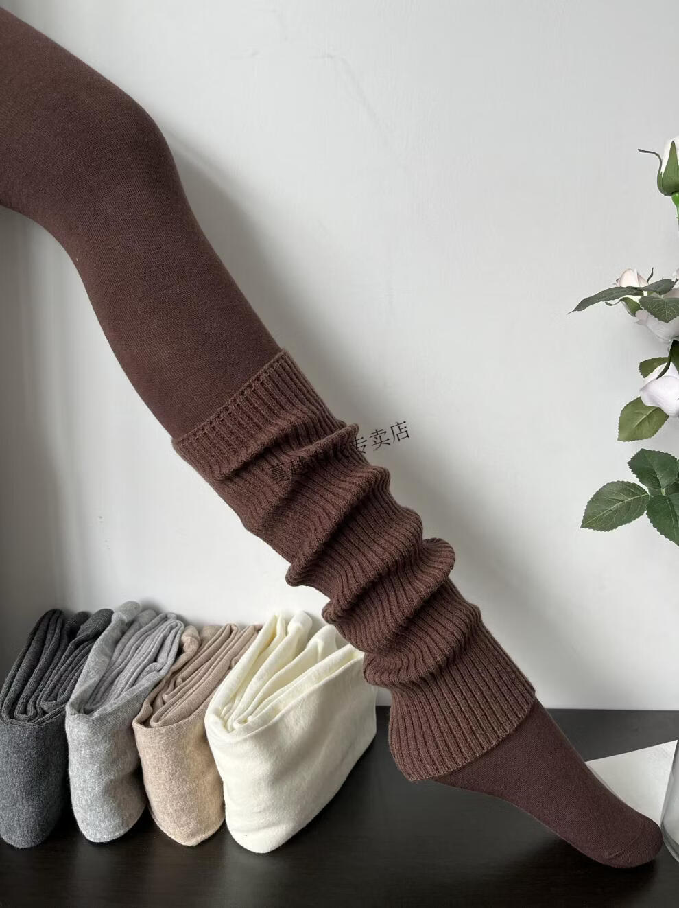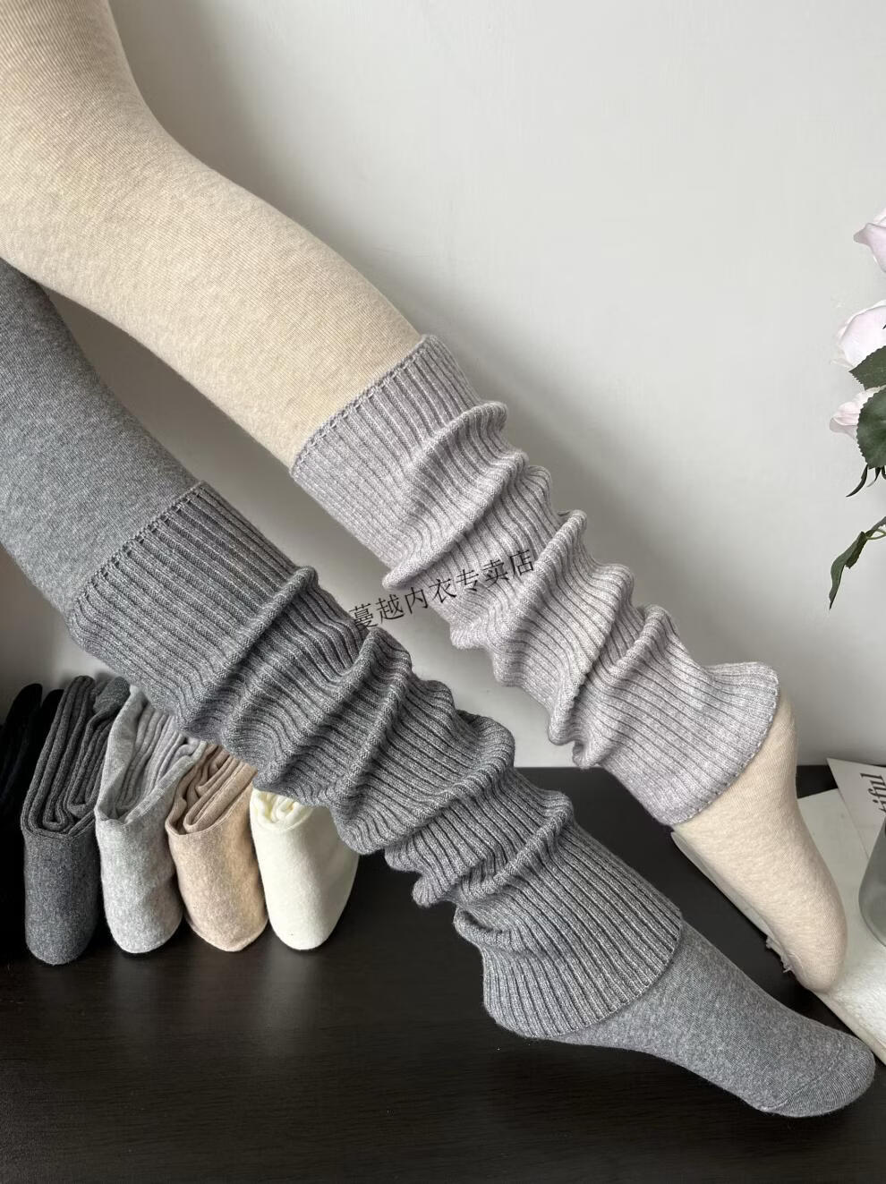 Modal American retro stacked smoky gray cashmere socks for women in autumn and winter, fashionable, cool and versatile brown knitted leg covers, smoky gray (40cm)