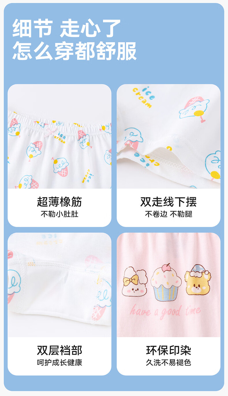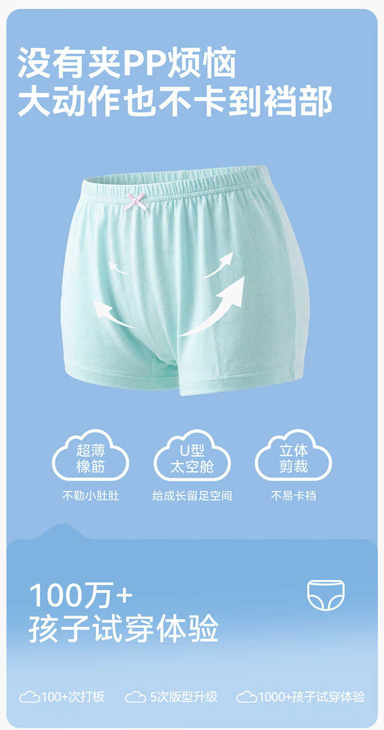 Dudujia 100% cotton children's underwear girls cotton boxer briefs 7A antibacterial baby shorts pink all over print 90