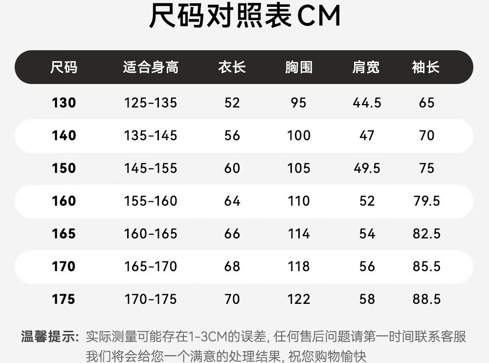 China (cm) 160-165/84-86 165-170 / 88-90 167-172 / 92-96 168-173 / 98-102 170-176 / 106-110