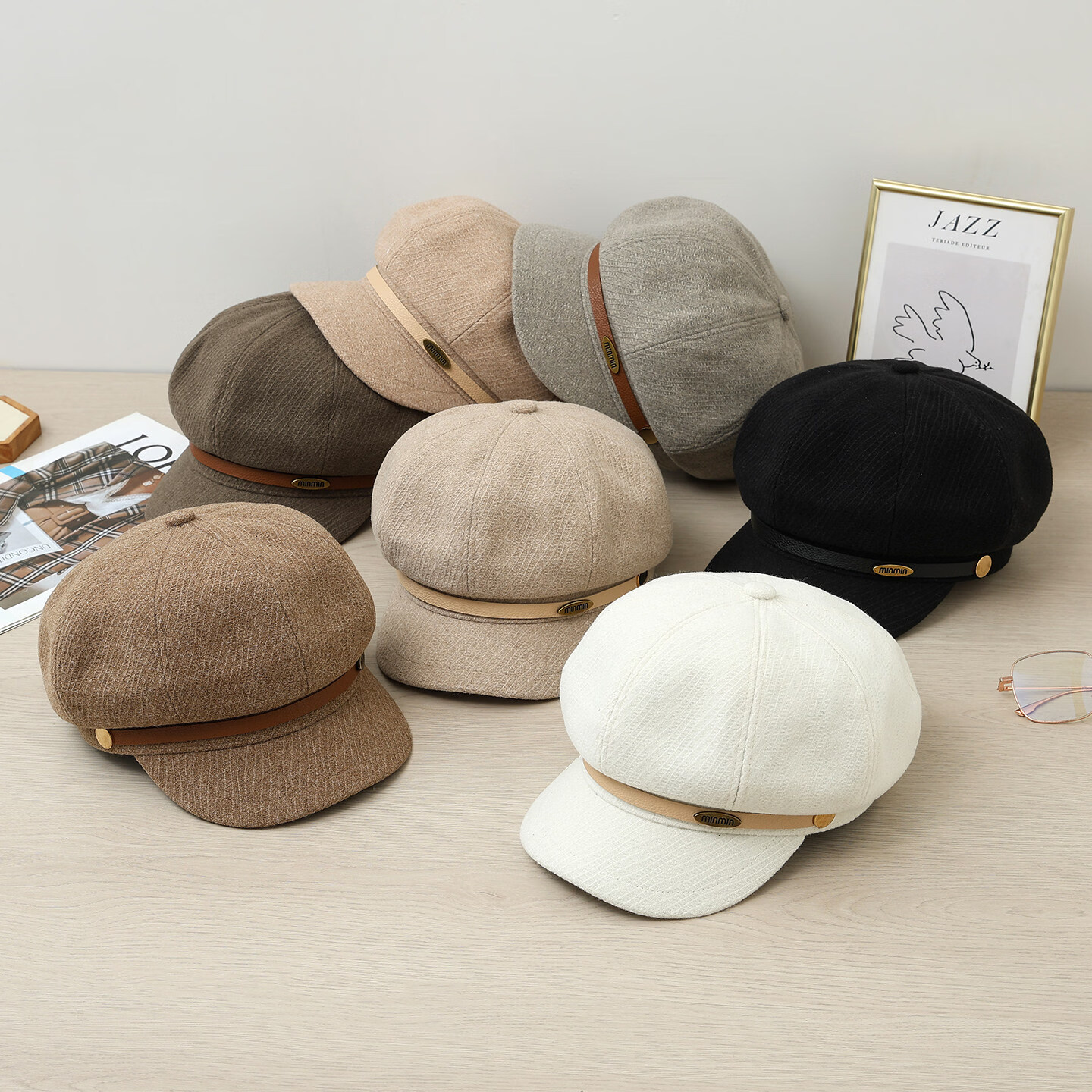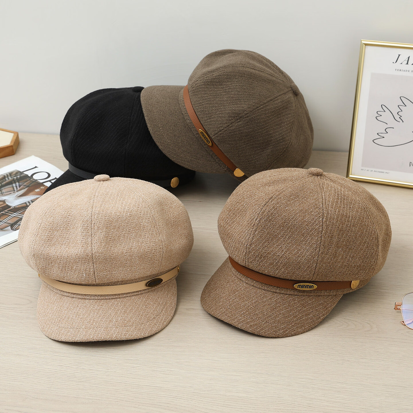 CTRLEND British retro octagonal beret women's autumn and winter face-showing small versatile duck hat winter warm painter newsboy hat black