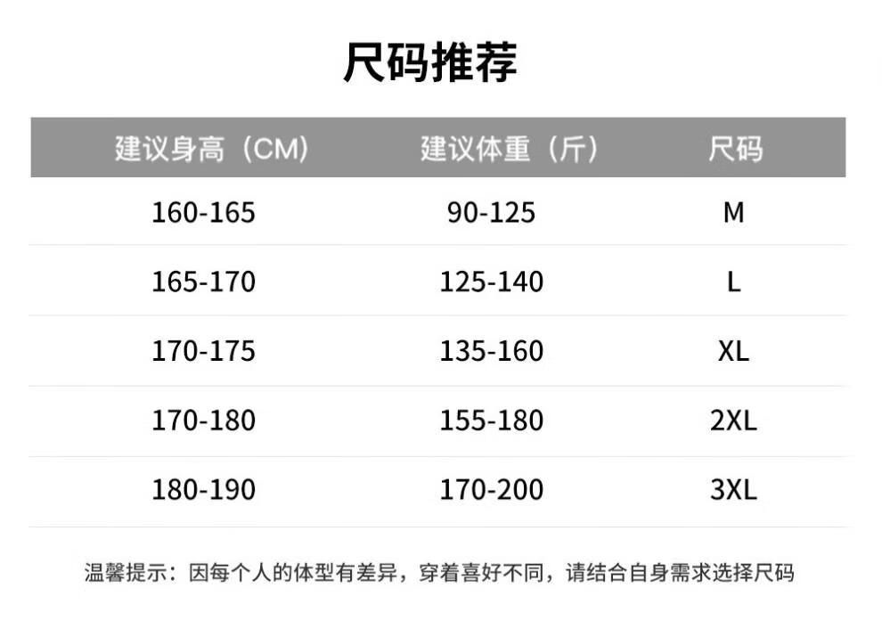 China (cm) 165 / 88-90 170 / 96-98 175 / 108-110 180 / 118-122 185 / 126-130