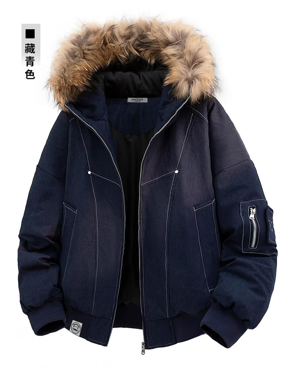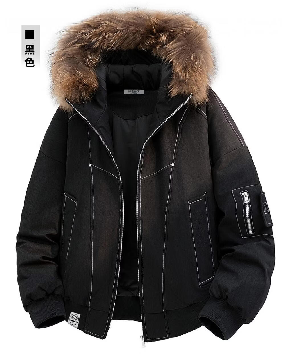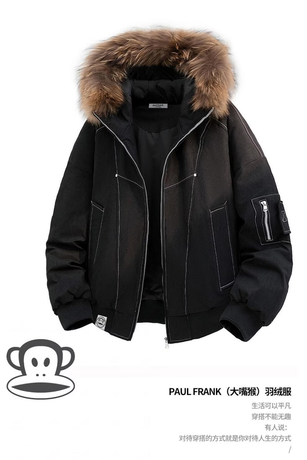 大嘴猴(paul frank)日系复古休闲毛领连帽羽绒服男士2025年冬季新款宽松保暖舒适上衣 黑色 【90%白鸭绒】 2XL 【建议155-180斤】