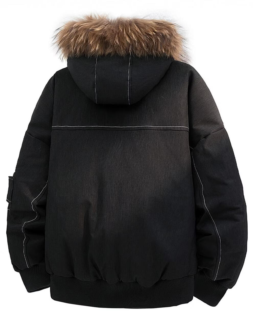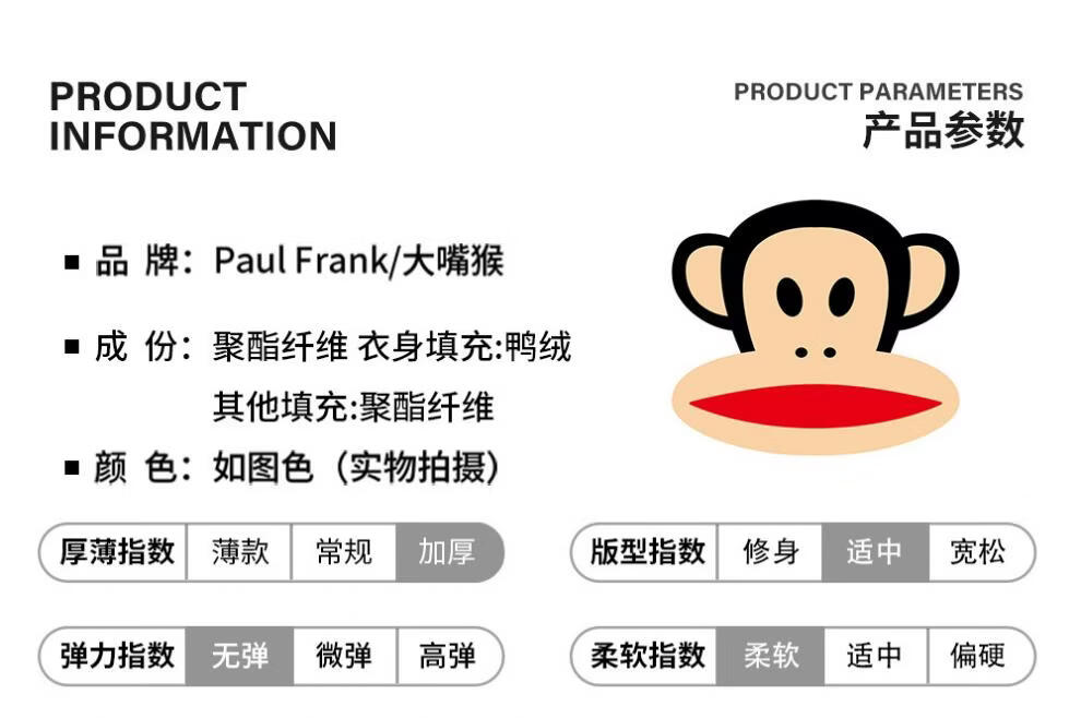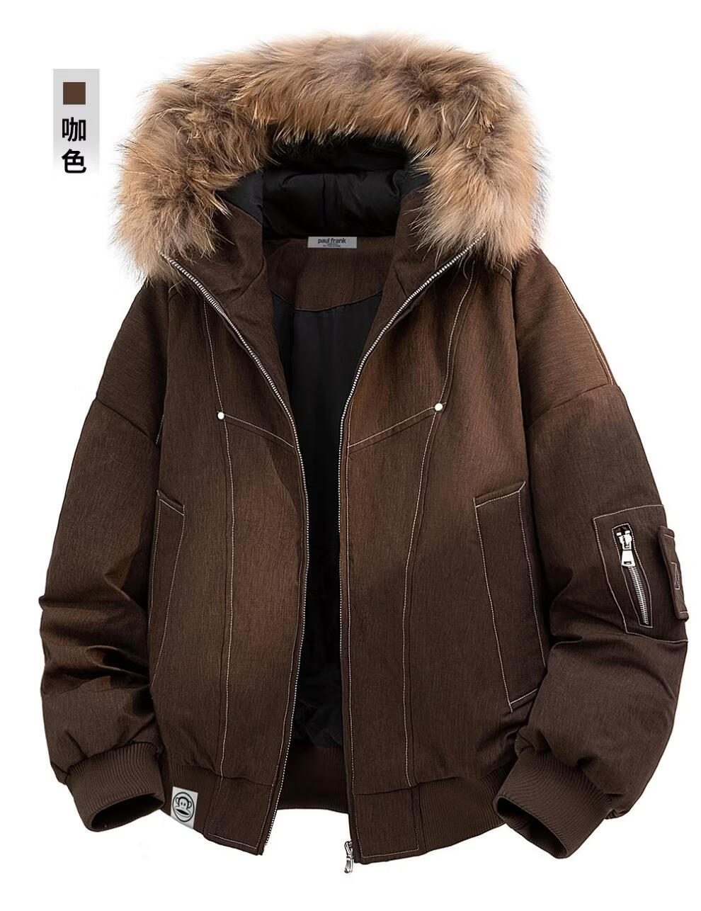 大嘴猴(paul frank)日系复古休闲毛领连帽羽绒服男士2025年冬季新款宽松保暖舒适上衣 黑色 【90%白鸭绒】 2XL 【建议155-180斤】