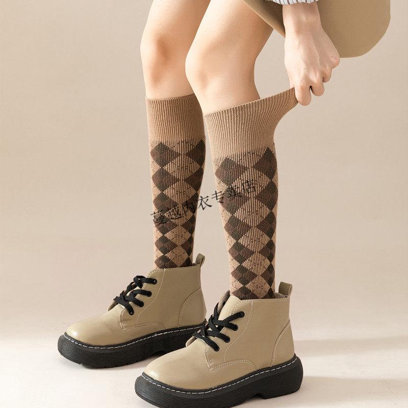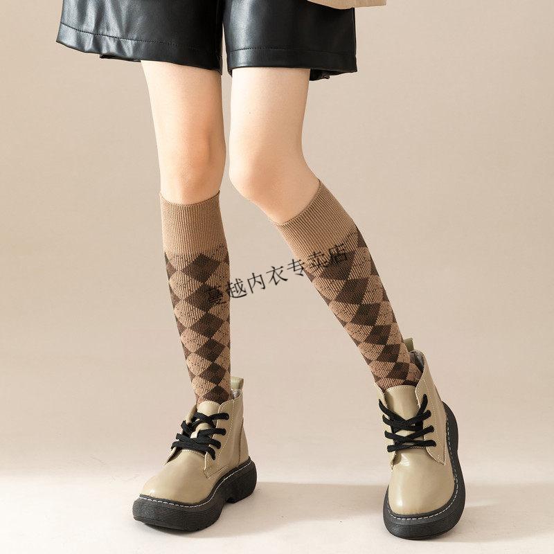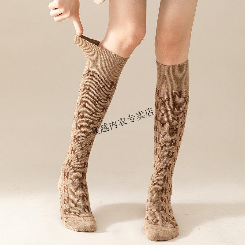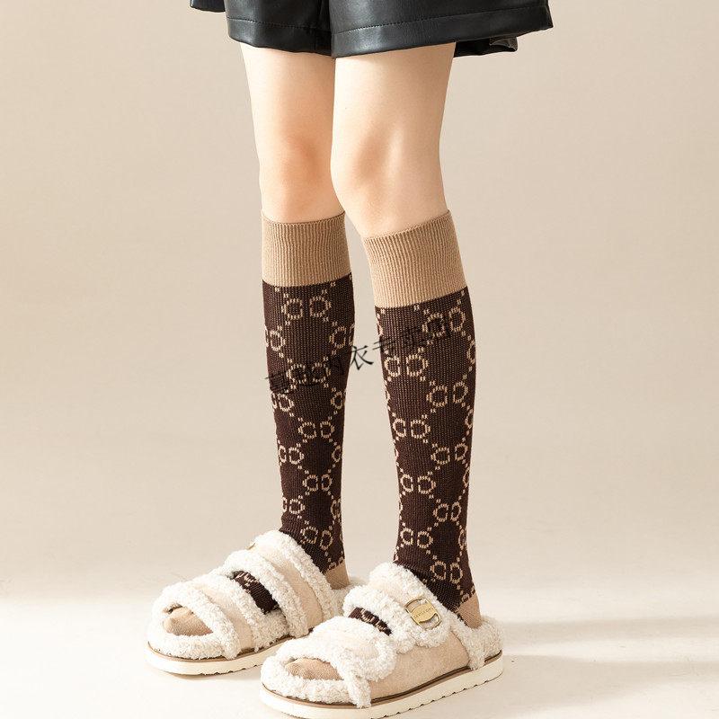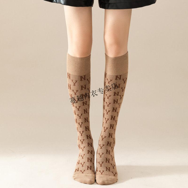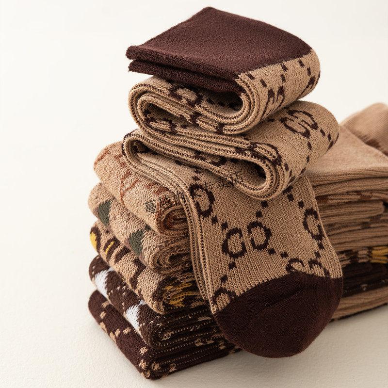 Modal French fashion brand C letter calf socks for women double needle autumn and winter retro long tube Maillard brown long socks cotton 812C letter khaki 2 pairs one size Maillard color calf socks 36-40 yards