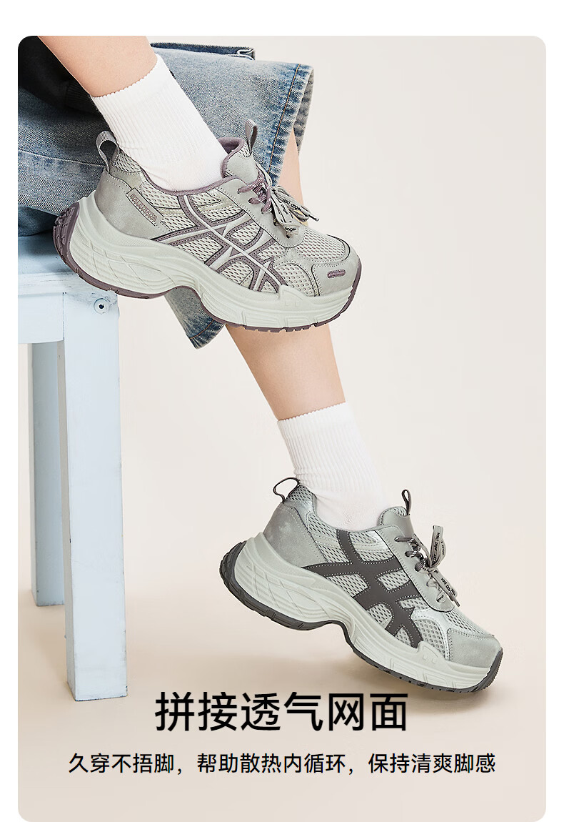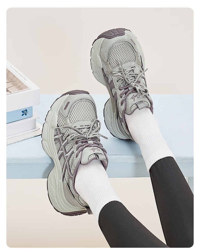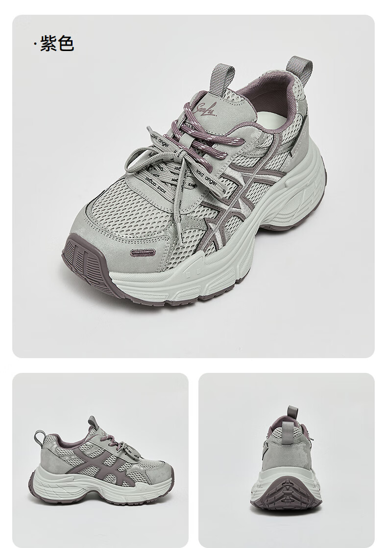 SANFU women's sports shoes spring fashionable sports texture stitching mesh round toe dad shoes women's shoes 852274 purple 35
