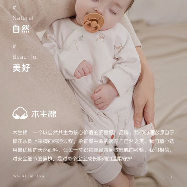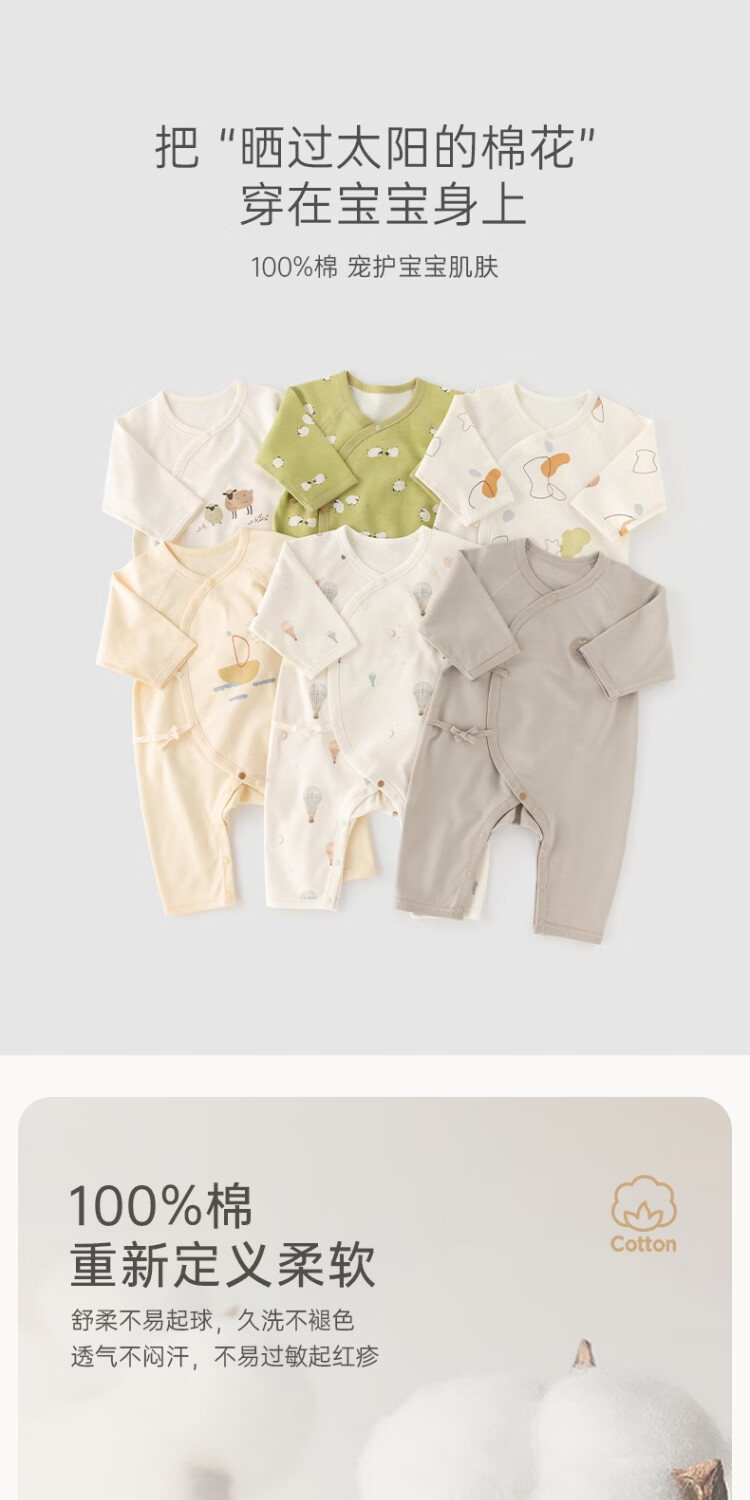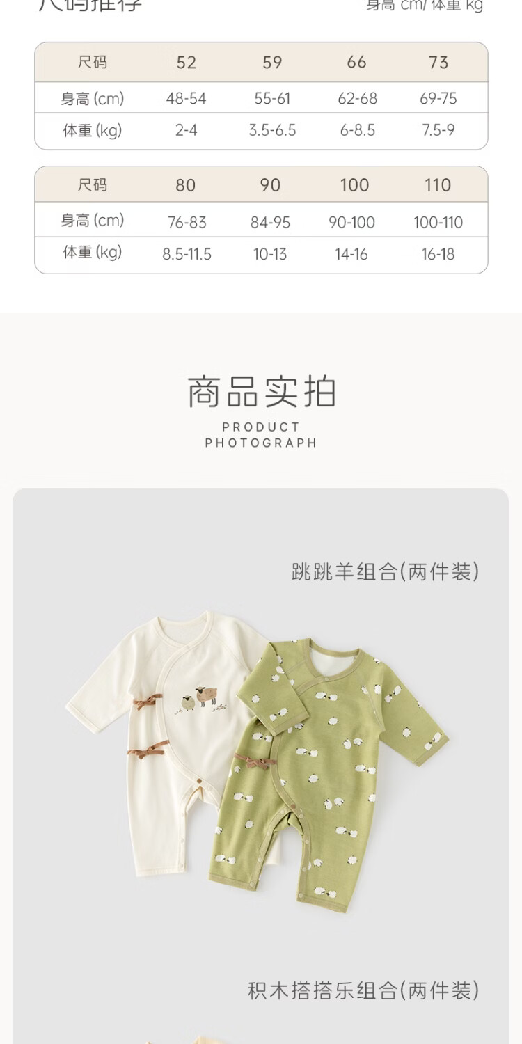 Wooden cotton two-piece newborn long-sleeved jumpsuit spring and autumn infant pure cotton boneless khaki baby monk suit building block combination 52cm