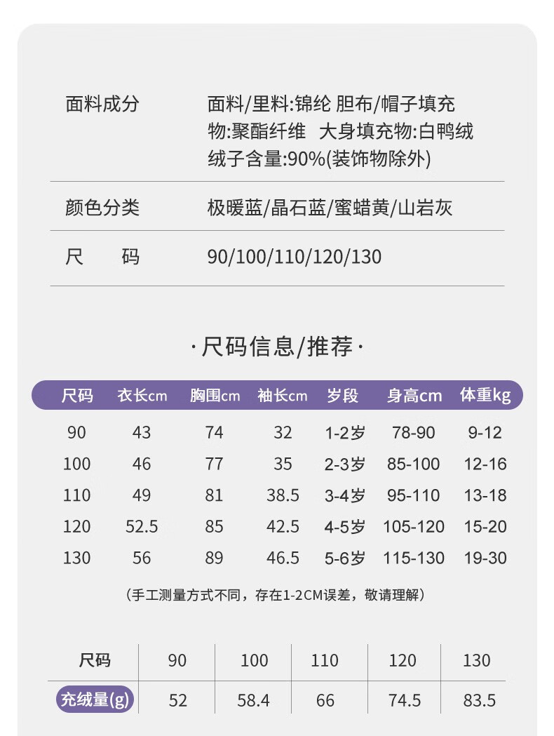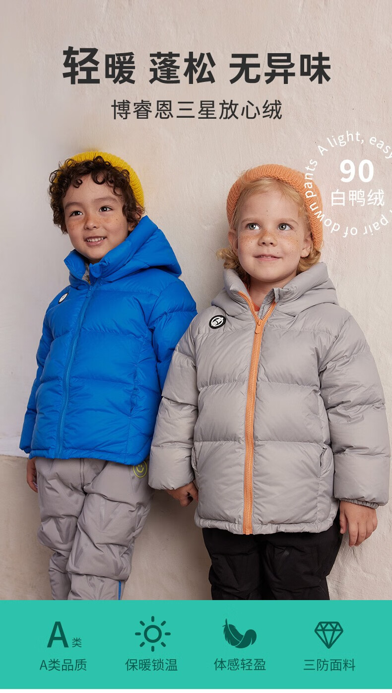 Borien three-proof safety velvet thickened down jacket for men and women, winter clothing for infants and children, warm and thick jacket, very warm blue 90