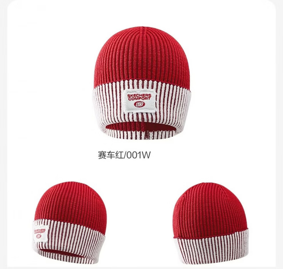 Skechers Skechers children's knitted hat red contrasting color anti-static comfortable protective warm hat for boys and girls L126K037 racing red/001W one size