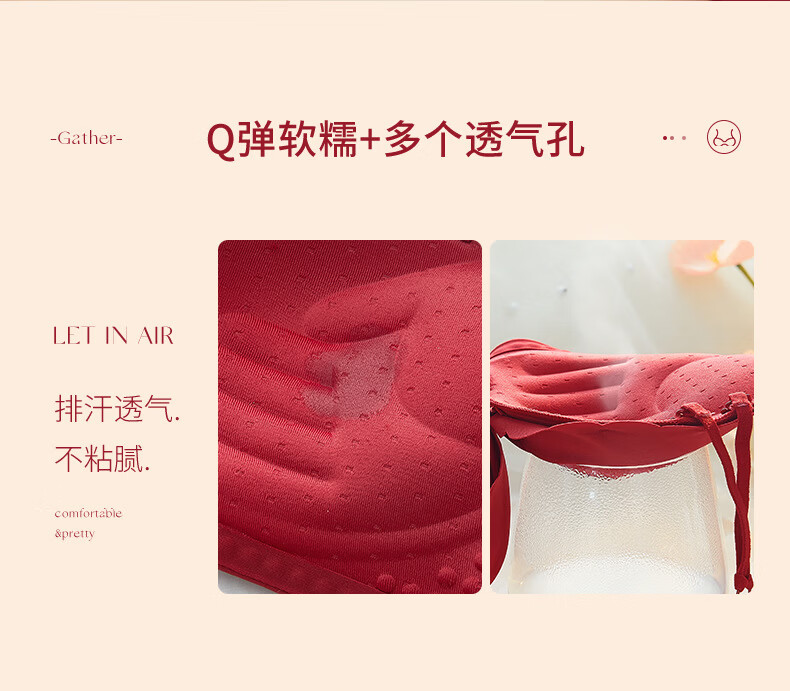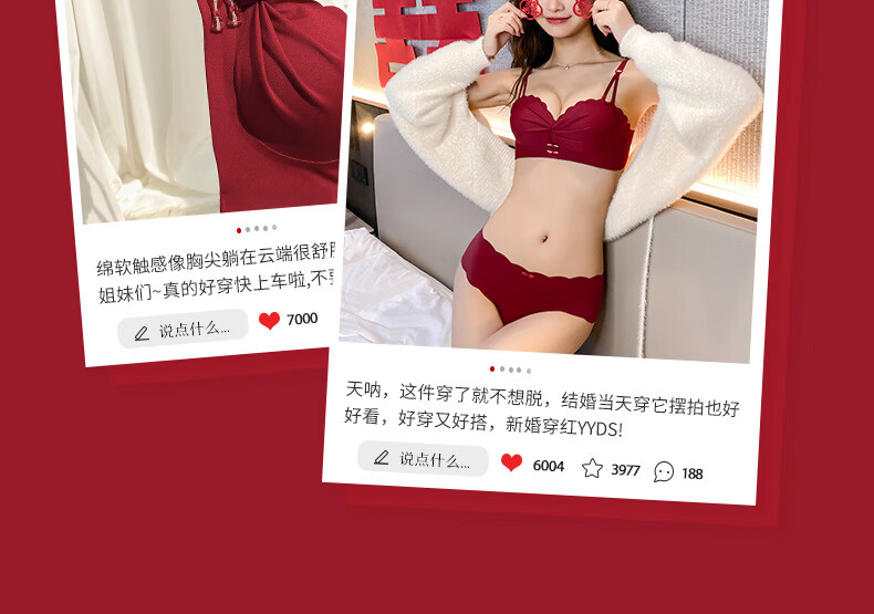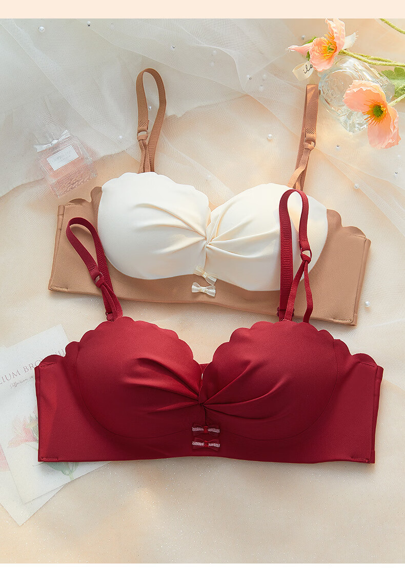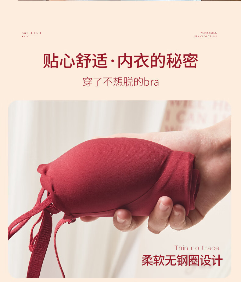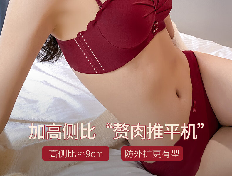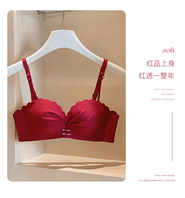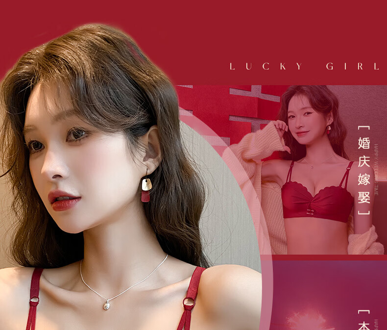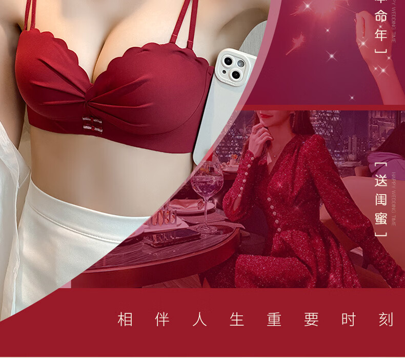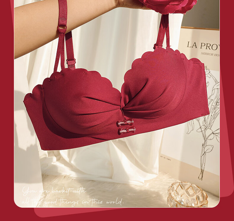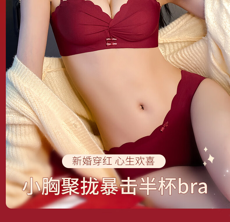Modal red underwear wedding bride's zodiac year female small breast push-up no steel ring anti-sagging half cup bra panty set green single/piece bride wedding 2.0cm 80A 36B