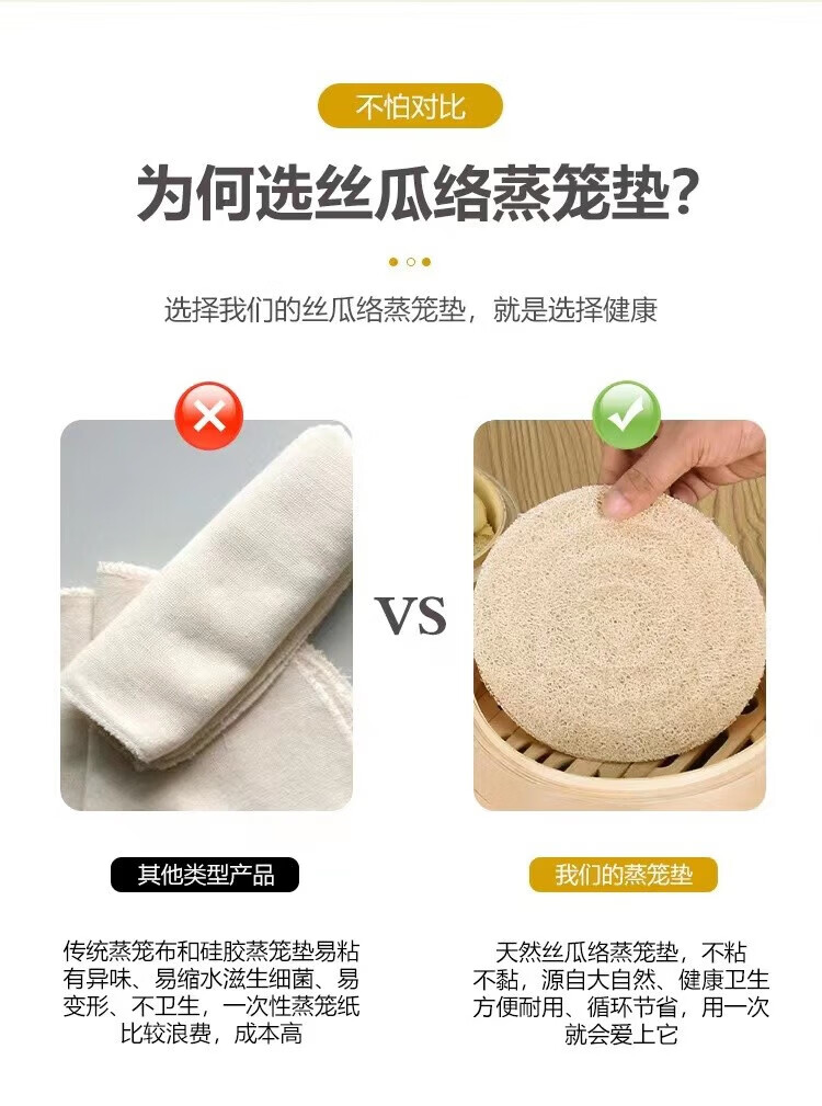 Shantou Lincun's new loofah steamer mat for steamed buns, non-stick, easy to clean and durable, round steamer cloth with loofah pulp for steamed buns, 16 cm diameter, 2 pack