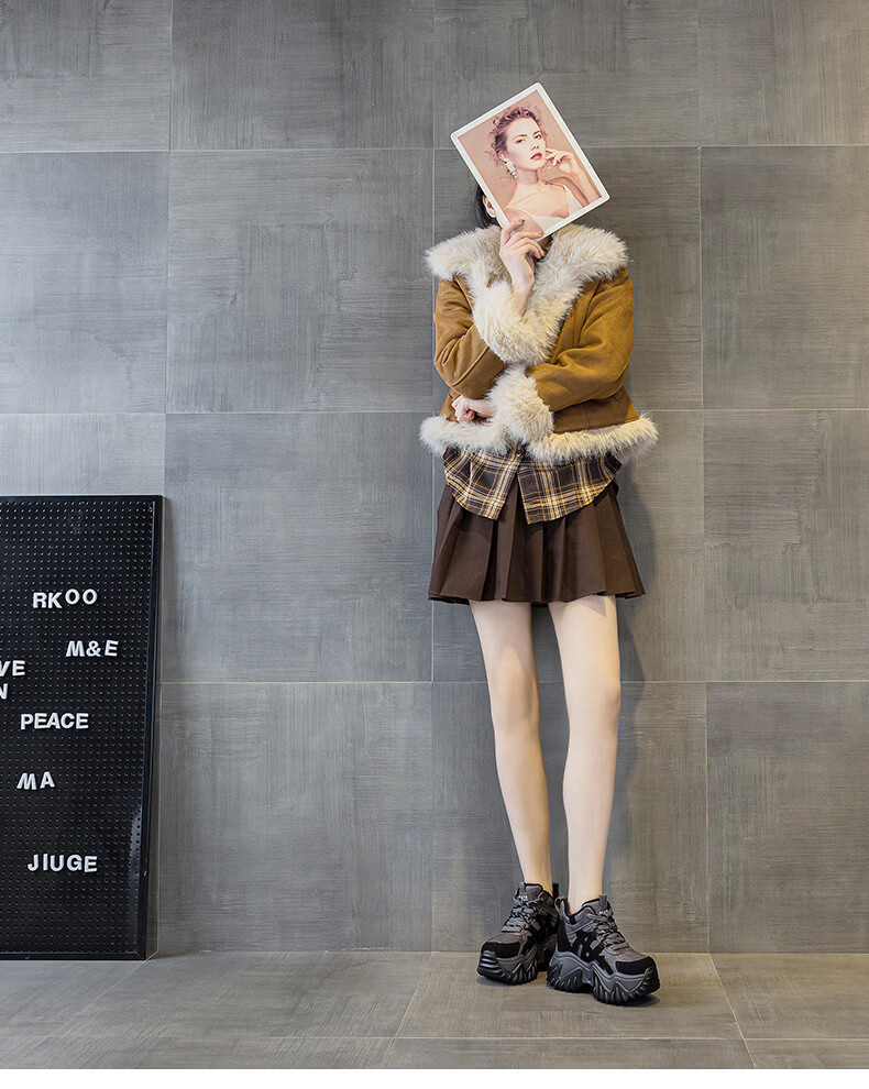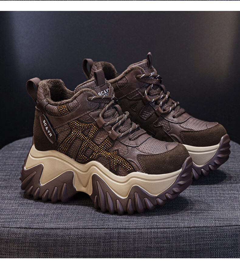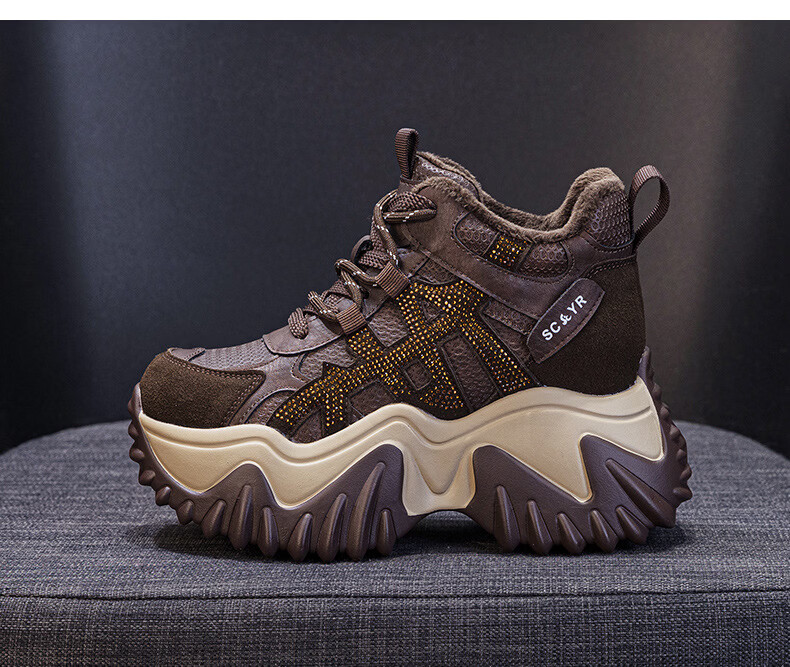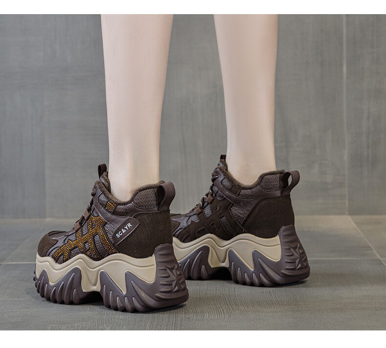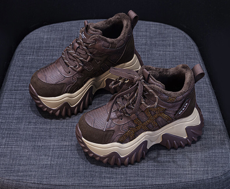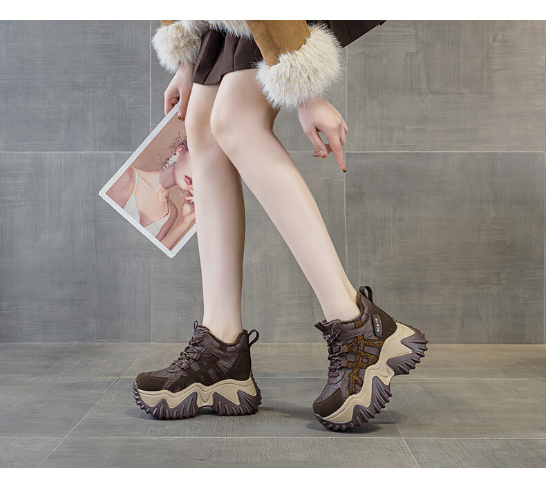 OLJ luxury high-end brand women's shoes dad shoes 2025 winter new casual and versatile velvet warm and height-increasing sneakers velvet brown 34