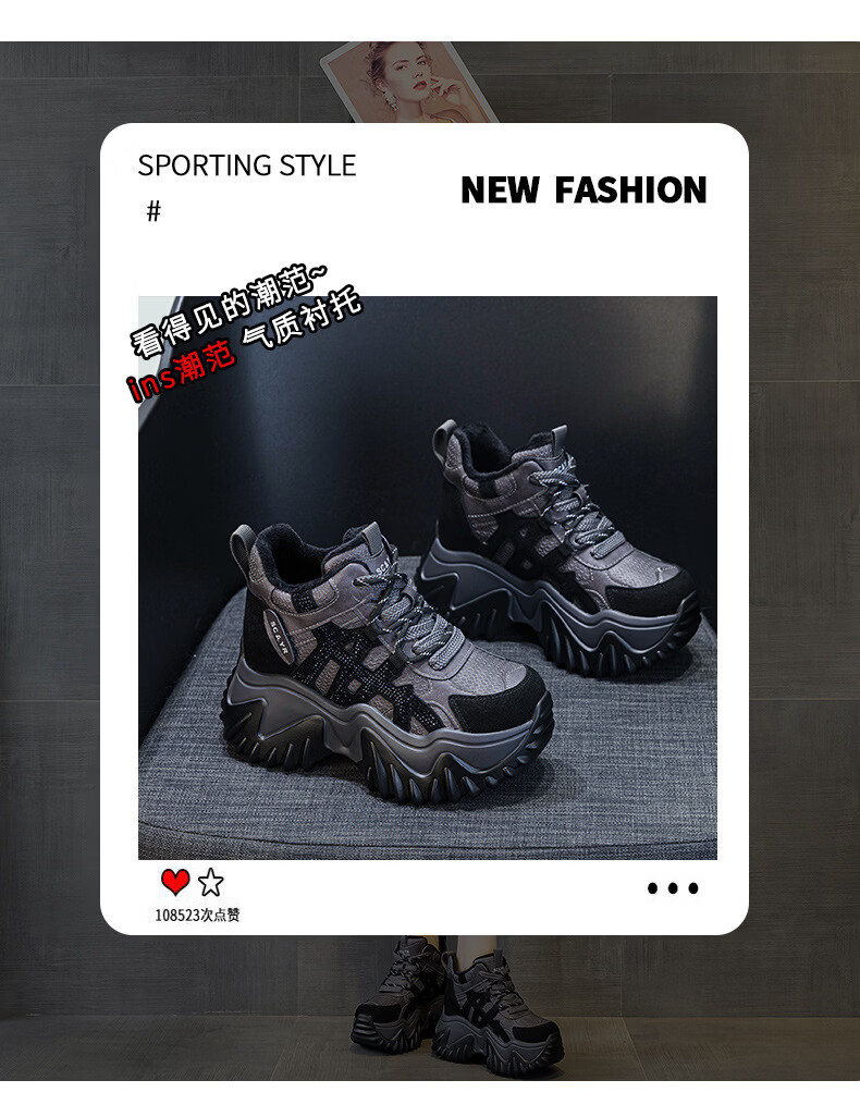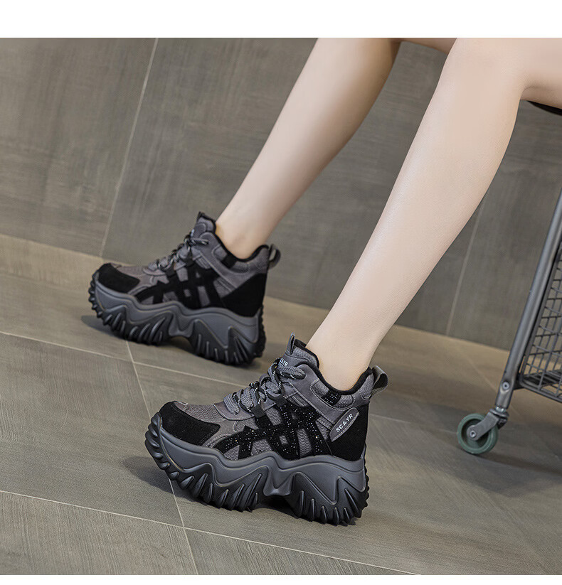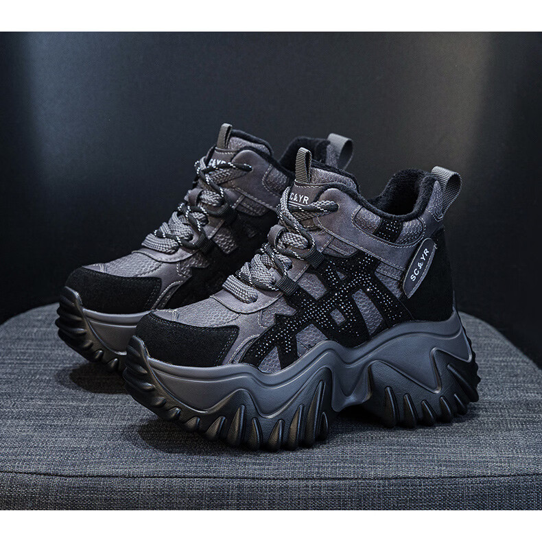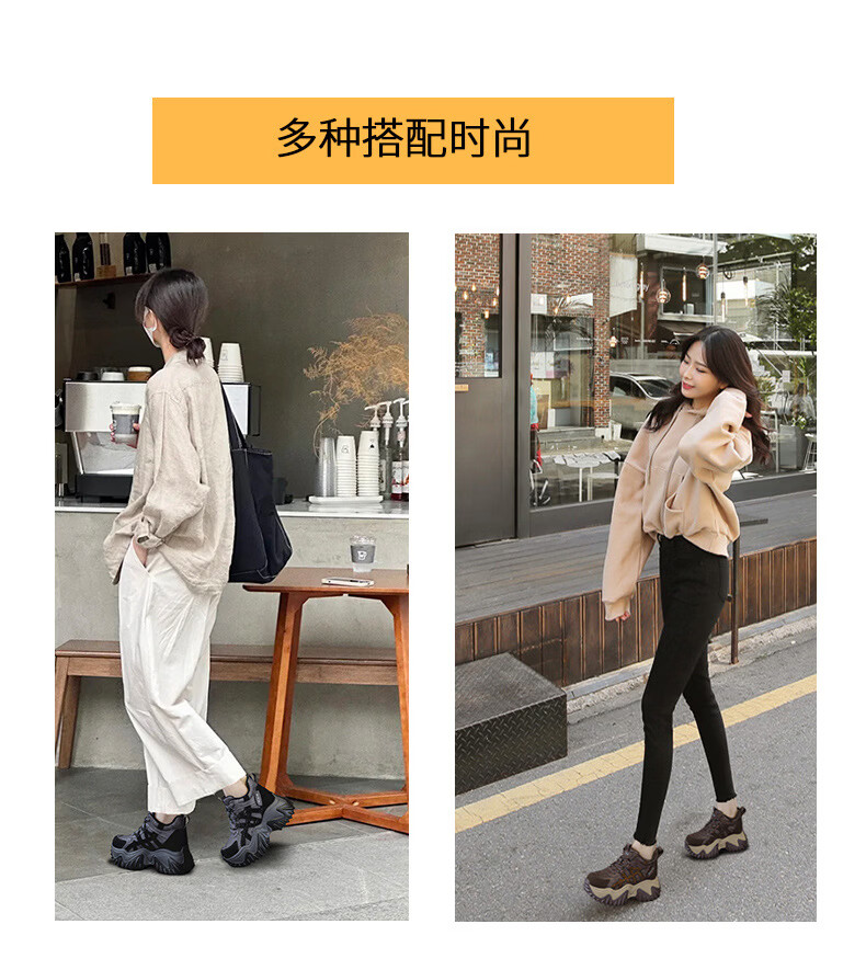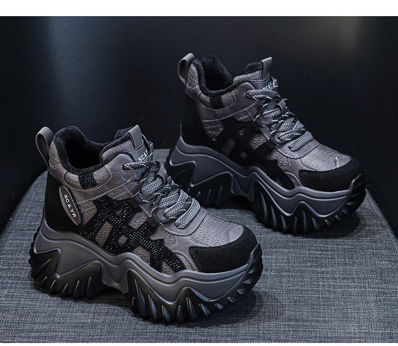 OLJ luxury high-end brand women's shoes dad shoes 2025 winter new casual and versatile velvet warm and height-increasing sneakers velvet brown 34