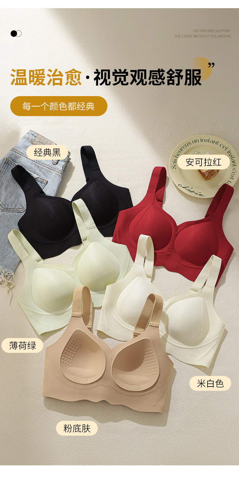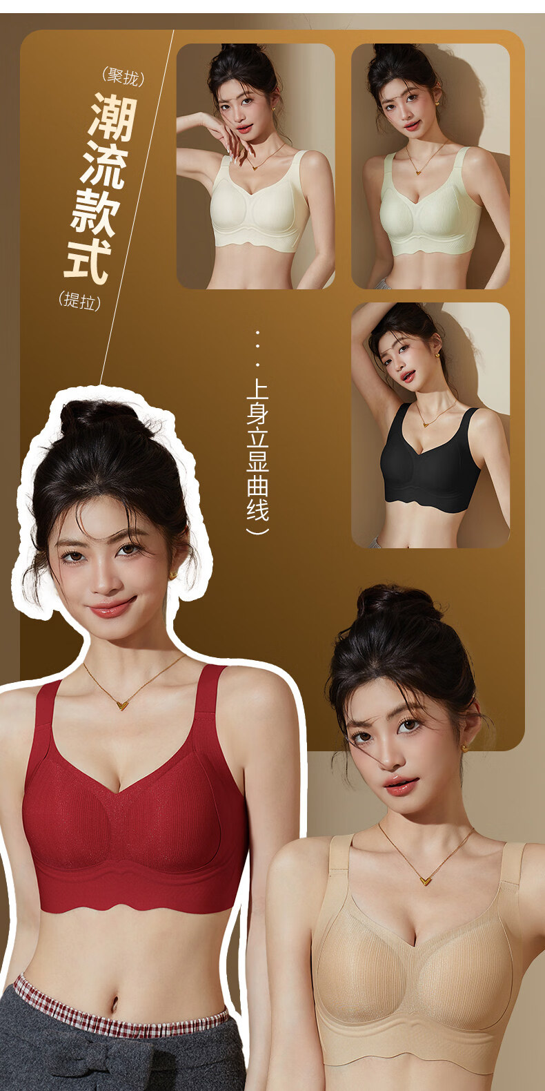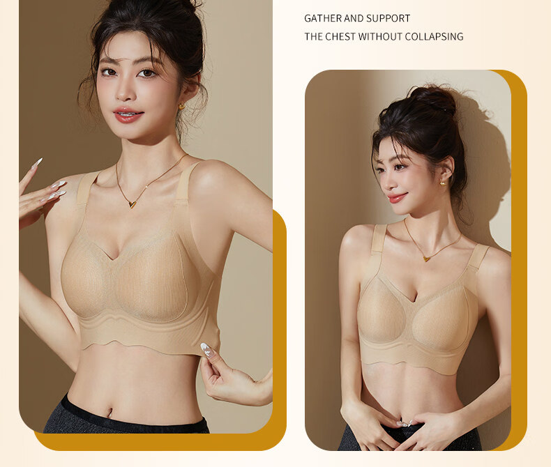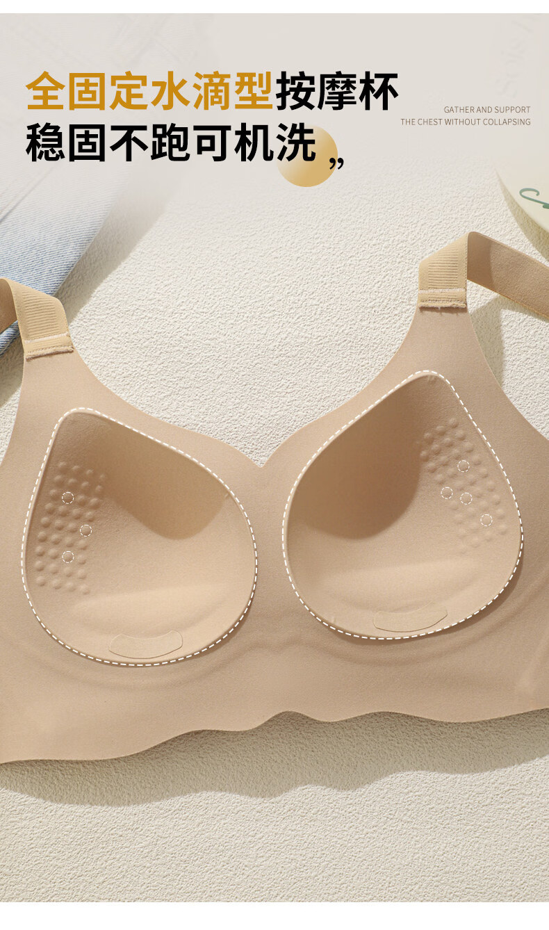 Hengyuanxiang Jelly Seamless Underwear Women's Small Breast Gathering Soft Support Breast Reduction Anti-Sagging Wave Lace Bra Classic Black M