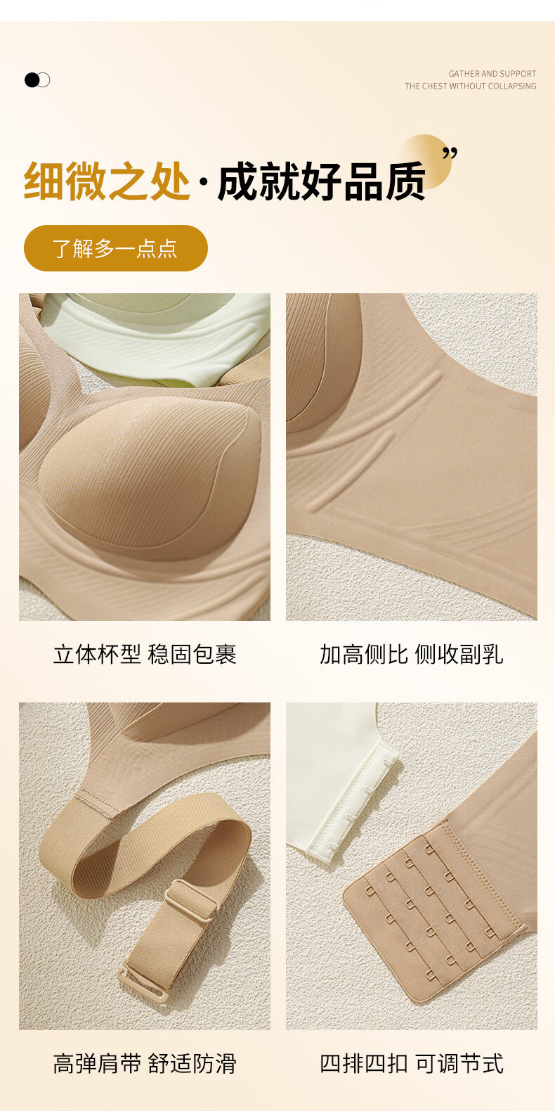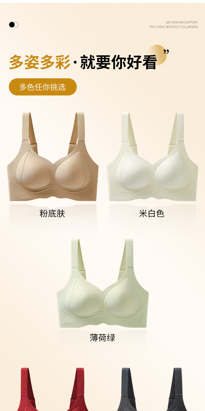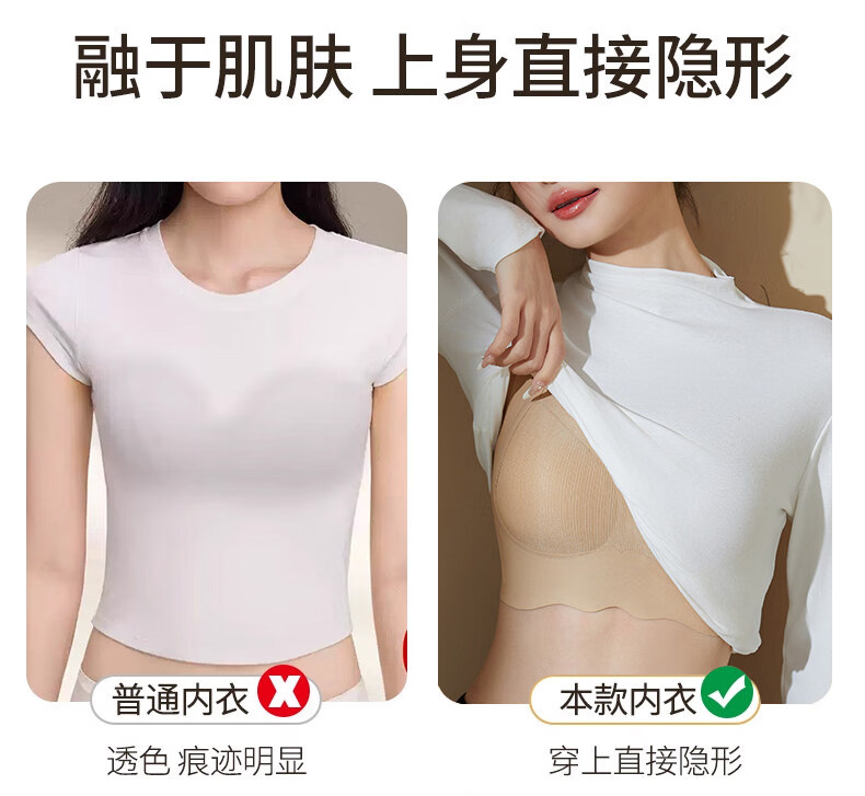 Hengyuanxiang Jelly Seamless Underwear Women's Small Breast Gathering Soft Support Breast Reduction Anti-Sagging Wave Lace Bra Classic Black M