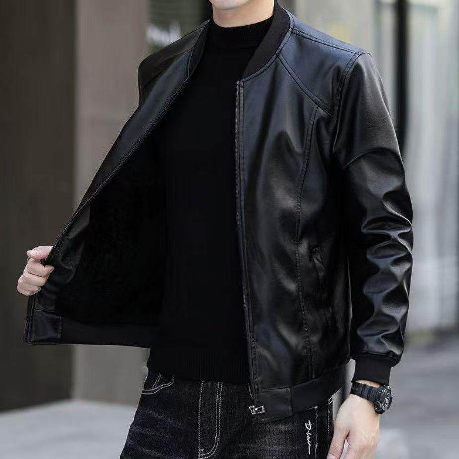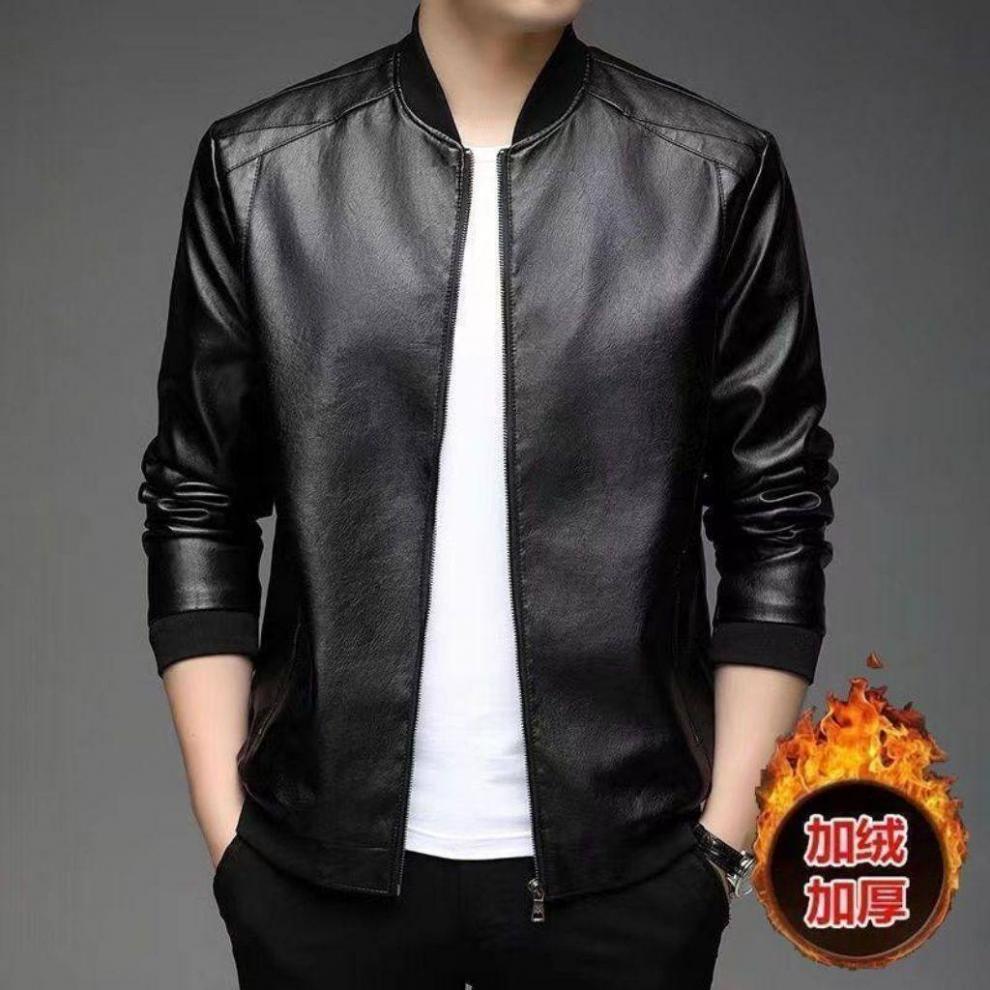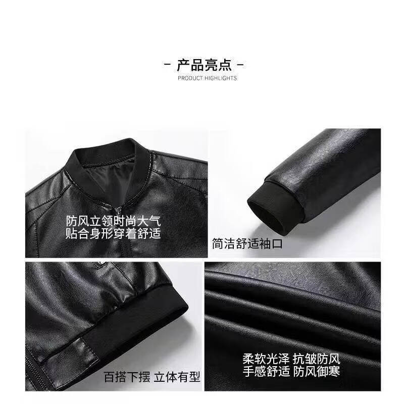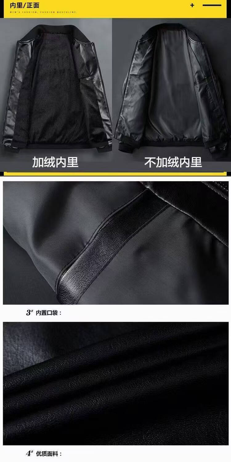 Goldlion Haining Men's Spring and Autumn Jacket Winter Velvet Casual Loose Leather Jacket for Middle-aged and Elderly Black#Soft Leather Baseball Uniform Spring and Autumn Thin M 170_88A_Recommended 95-120Jin Jin is equal to 0.5 kg