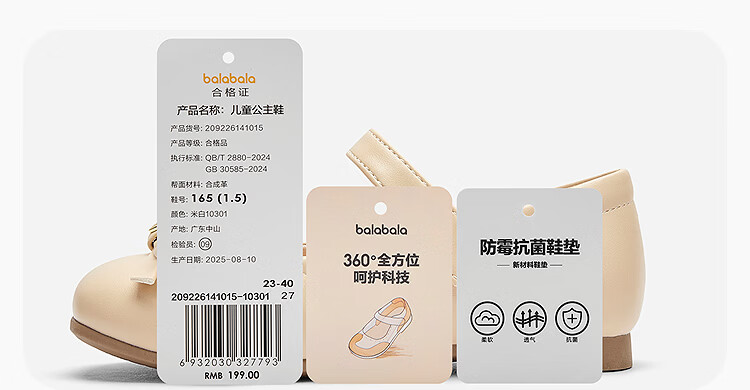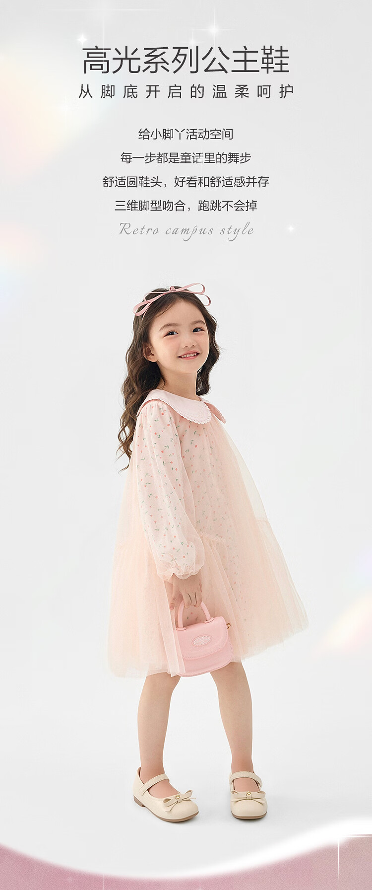 BALABALA balaOne BALABALA children's princess shoes for girls 2025 new spring and autumn sweet princess soft-soled shoes off-white 10301 23 (foot length 13.8-14.2/inner length 15.2)
