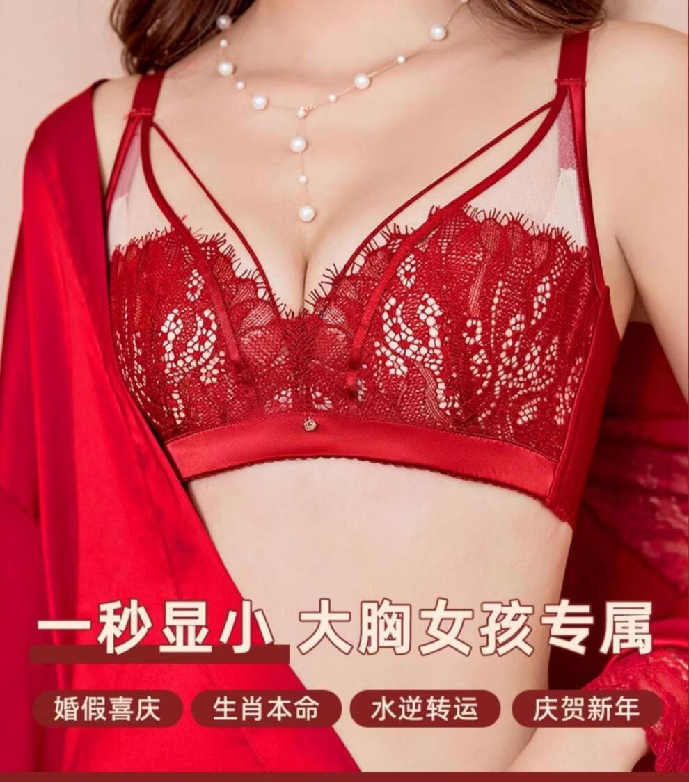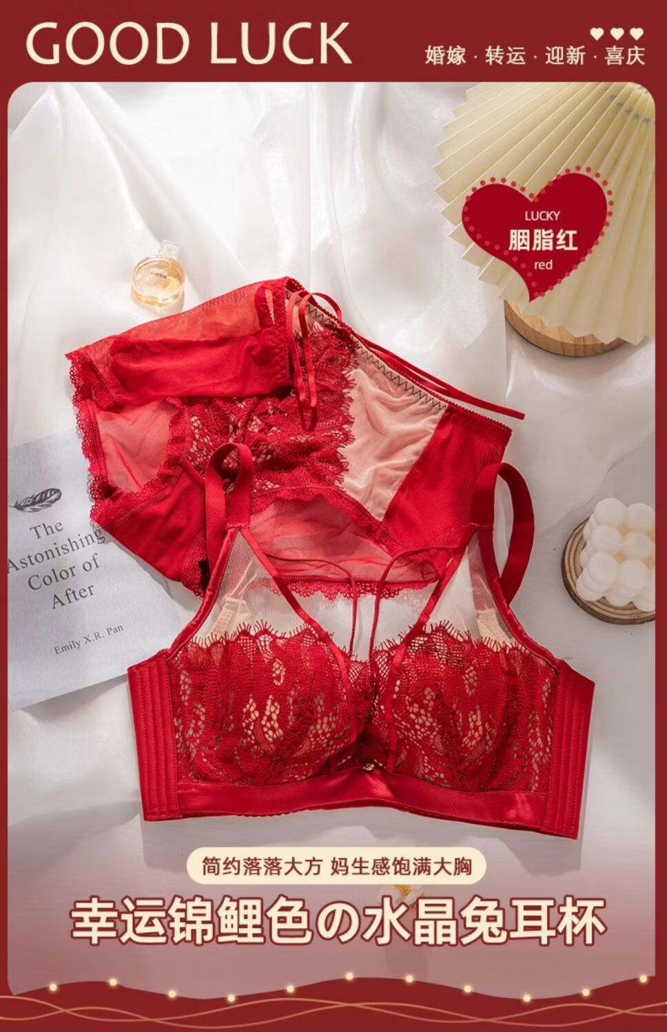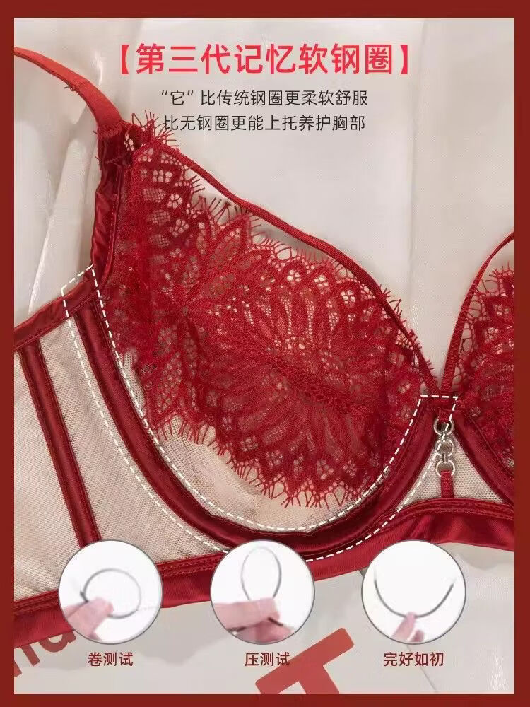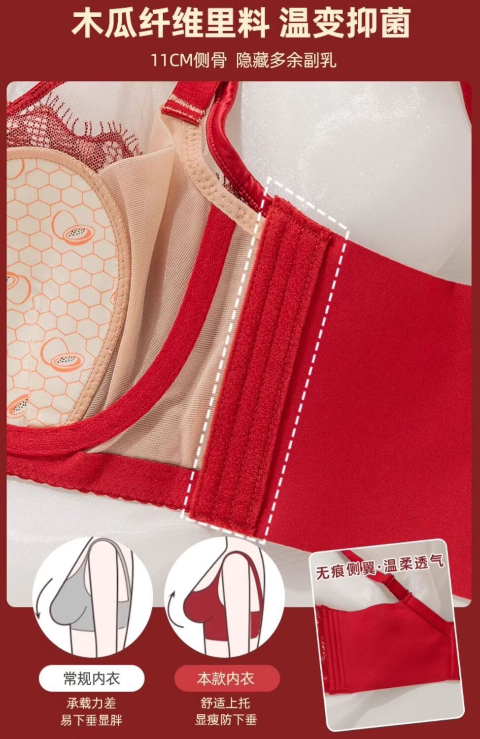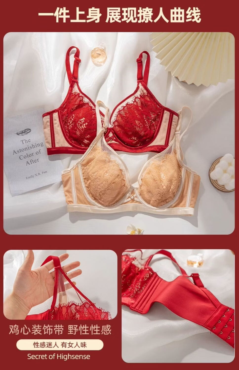 Modal Red Underwear Ladies Wedding Bride Big Breast Show Small Breast Sexy Lace Zodiac Year Bra Set Yellow Single/Piece 85B 38C