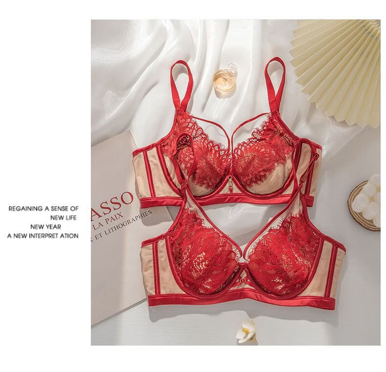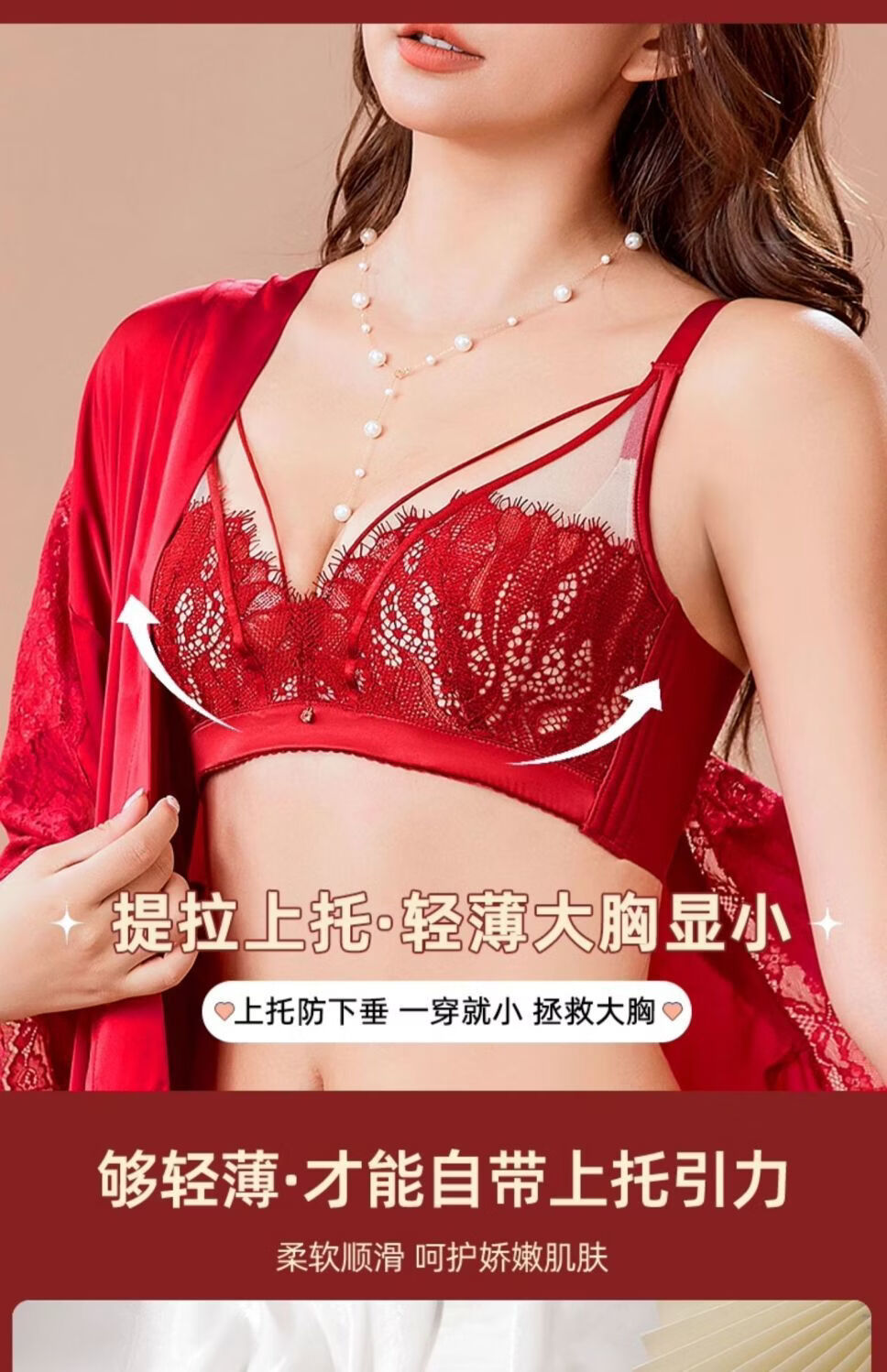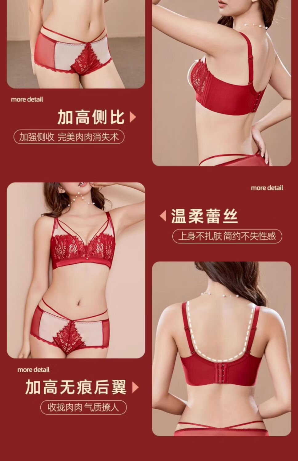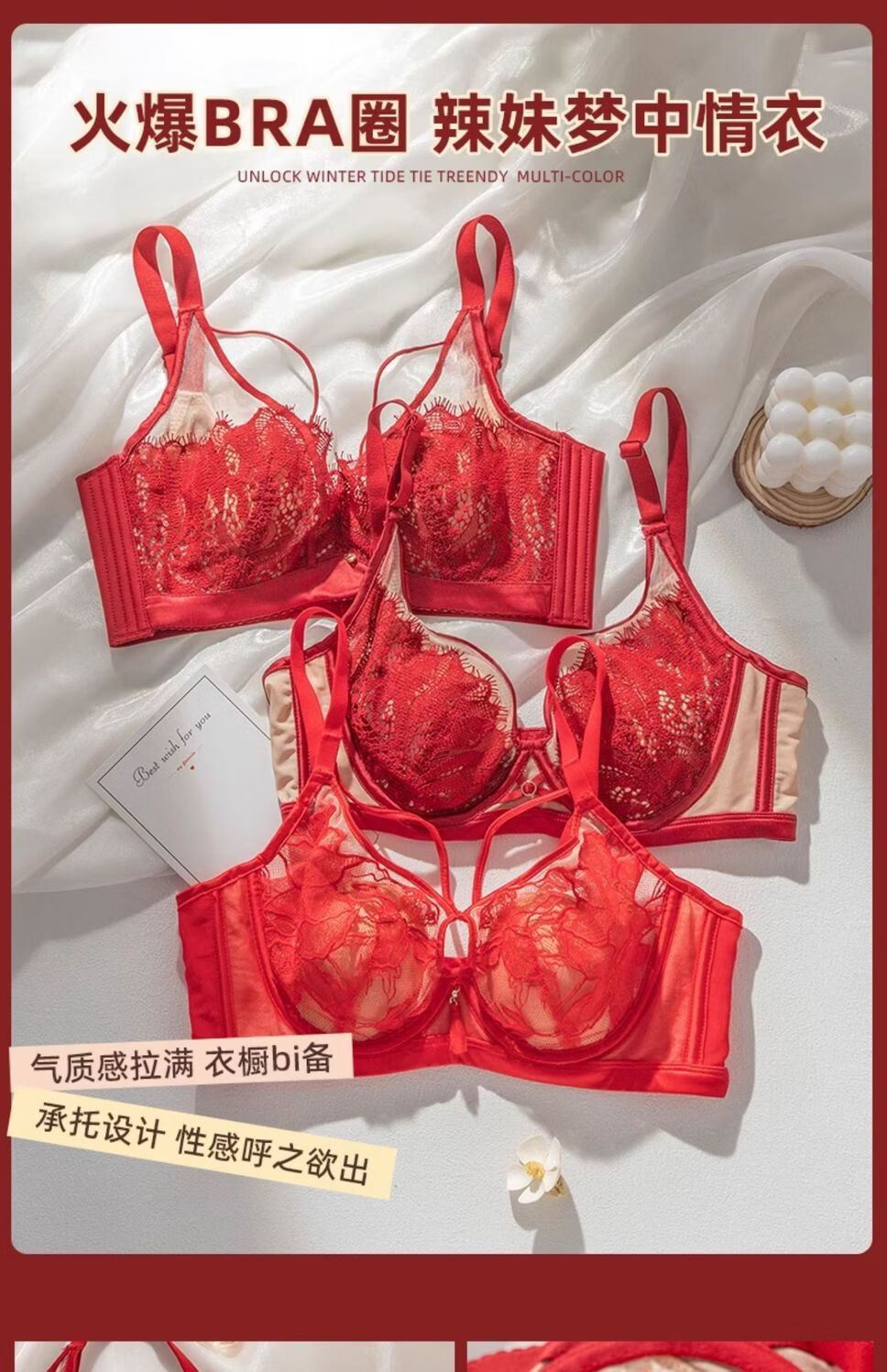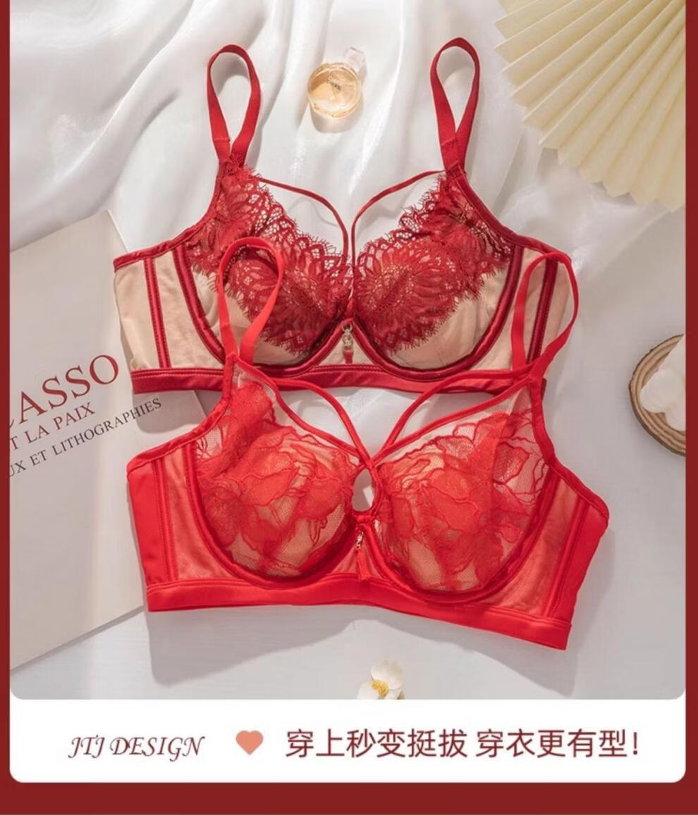 Modal Red Underwear Ladies Wedding Bride Big Breast Show Small Breast Sexy Lace Zodiac Year Bra Set Yellow Single/Piece 85B 38C