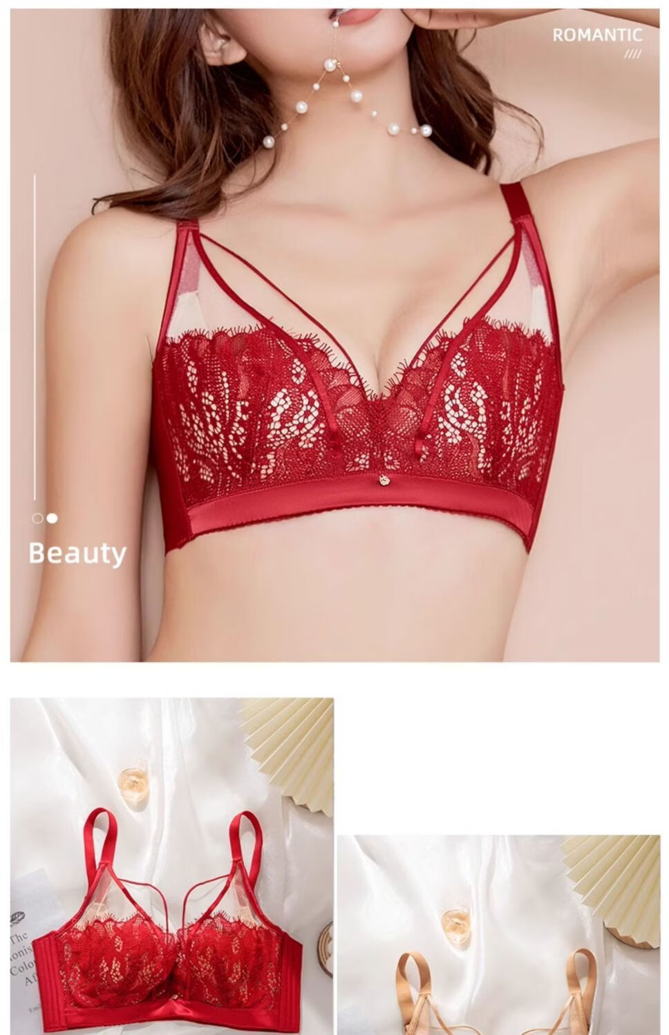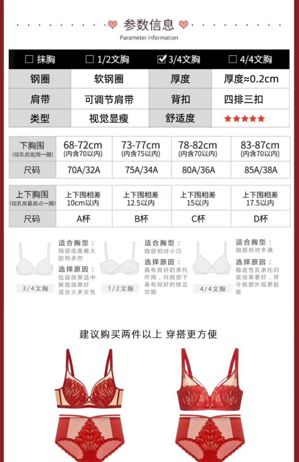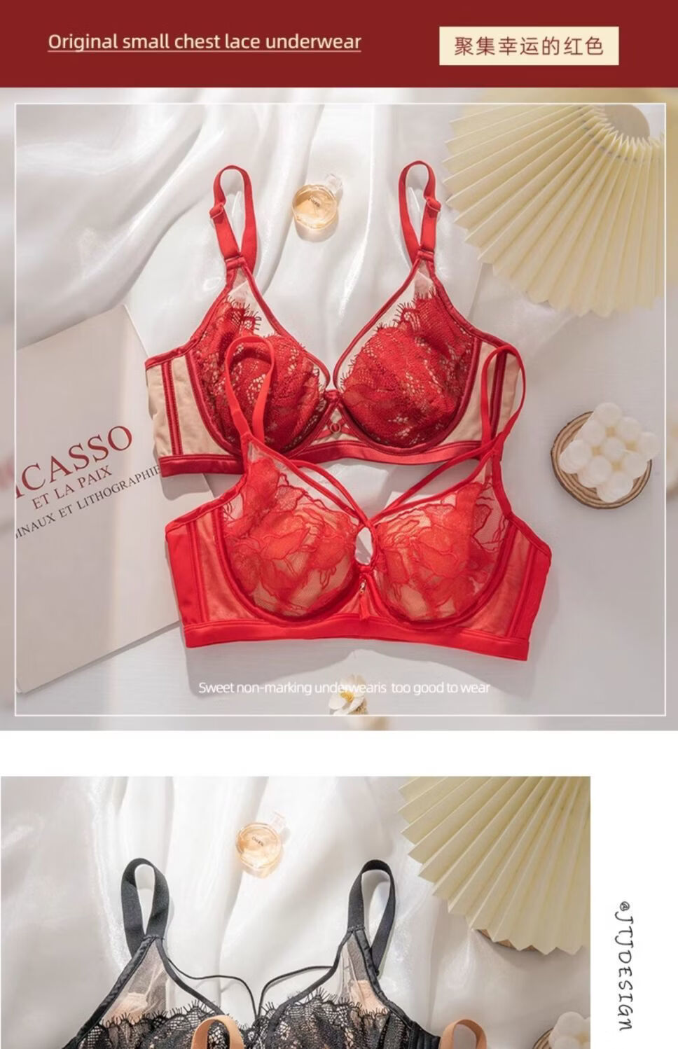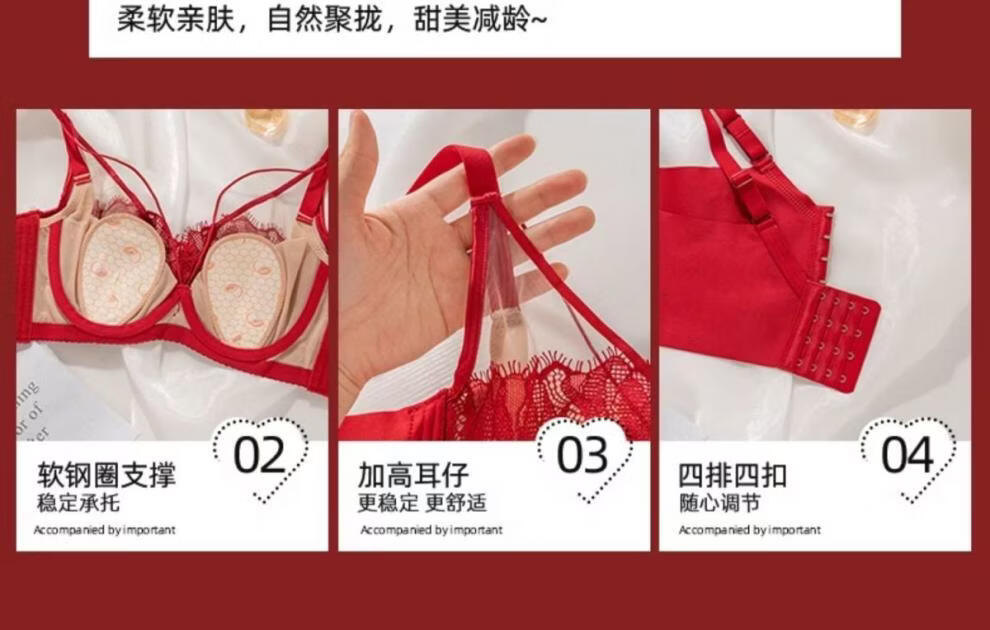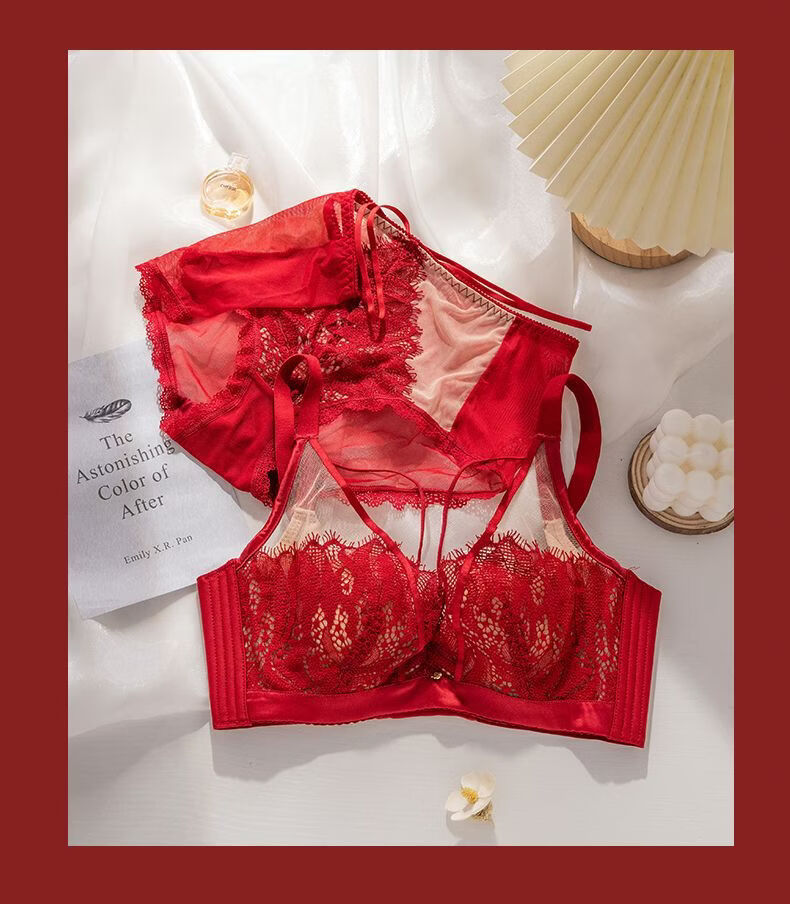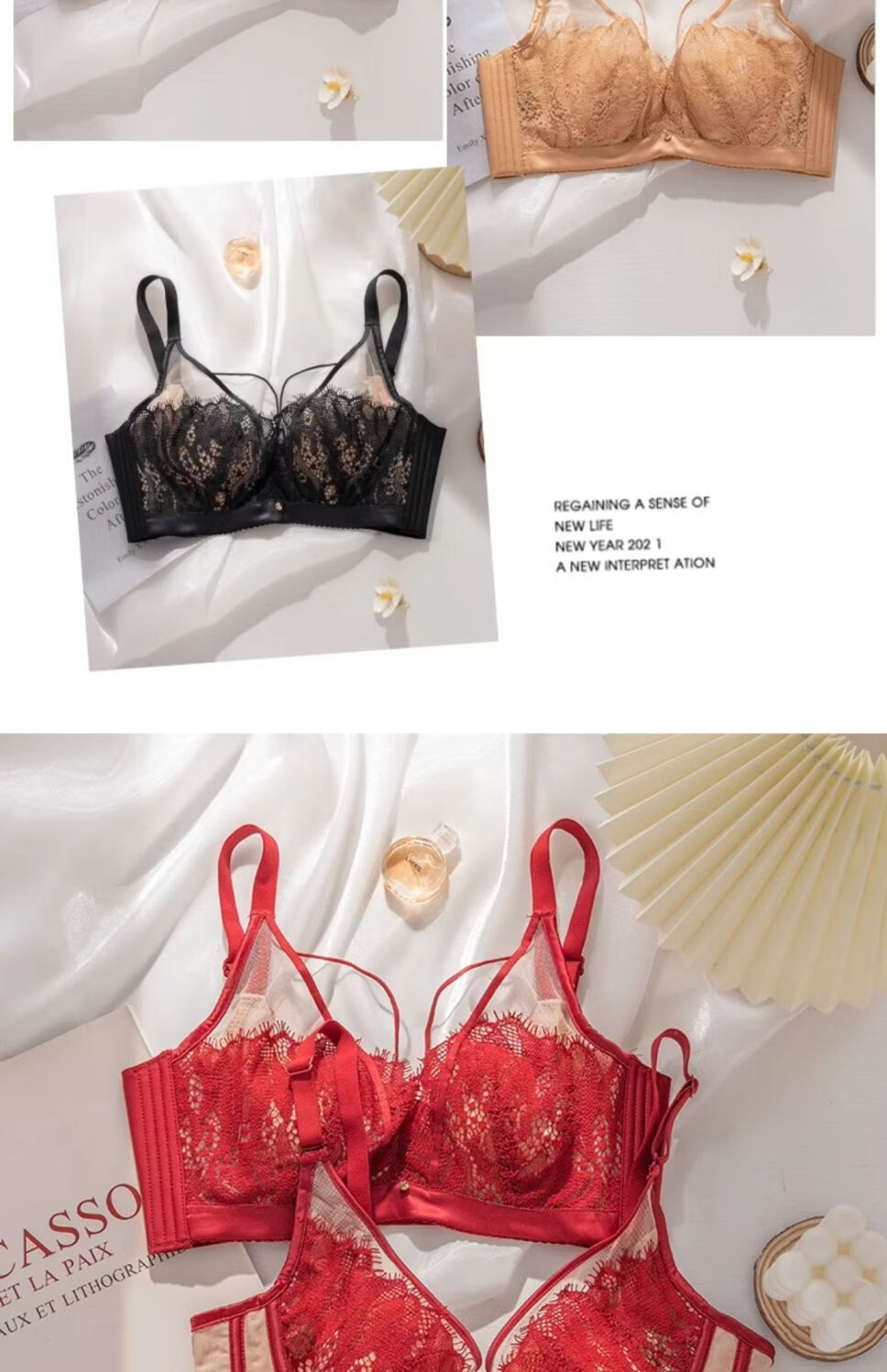 Modal Red Underwear Ladies Wedding Bride Big Breast Show Small Breast Sexy Lace Zodiac Year Bra Set Yellow Single/Piece 85B 38C