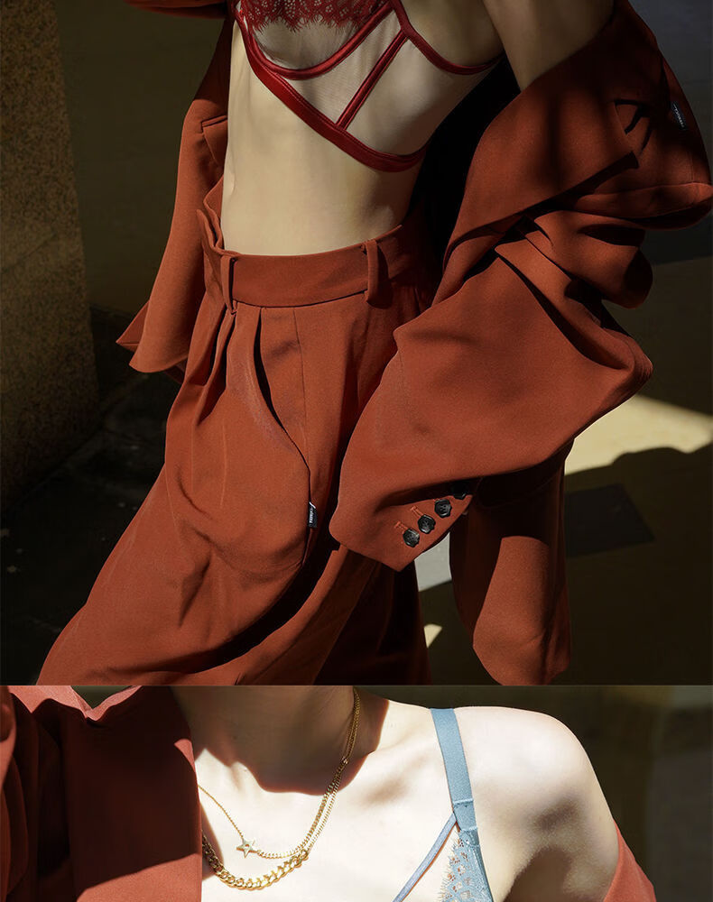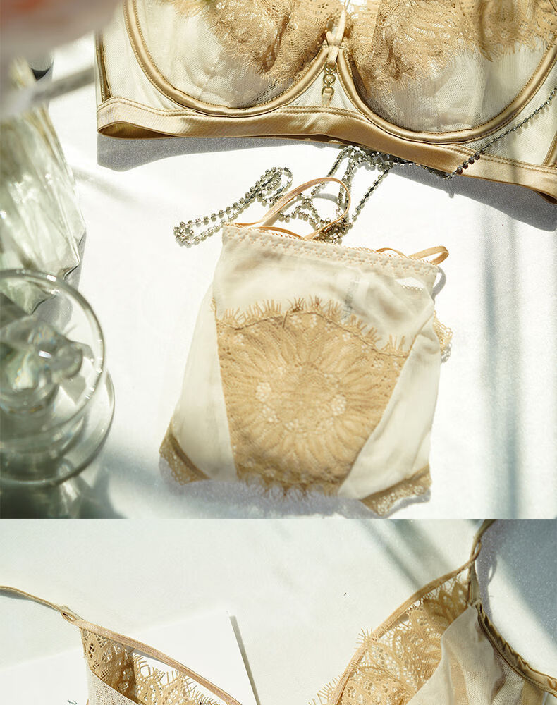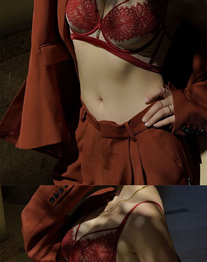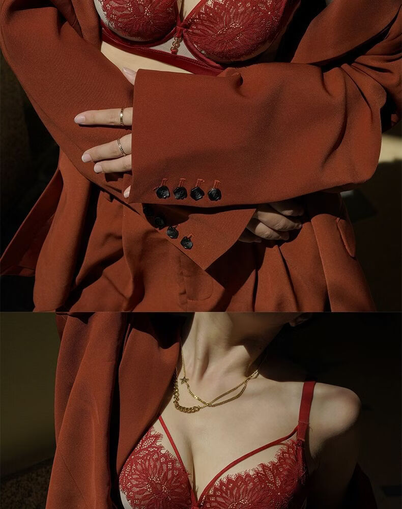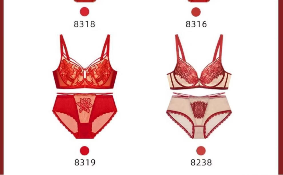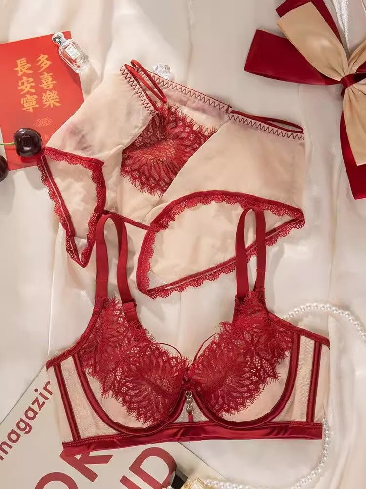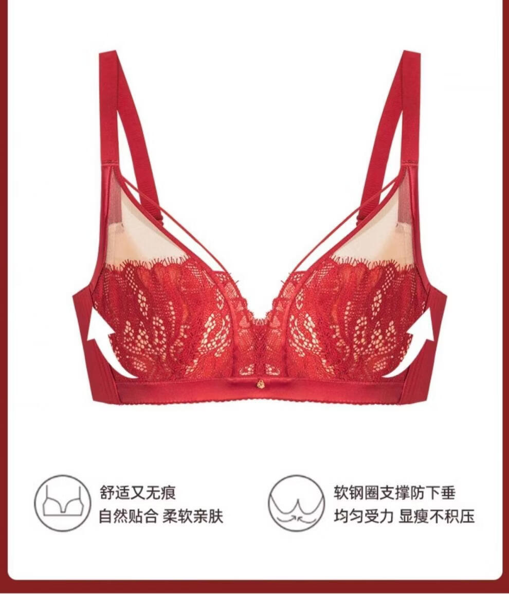 Modal Red Underwear Ladies Wedding Bride Big Breast Show Small Breast Sexy Lace Zodiac Year Bra Set Yellow Single/Piece 85B 38C