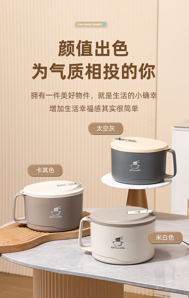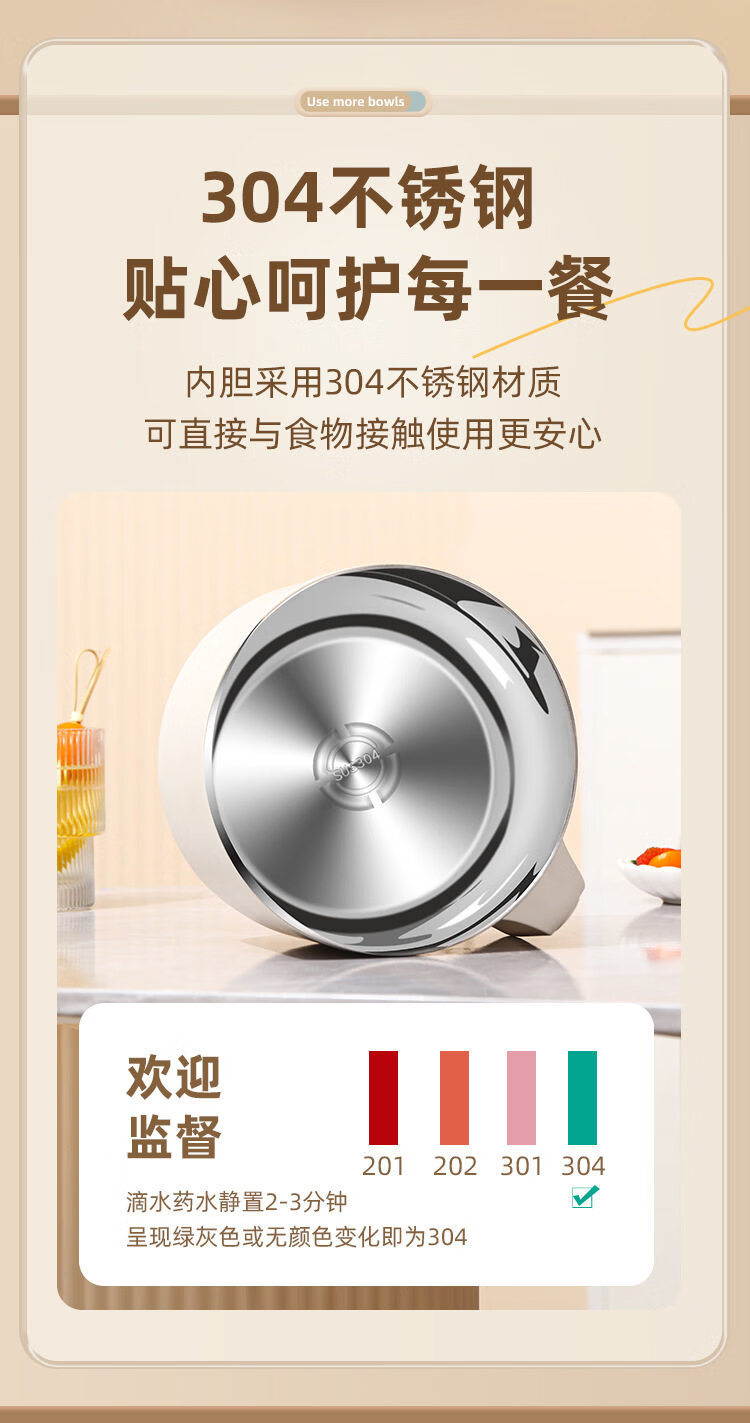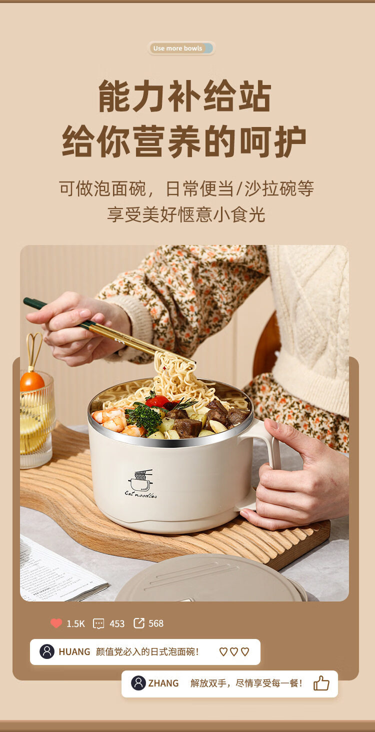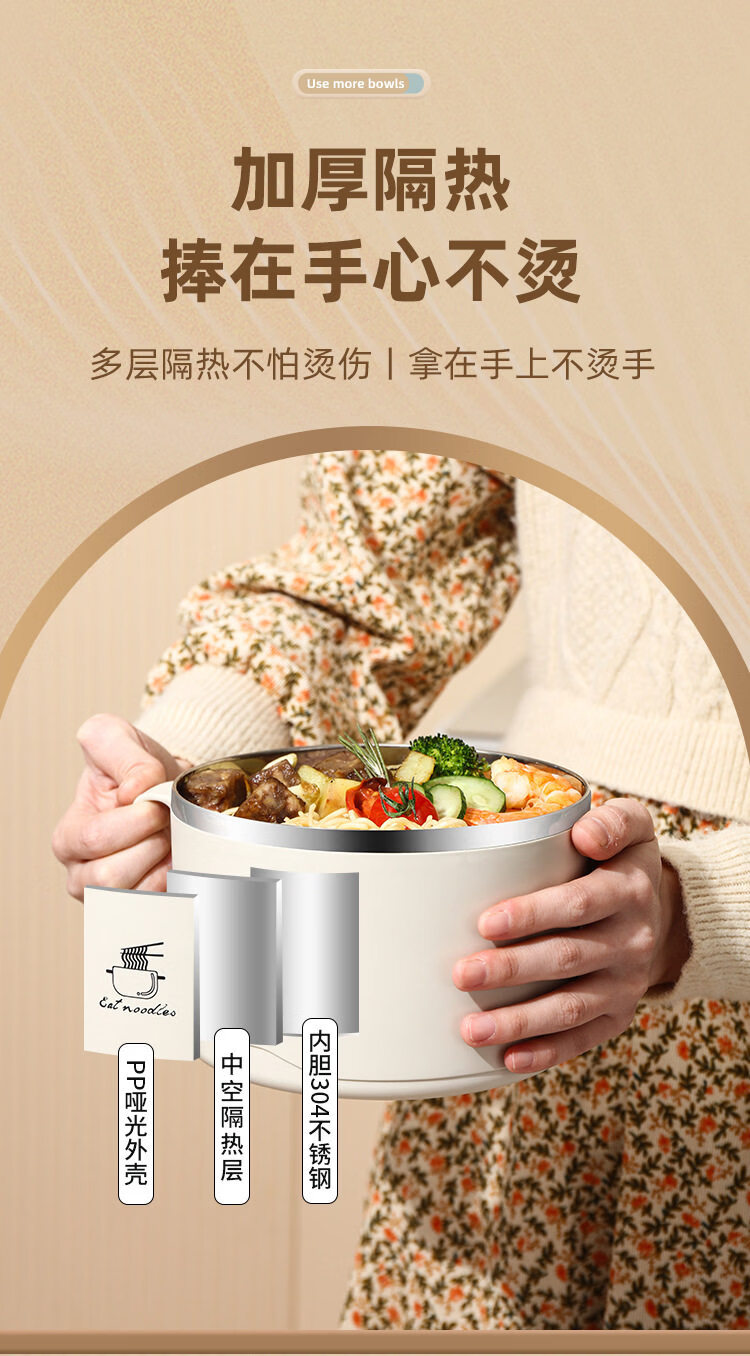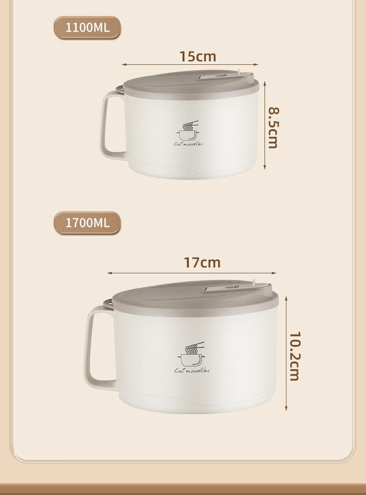 Shijanu new product instant noodle bowl for dormitory students with lid 316 stainless steel instant noodle artifact large capacity Japanese food off-white _316 stainless steel - can soak 3 packs of instant noodles 1700ml