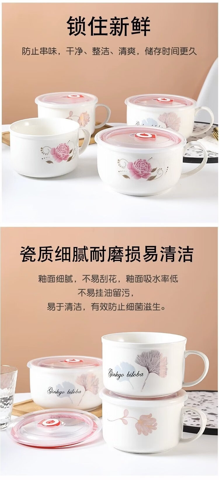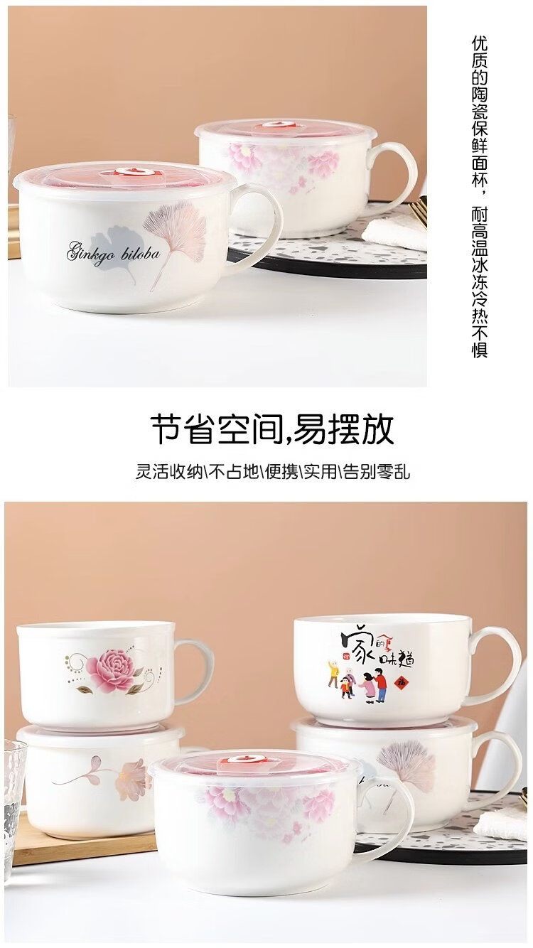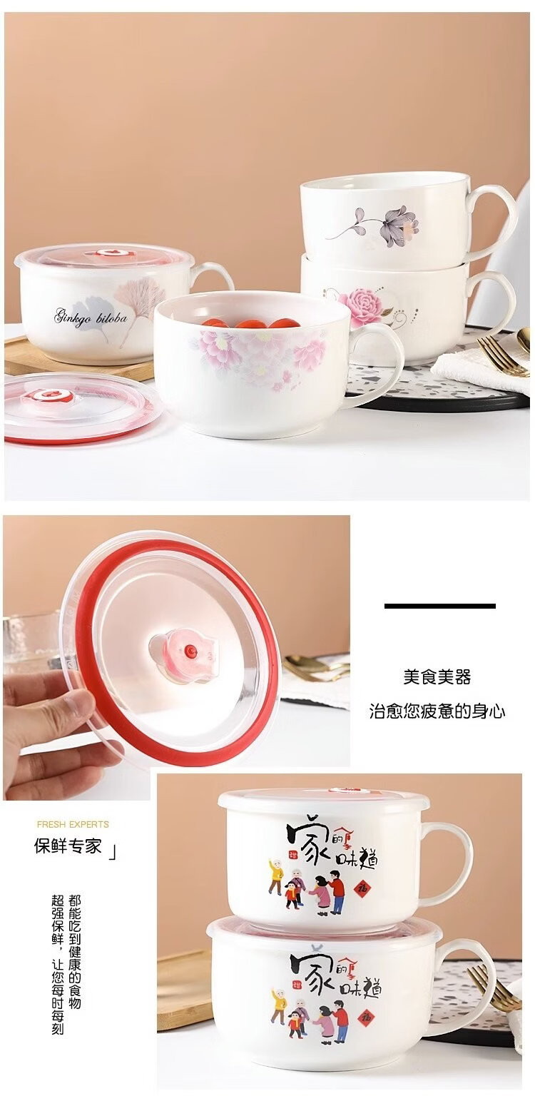 Shijanu new product dormitory large instant noodle bowl microwaveable ceramic bowl fresh-keeping bowl sealed lid with lid large family