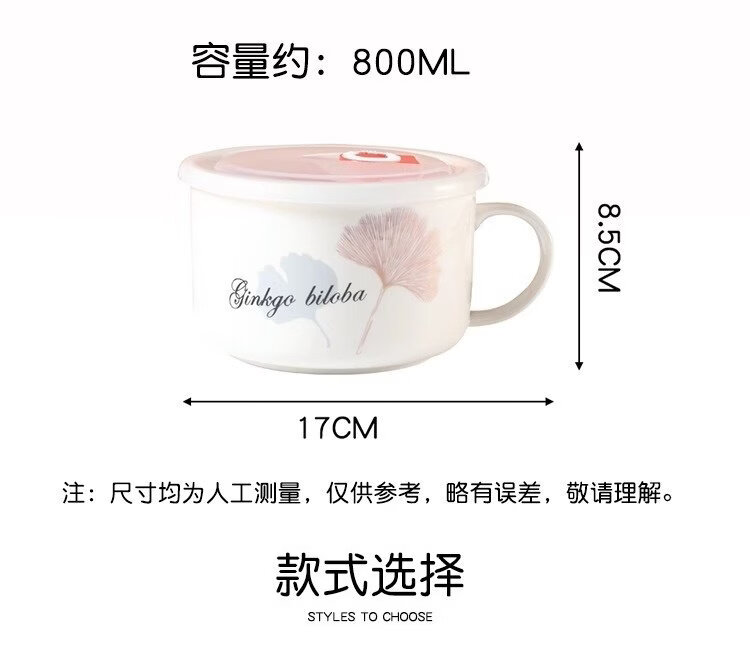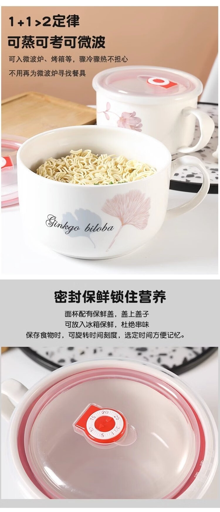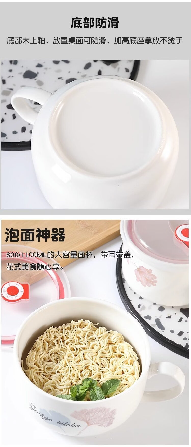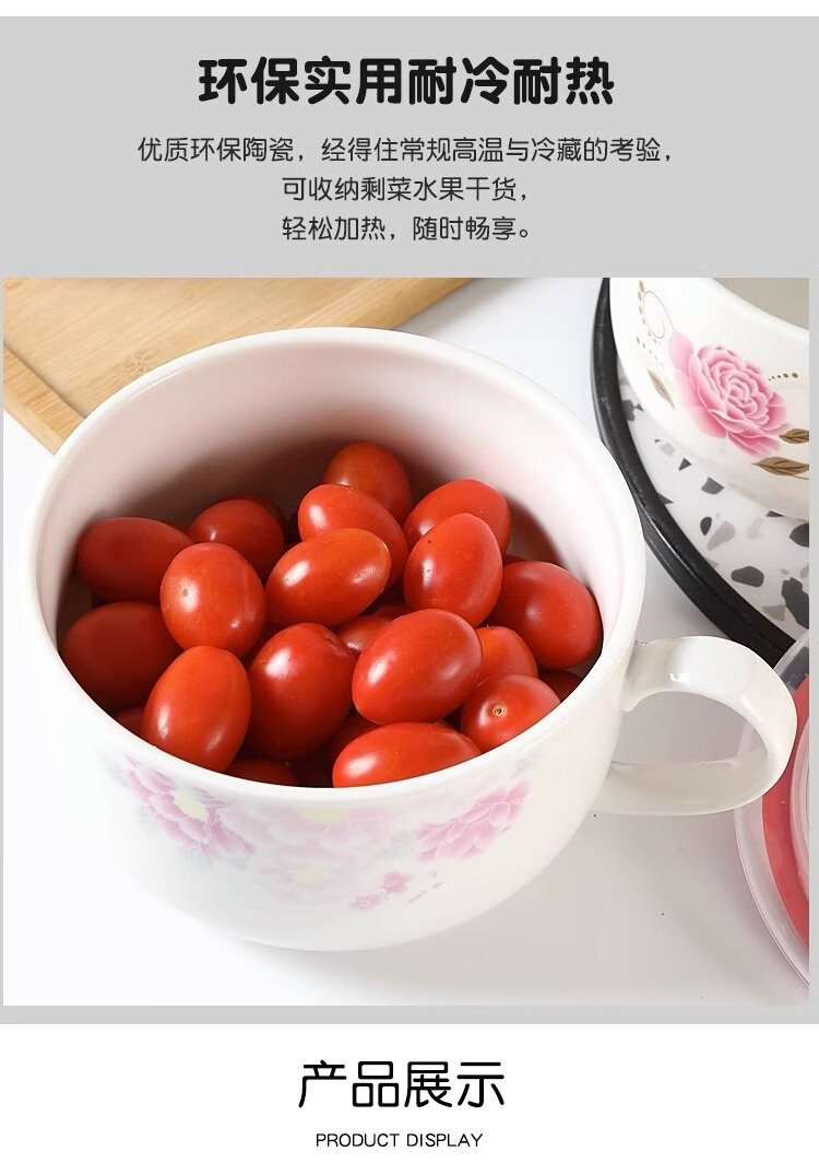 Shijanu new product dormitory large instant noodle bowl microwaveable ceramic bowl fresh-keeping bowl sealed lid with lid large family