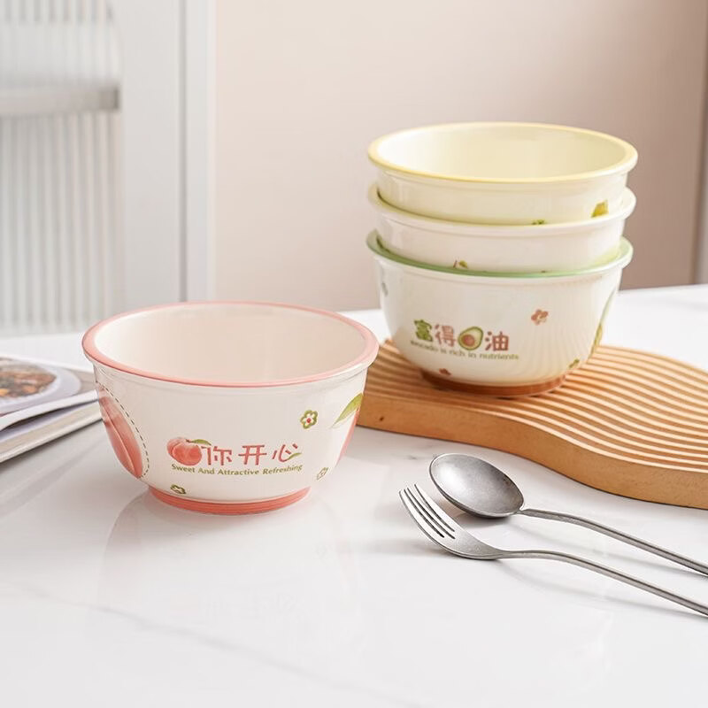Shijanu new product 6-inch noodle bowl, high-looking tableware, cute dormitory instant noodle bowl, ceramic household salad bowl, eating bowl, Peach You Happy-6-inch noodle bowl