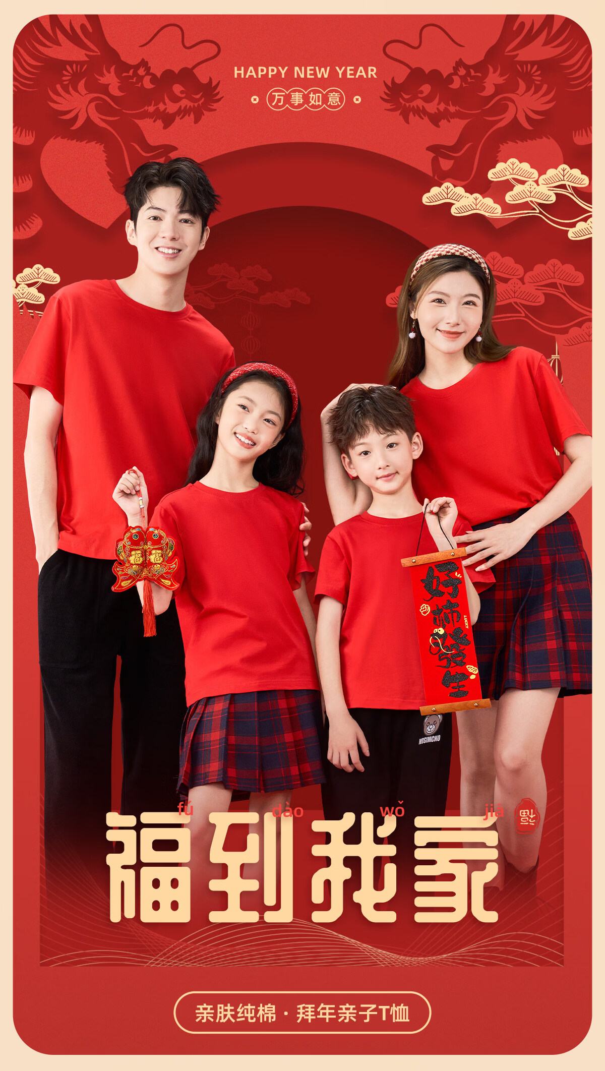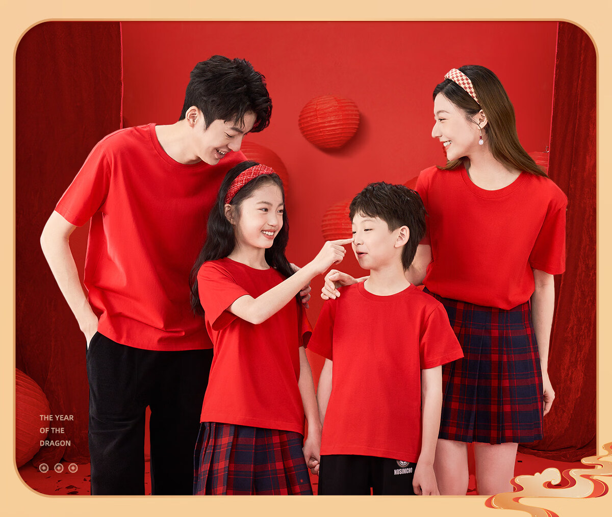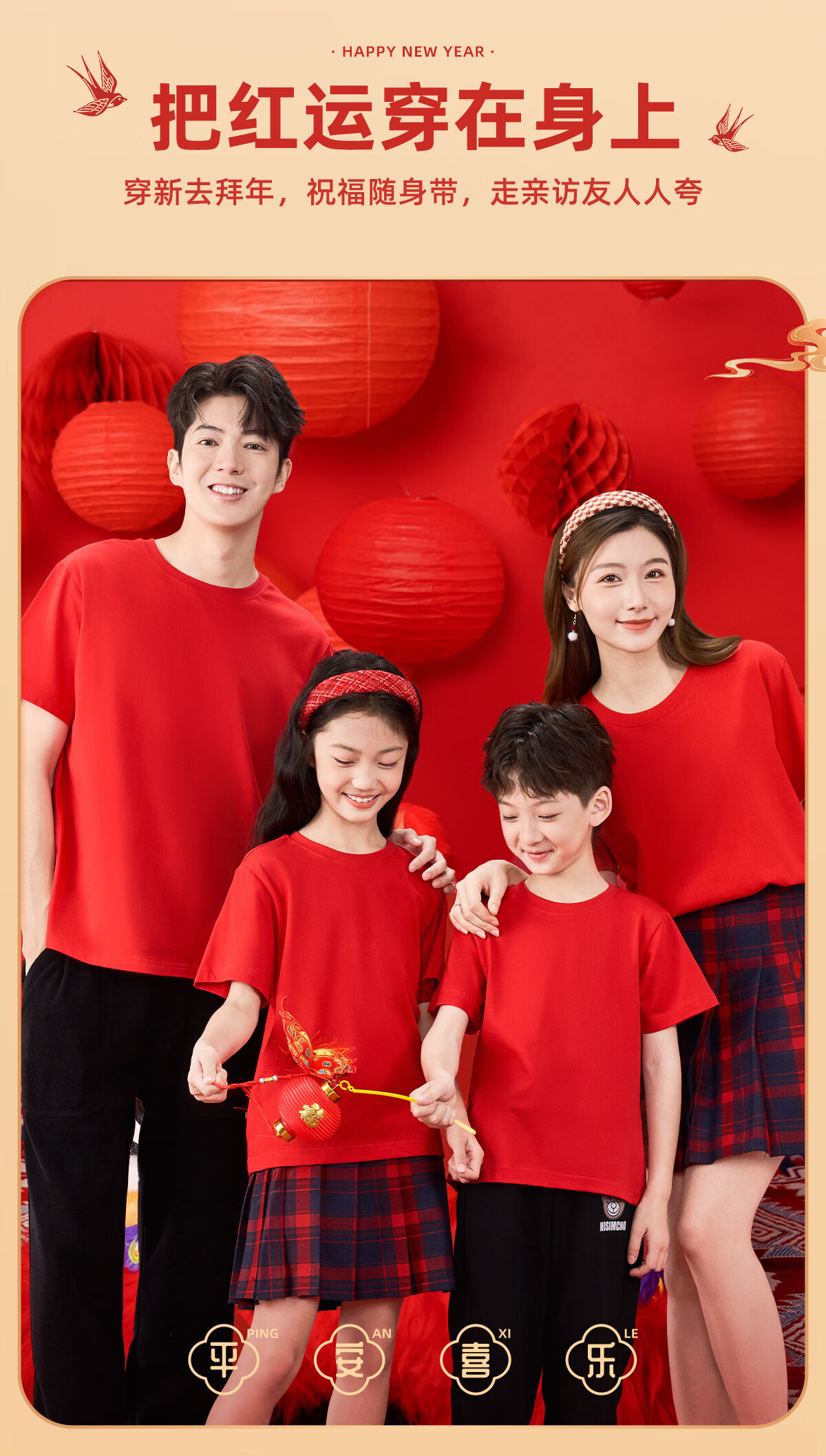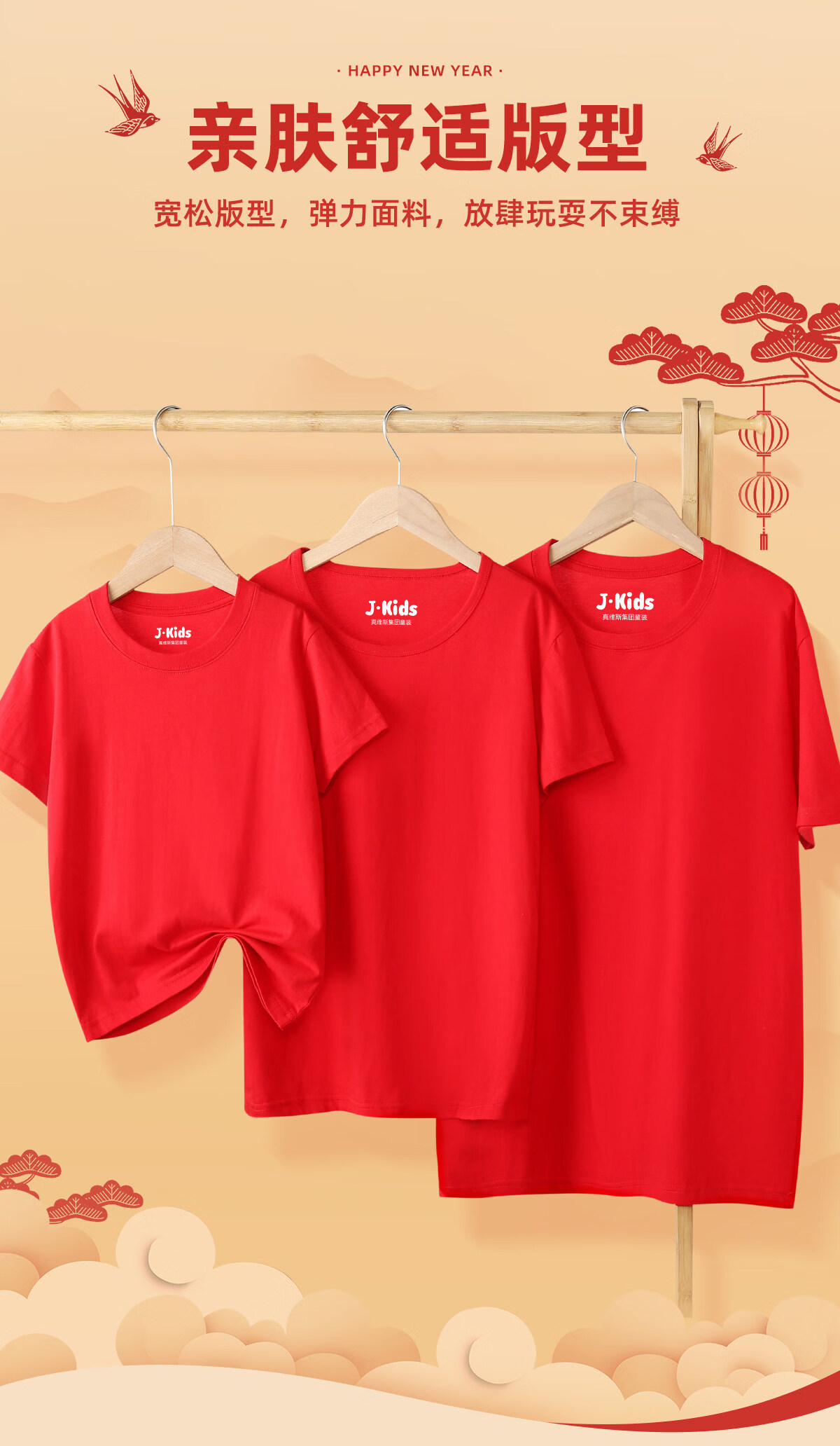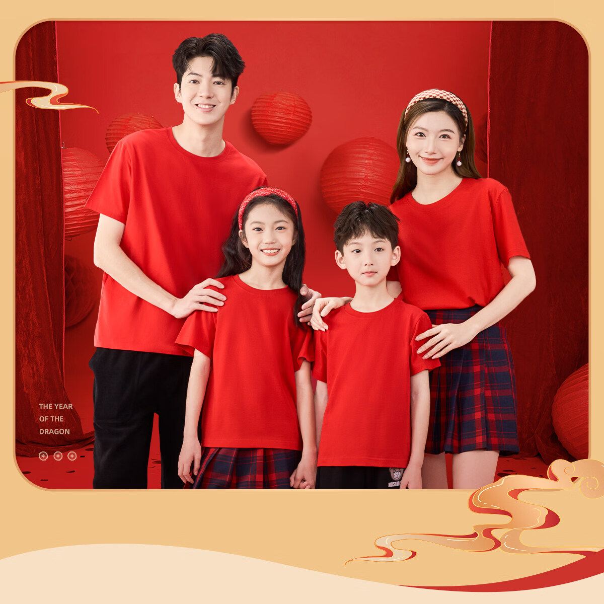Jeanswest parent-child clothing for a family of four, winter clothing, short-sleeved T-shirts for the year of birth, family portrait, red New Year's greetings clothes, New Year limited short-sleeved 02 165 recommended weight 90-110 Jin Jin equals 0.5 kg