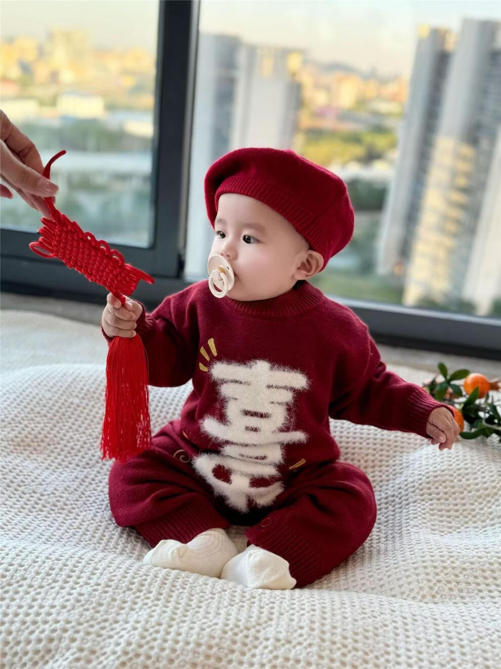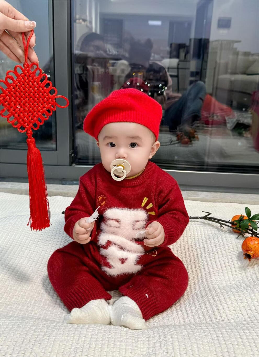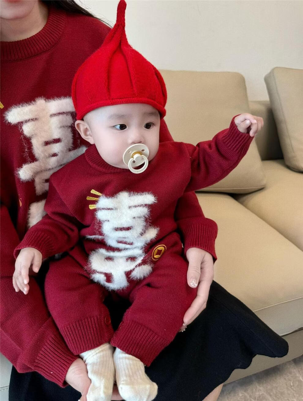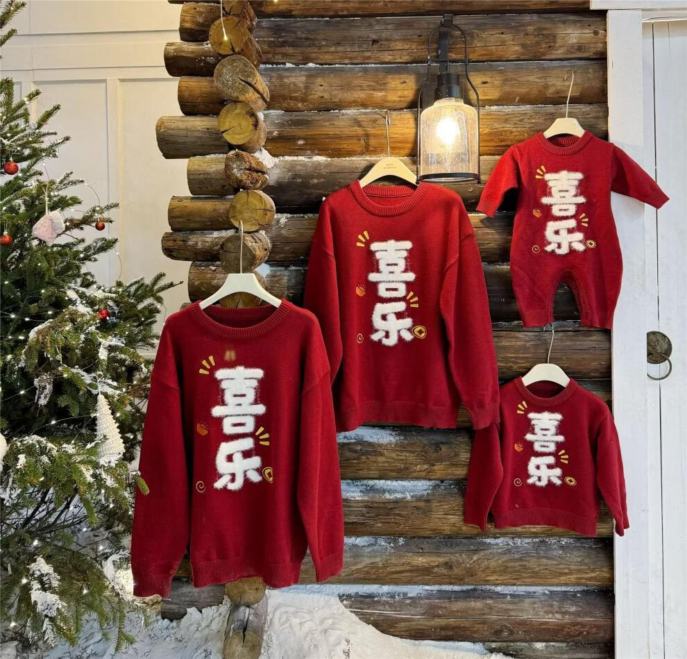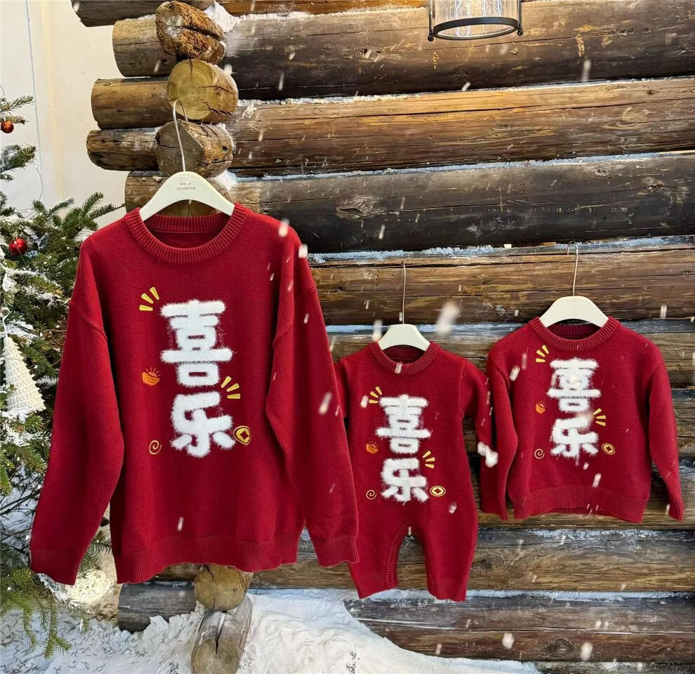 G.duck Year of the Horse New Year parent-child clothing winter baby sweater for a family of three or four red family clothing New Year greetings knitted sweater 9905 Ping An 80 cm