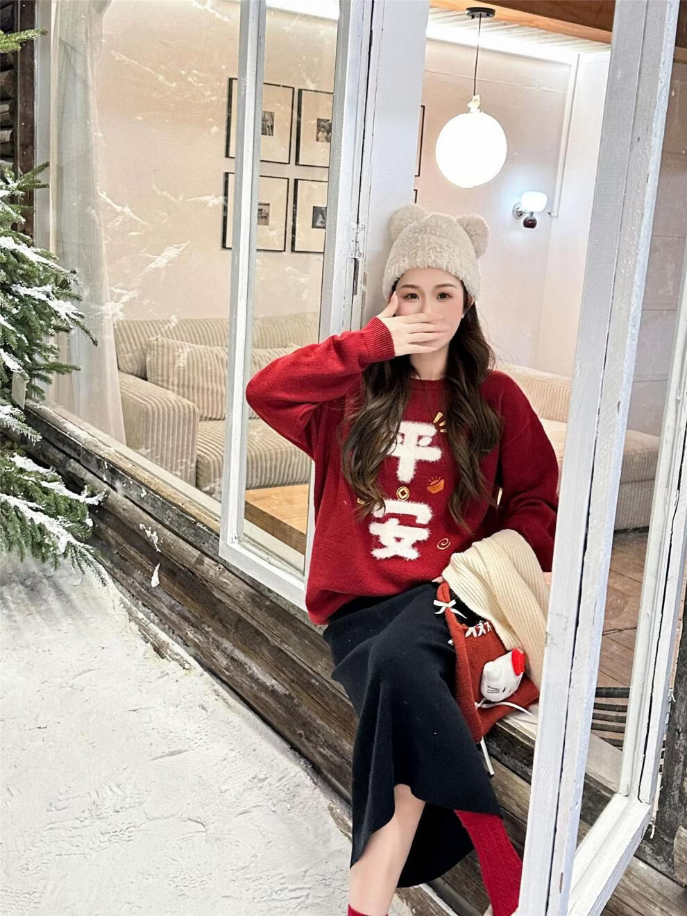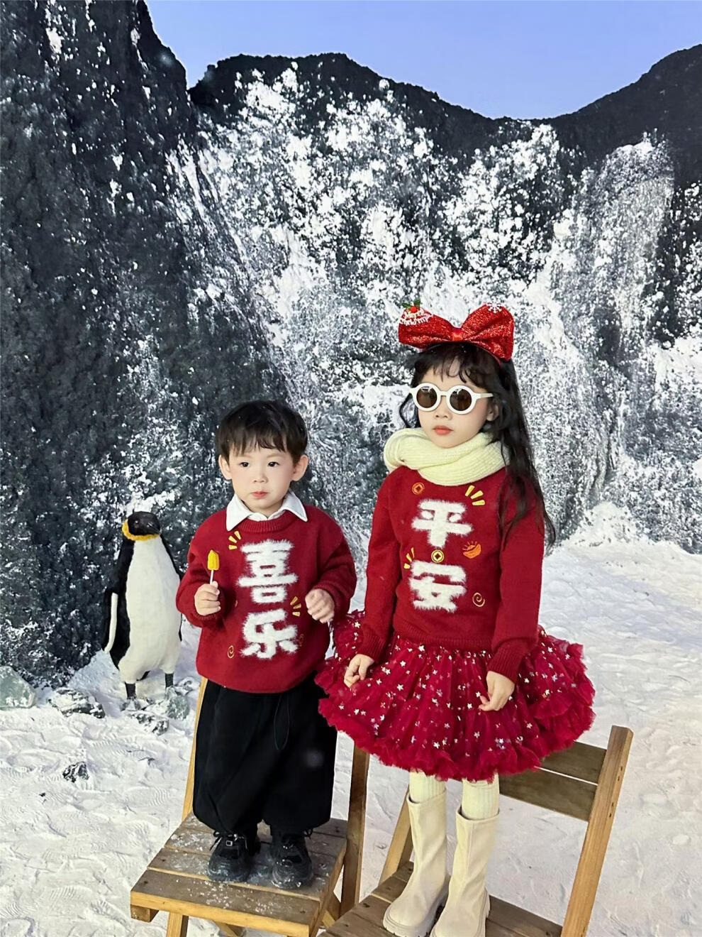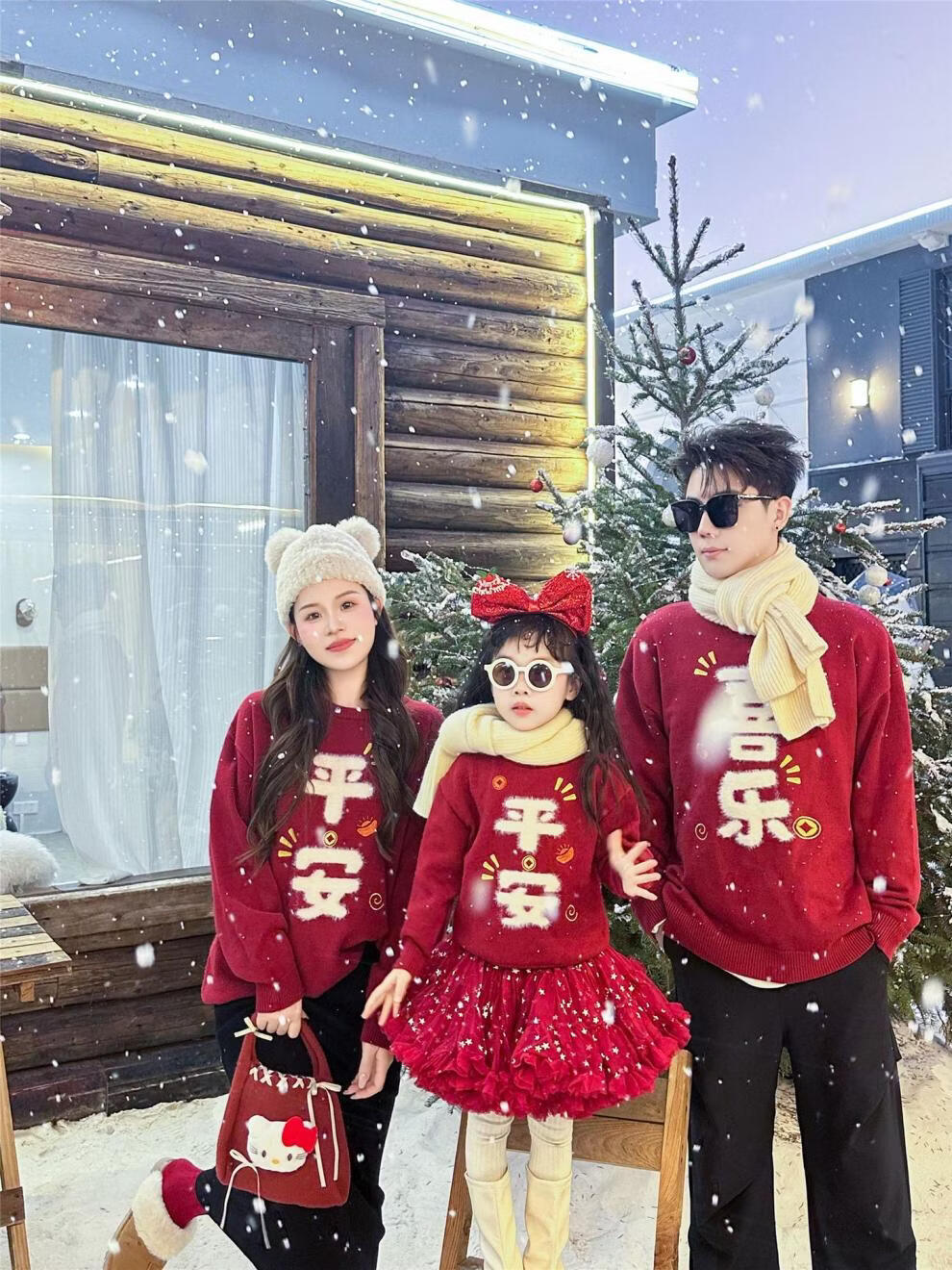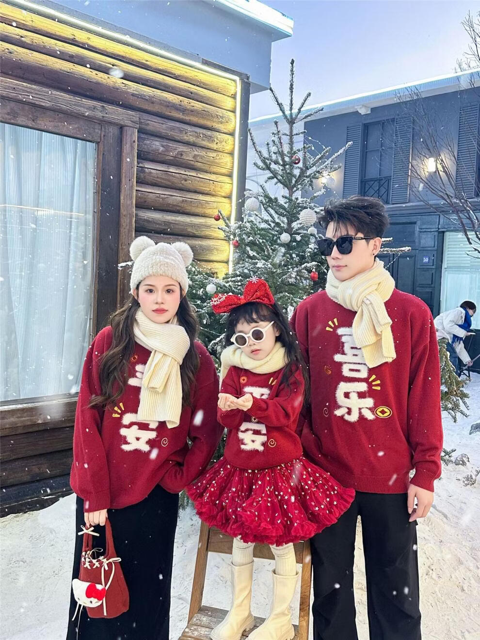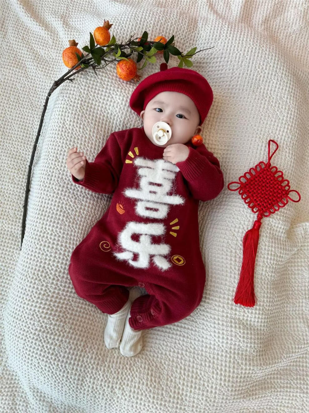 G.duck Year of the Horse New Year parent-child clothing winter baby sweater for a family of three or four red family clothing New Year greetings knitted sweater 9905 Ping An 80 cm