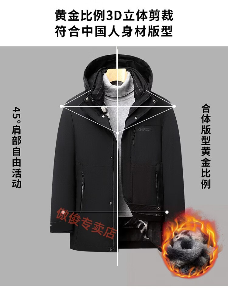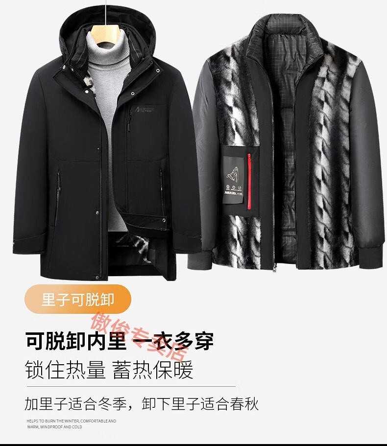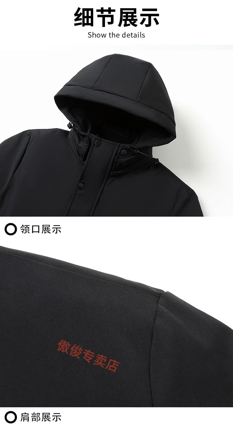 利郎新款羽绒服可拆帽高品质男士冬装外套加厚商务休闲保暖羽绒衣御寒 黑色 XL