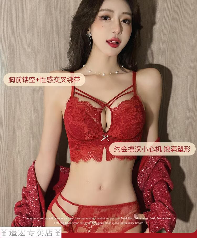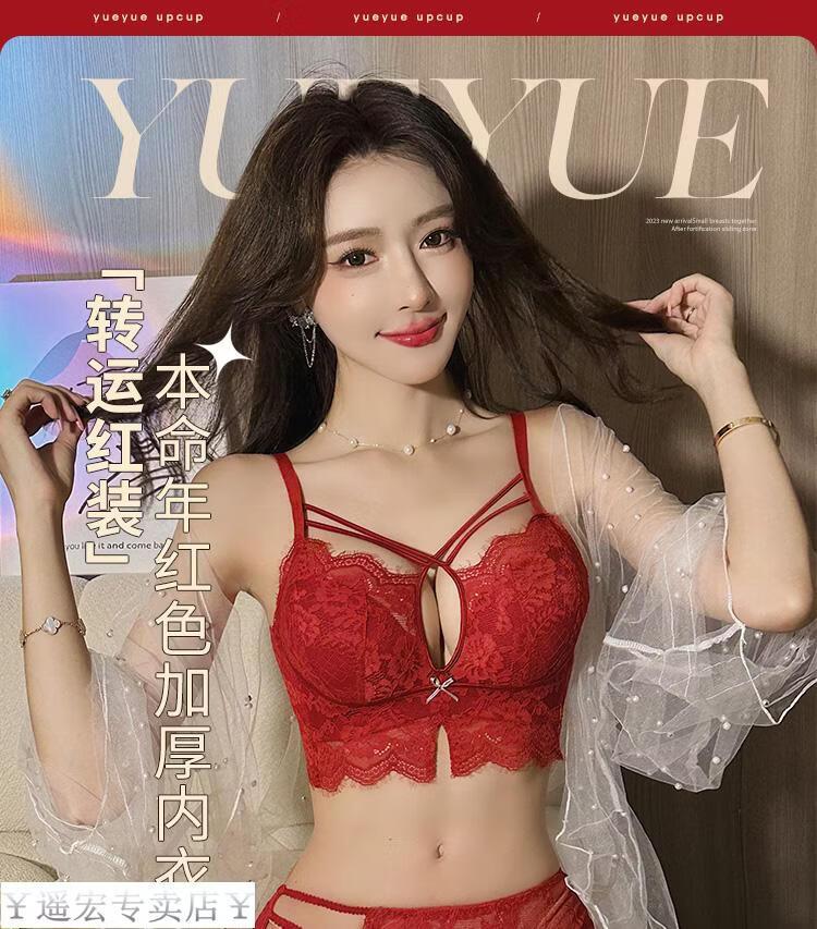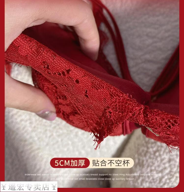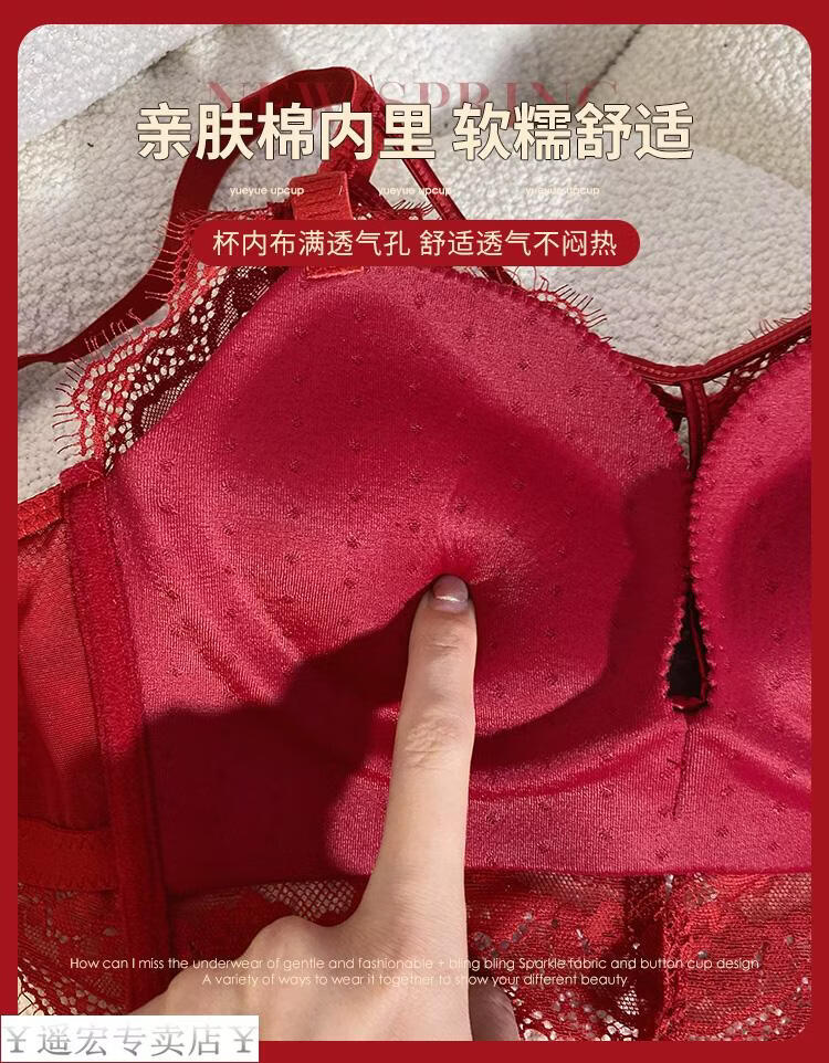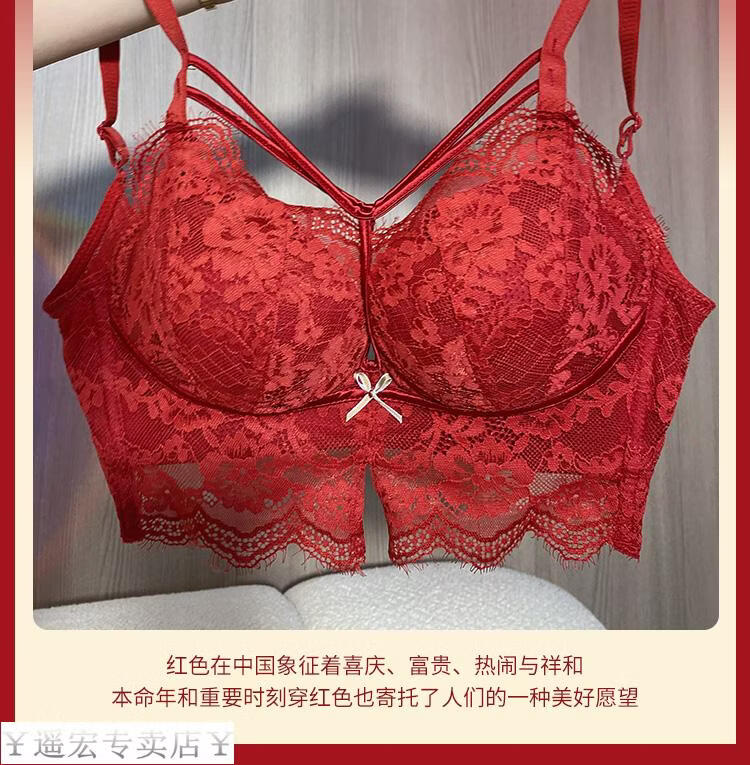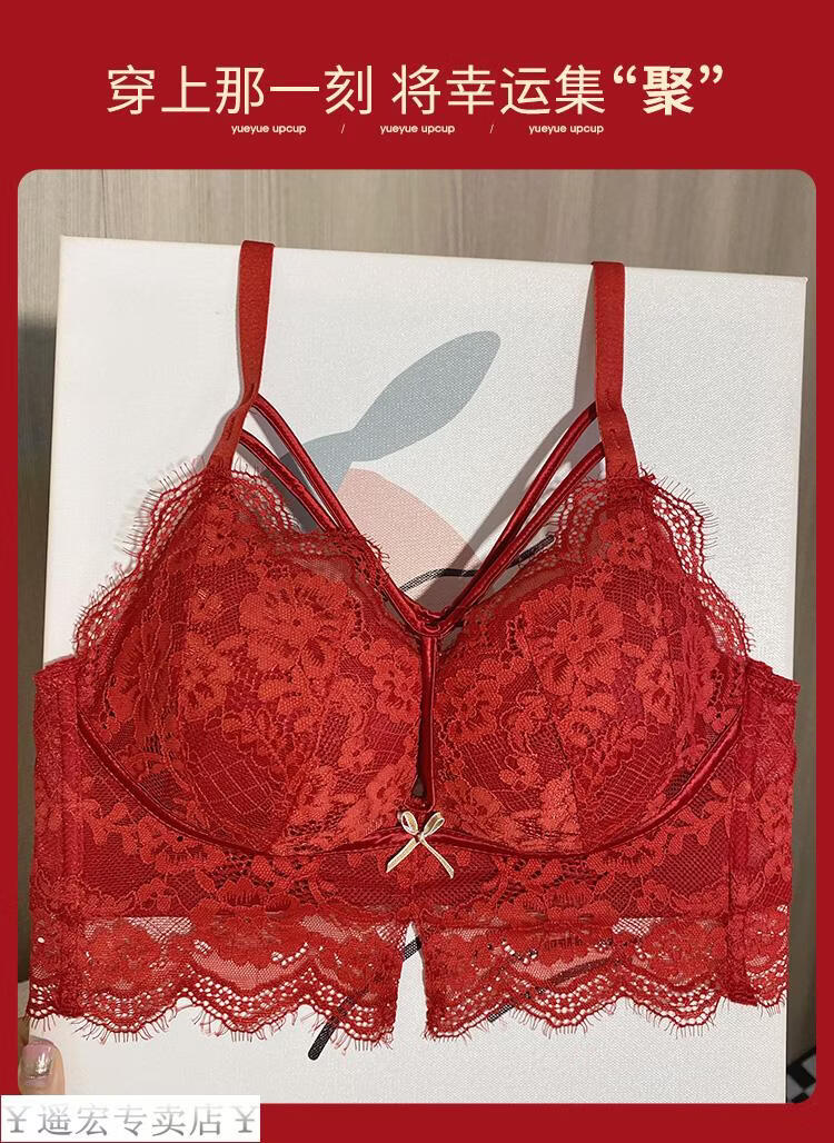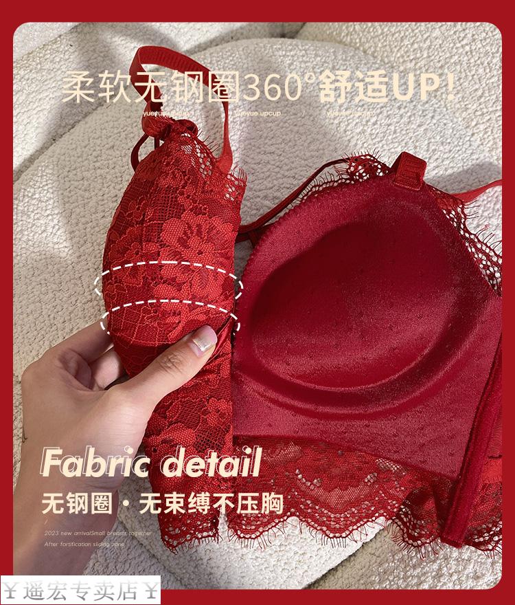 LangSha 2026 Horse Red Underwear Zodiac Year Suit Women's Small Breast Push Up Thickened Underwear Bra Wedding Bride Festive Red Set One Size 85/38B