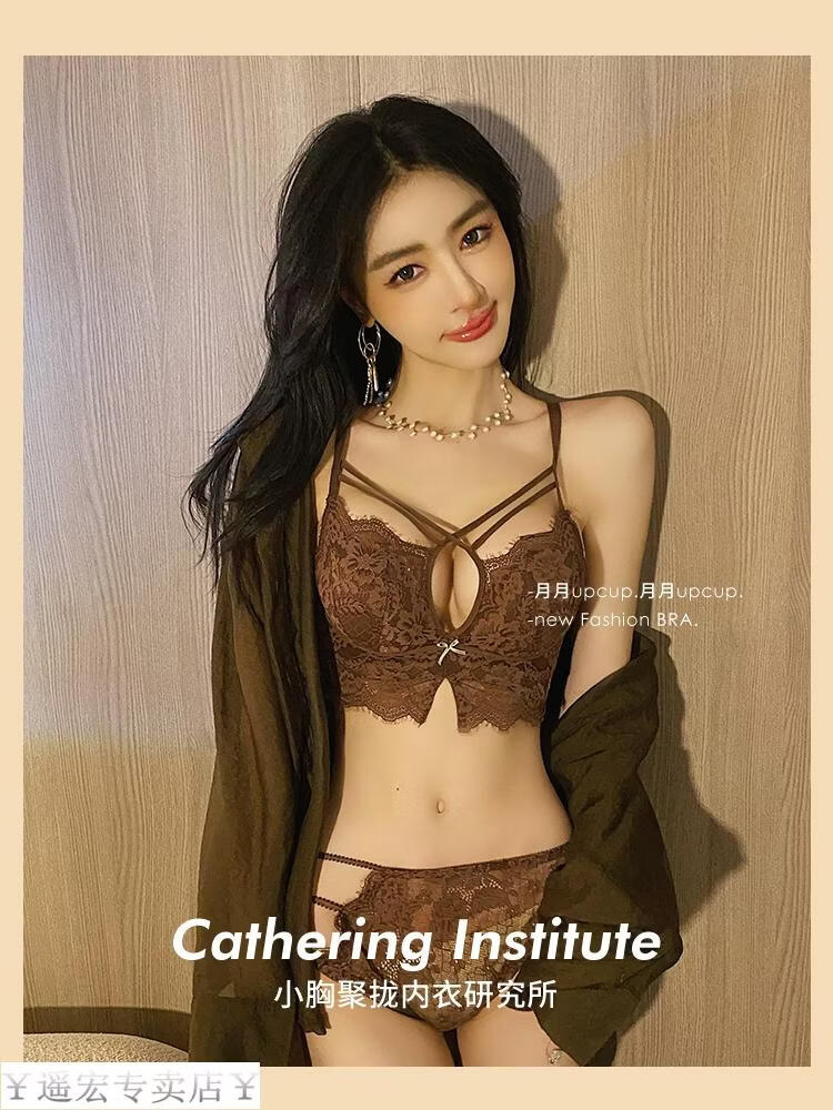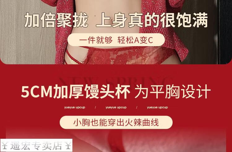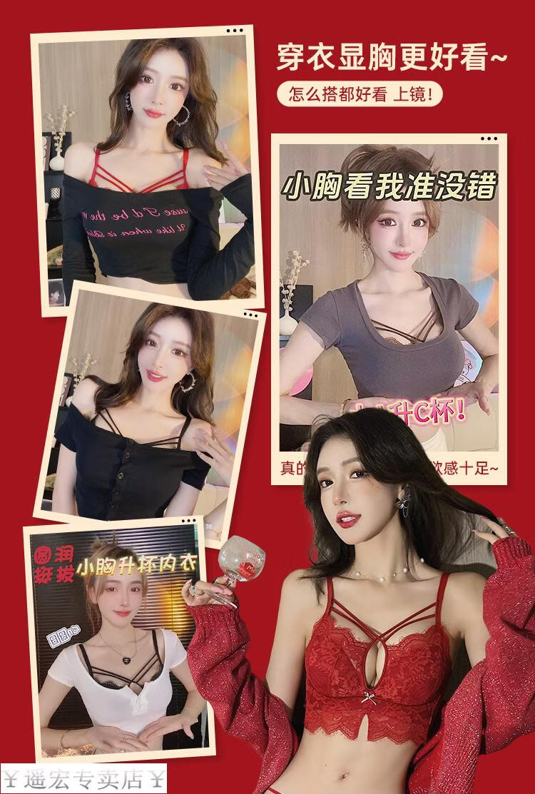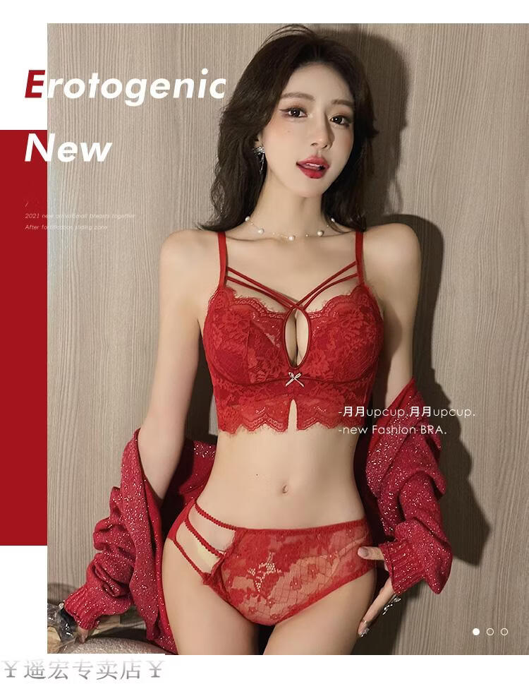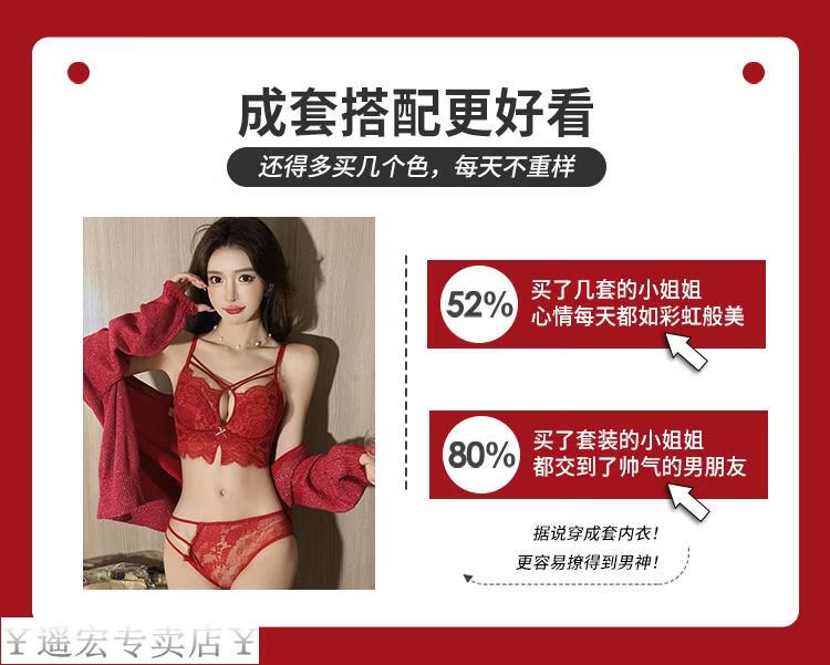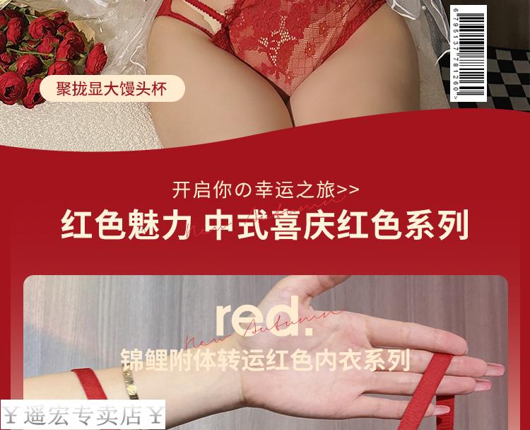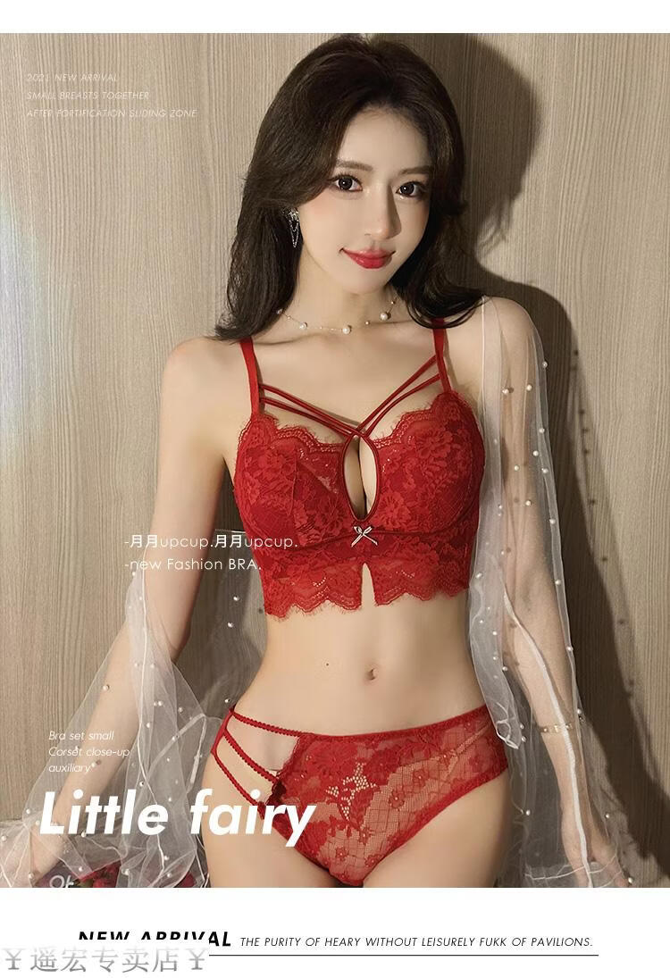 LangSha 2026 Horse Red Underwear Zodiac Year Suit Women's Small Breast Push Up Thickened Underwear Bra Wedding Bride Festive Red Set One Size 85/38B