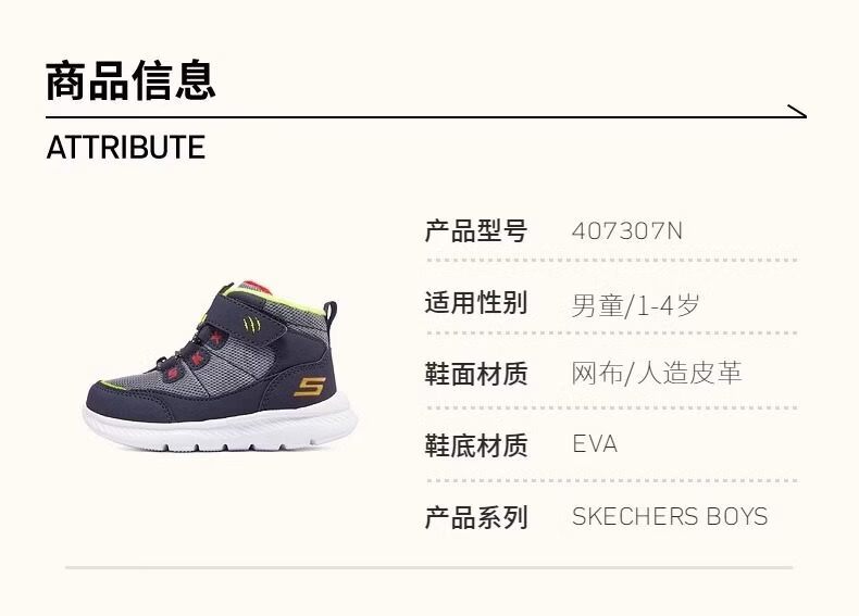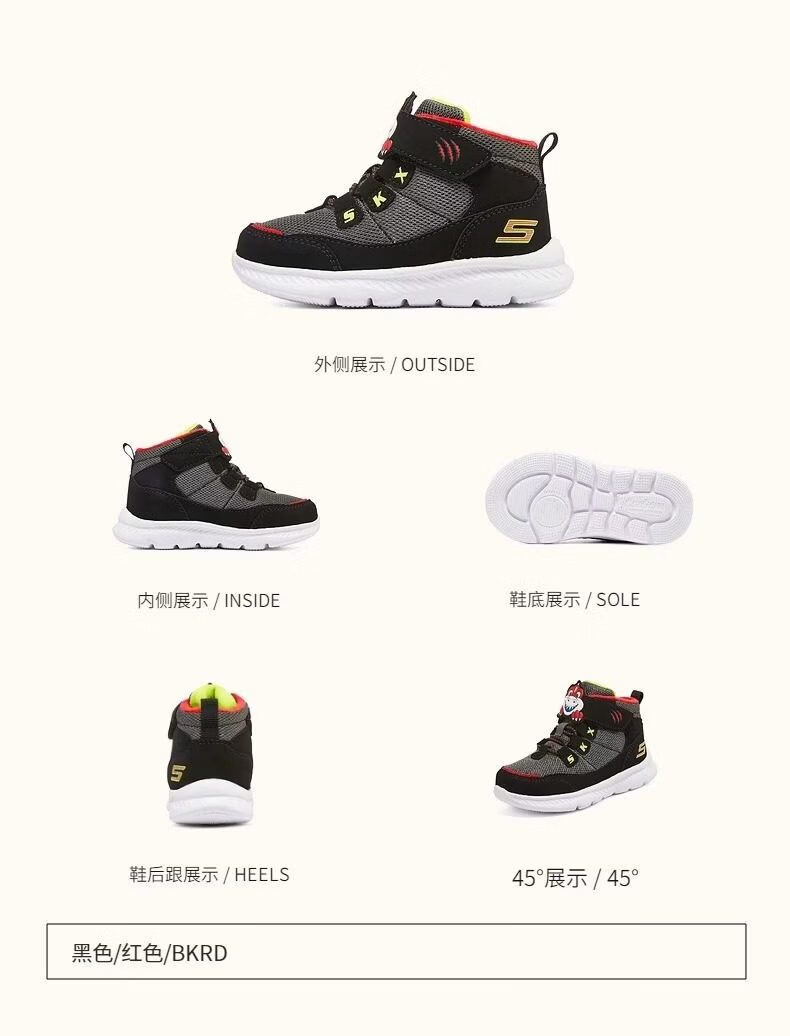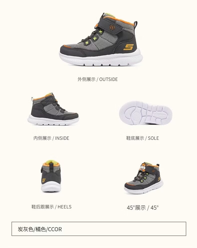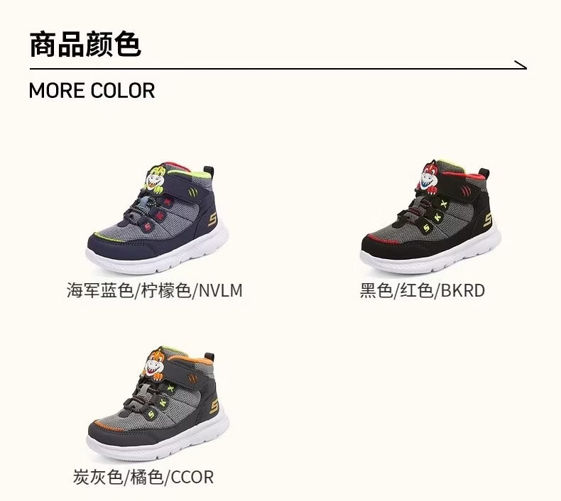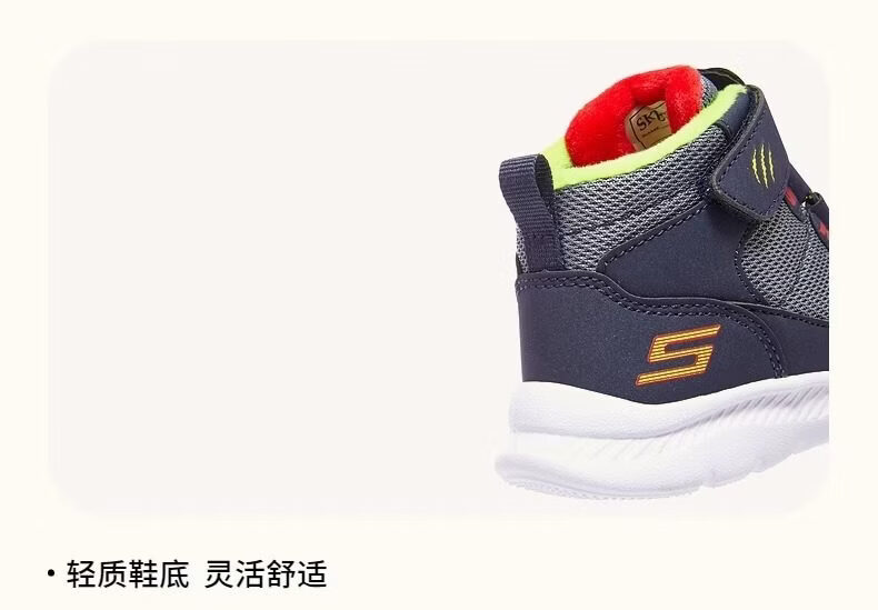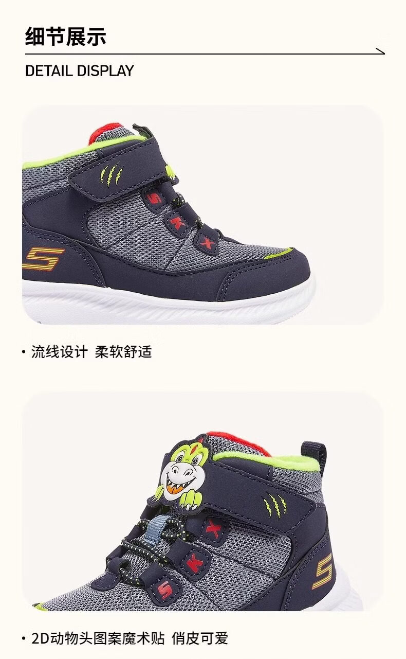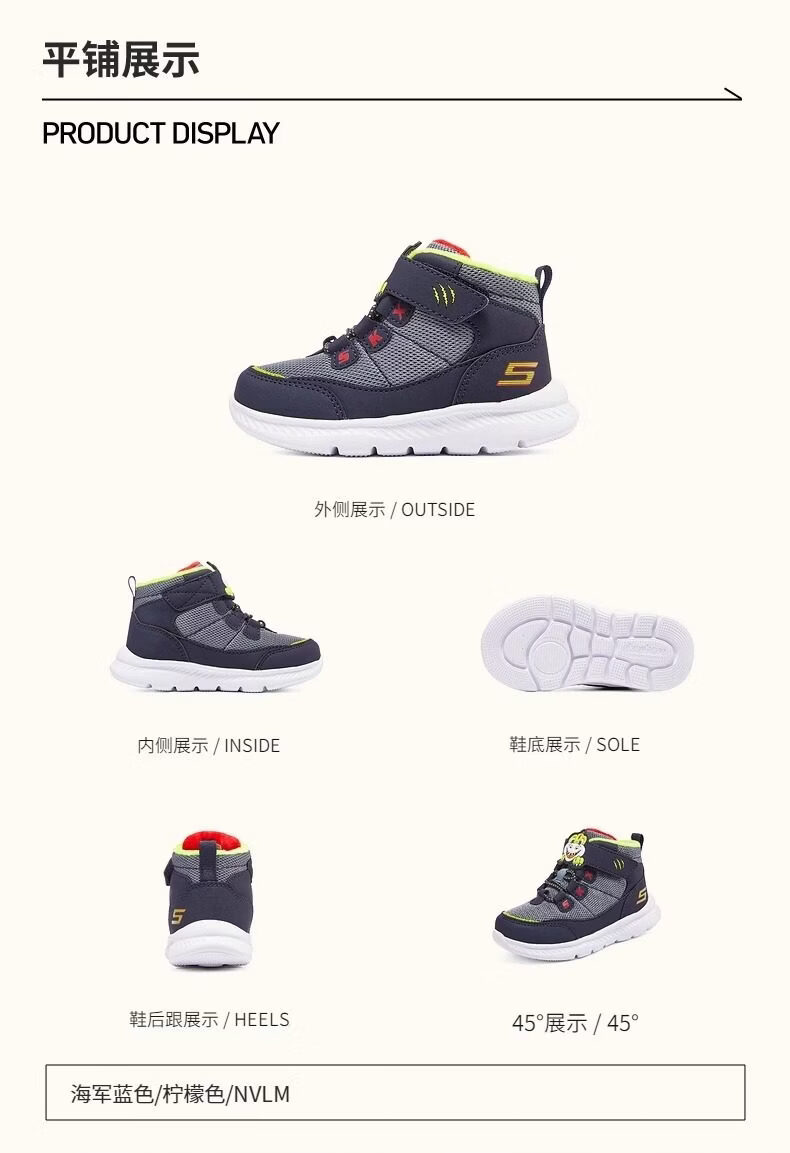 Skechers Men's Shoes Animal Head Winter Style Plush Warm High-top Snow Boots Sports Shoes Official Flagship Navy Blue/Lemon 25