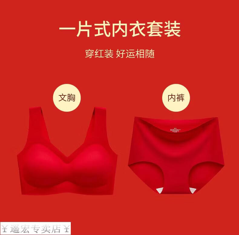 LangSha 2025 Year of the Horse Red Zodiac Year Underwear Set Women's Small Breast Push-up Bride Wedding Vest Style Bra Two Sets Red (Gift Box) XL (120-140 Jin Jin equals 0.5 kg)