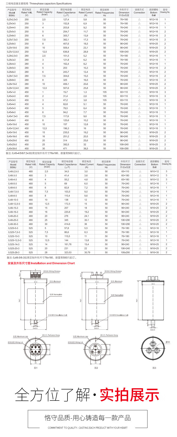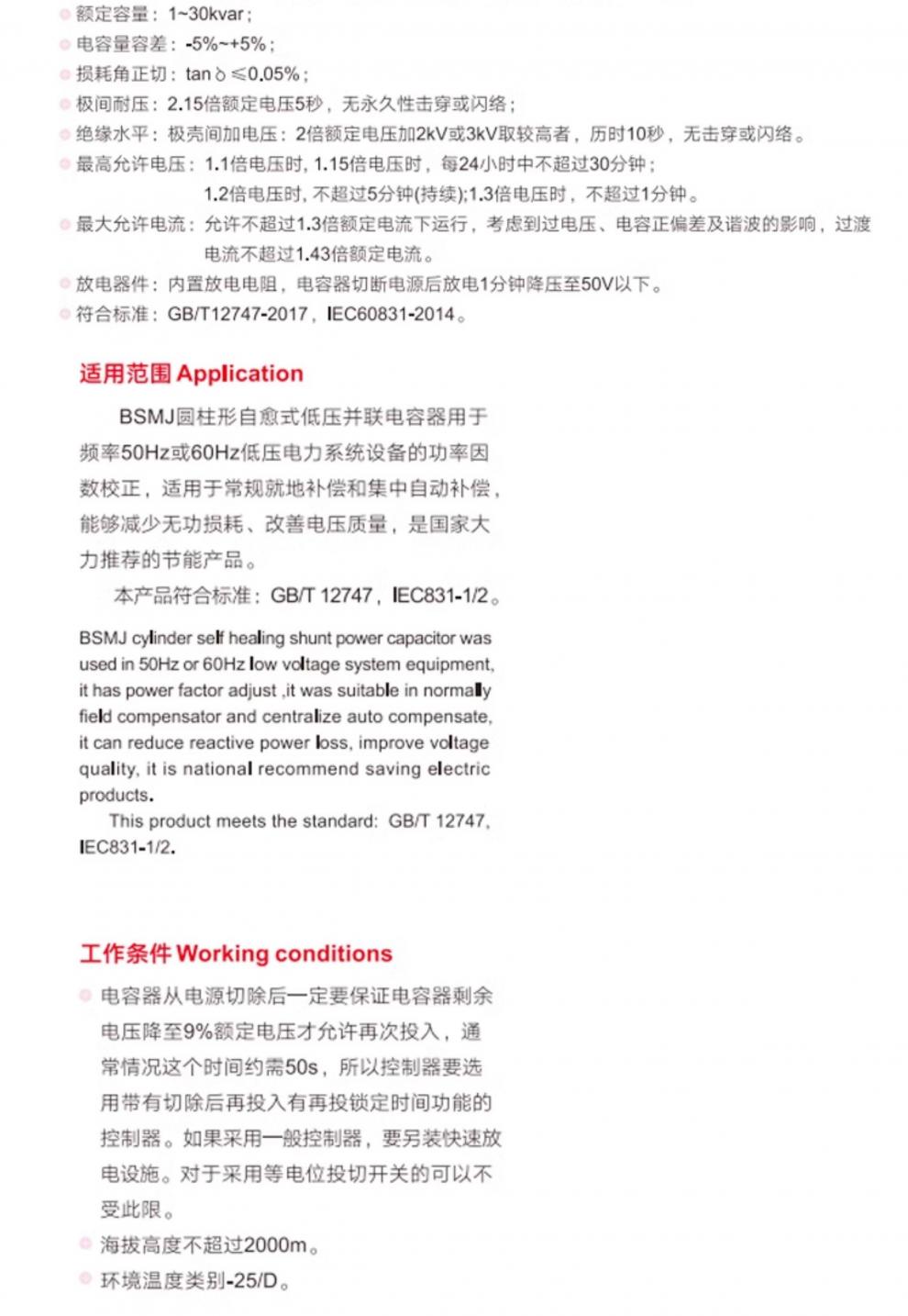 Specify BSMJ0.28-0.45 self-healing power capacitor corrosion-resistant shell cylindrical BSMJ0.28-2.5-1
