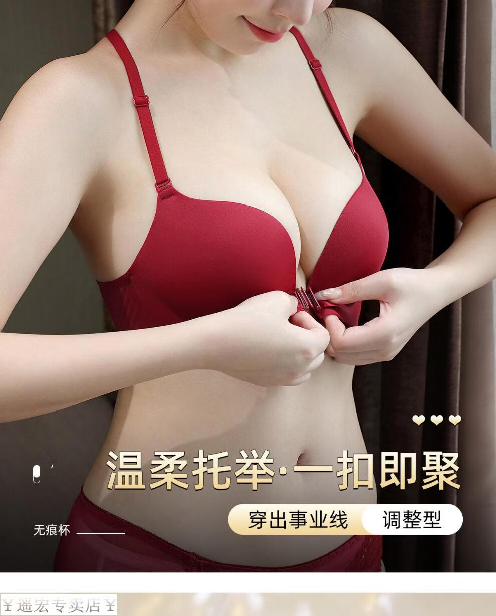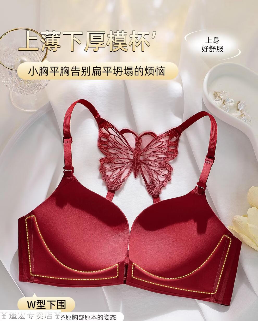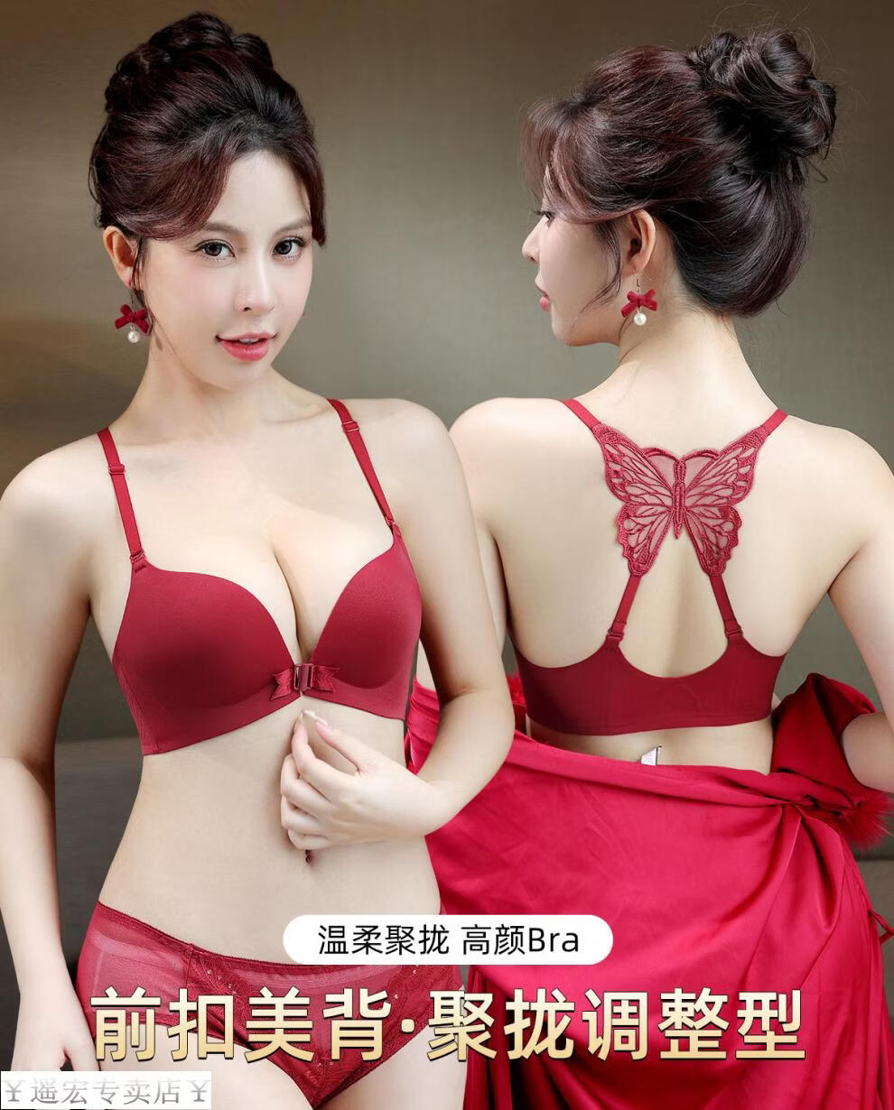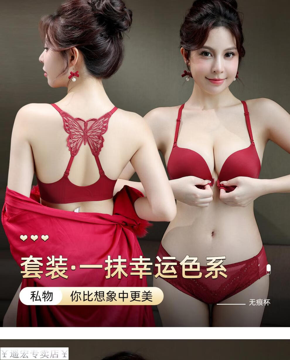 LangSha (LangSha) Burgundy Sexy Beautiful Back Underwear Women's Small Breast Gathering and Enlarging Seamless Front Button Bra Set Ben Ming Nian Burgundy Set 85B 38