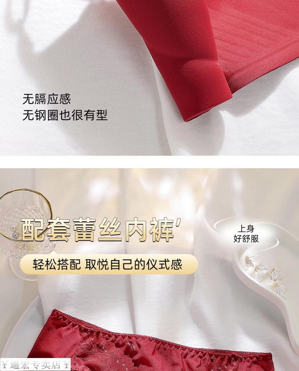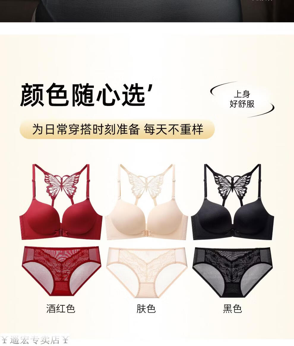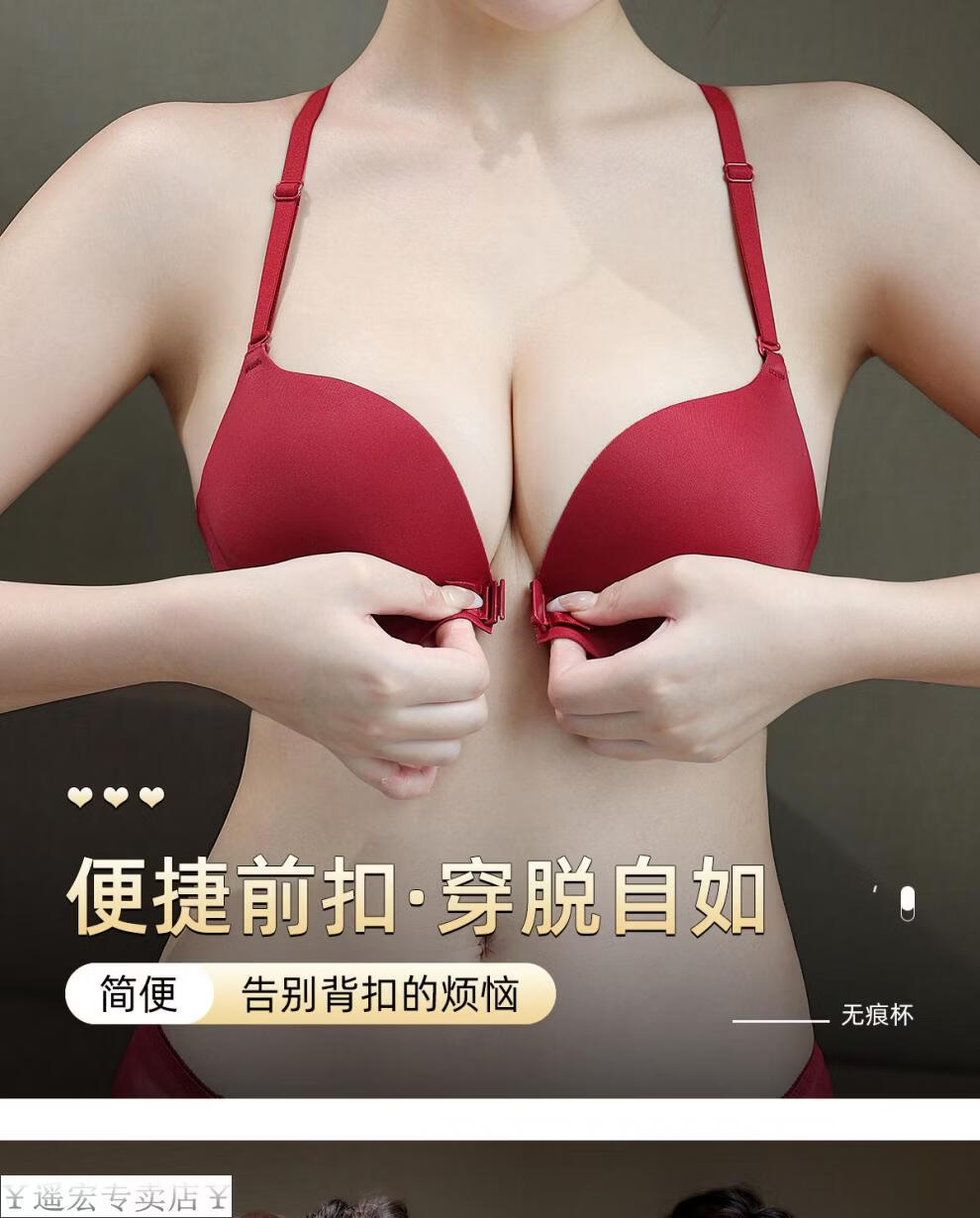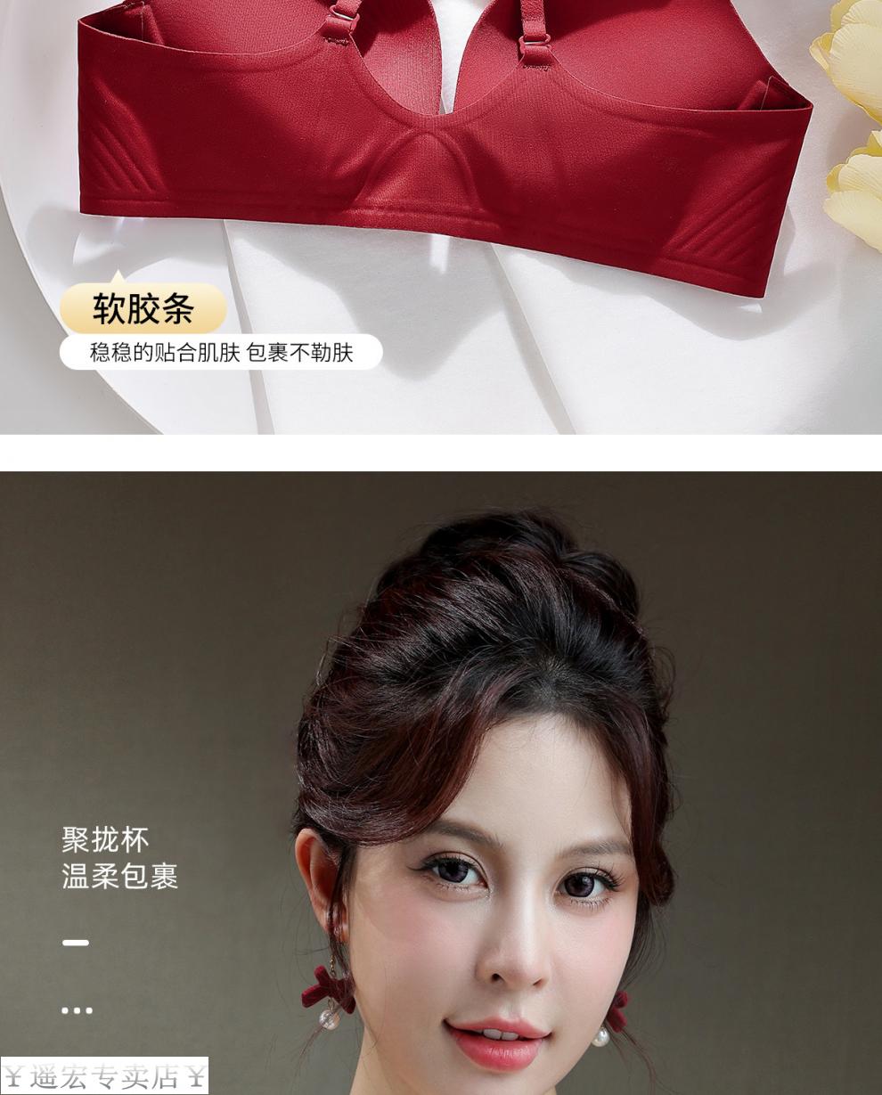 LangSha (LangSha) Burgundy Sexy Beautiful Back Underwear Women's Small Breast Gathering and Enlarging Seamless Front Button Bra Set Ben Ming Nian Burgundy Set 85B 38