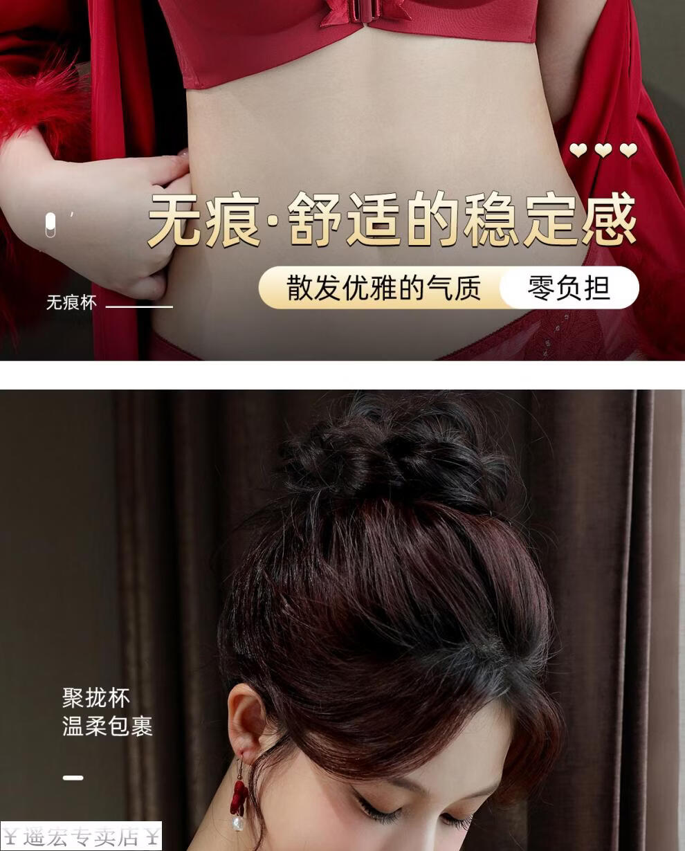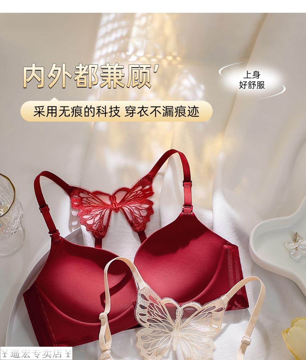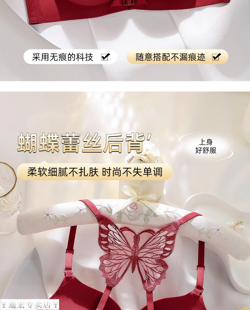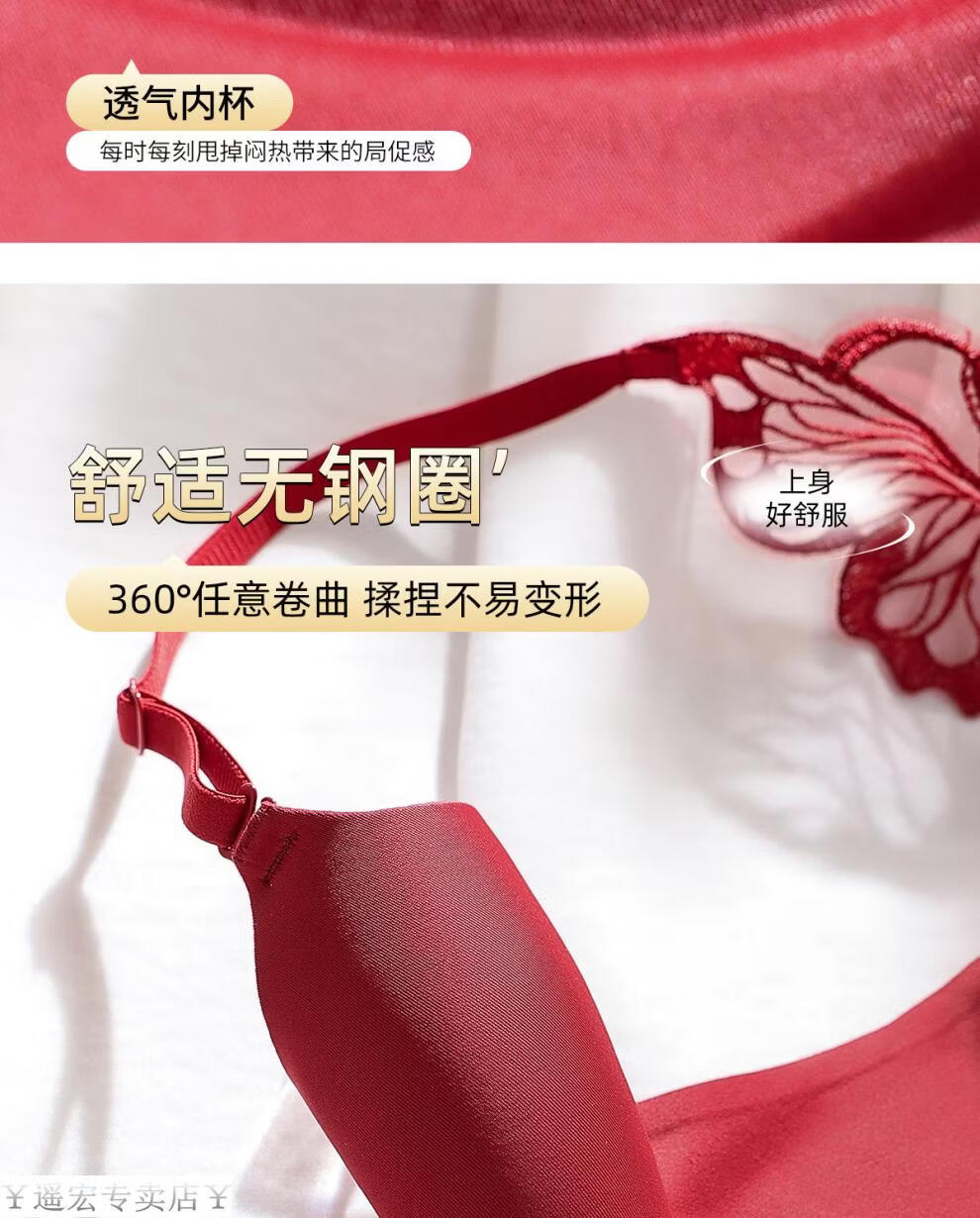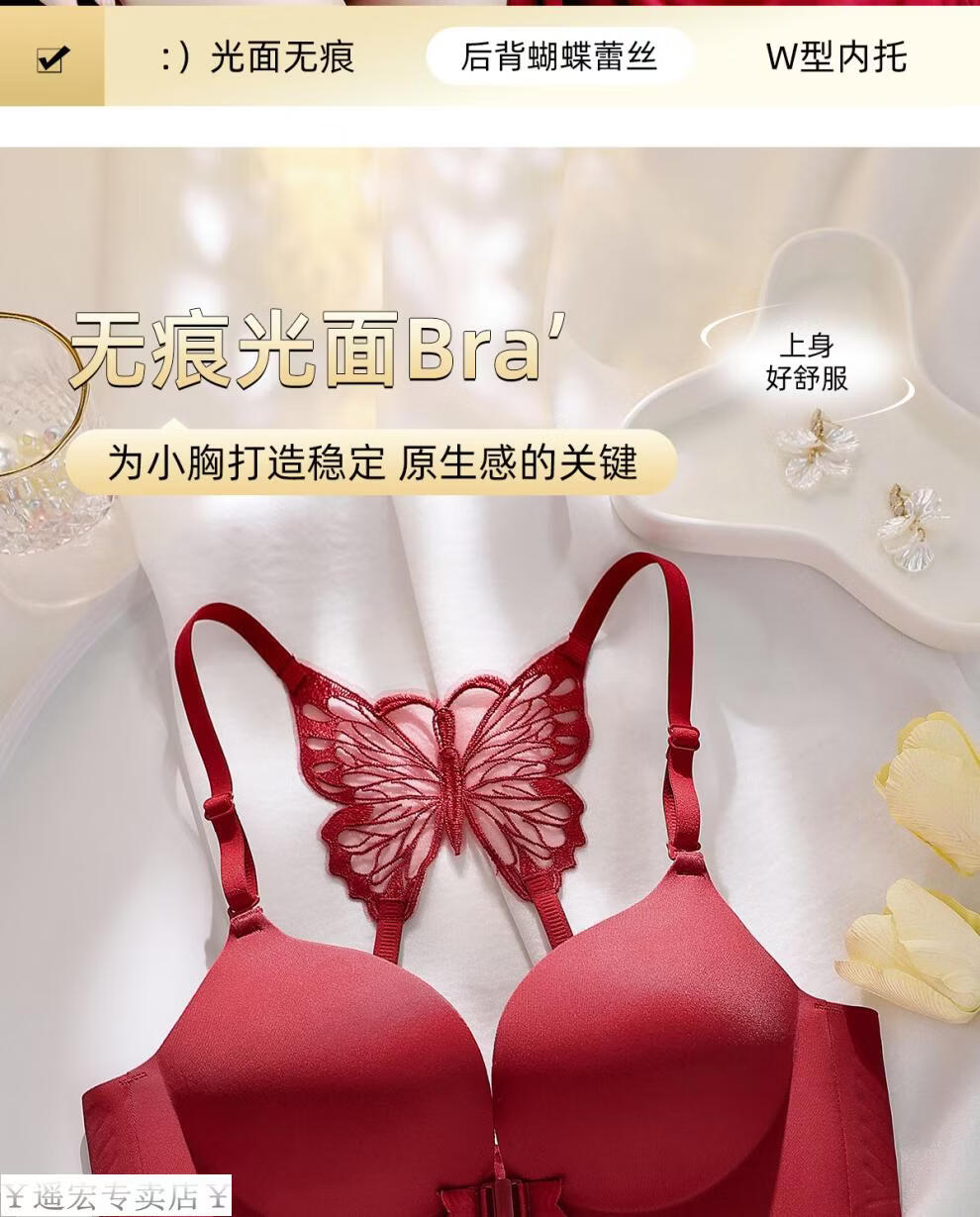 LangSha (LangSha) Burgundy Sexy Beautiful Back Underwear Women's Small Breast Gathering and Enlarging Seamless Front Button Bra Set Ben Ming Nian Burgundy Set 85B 38