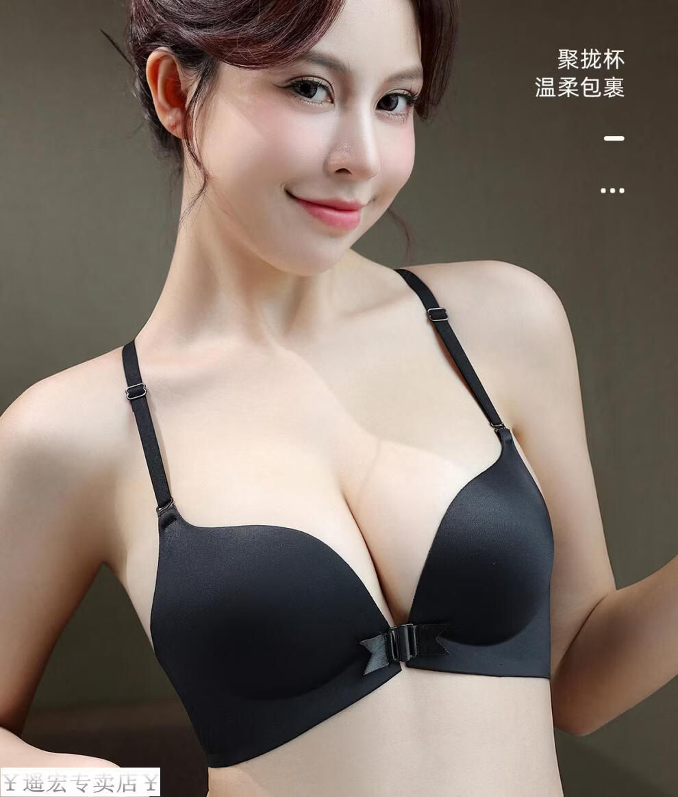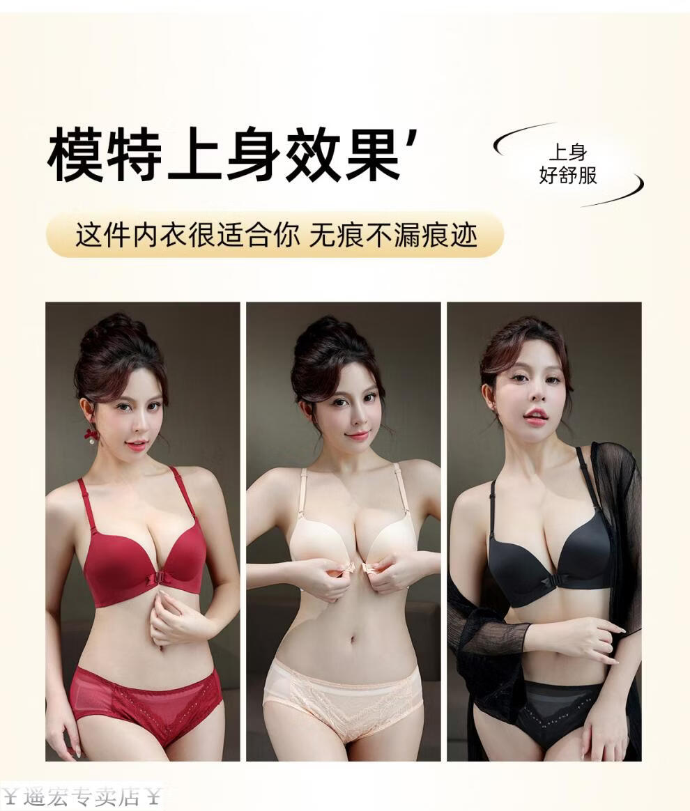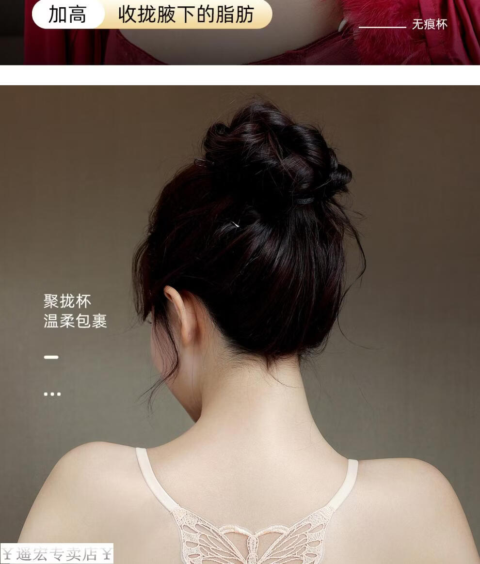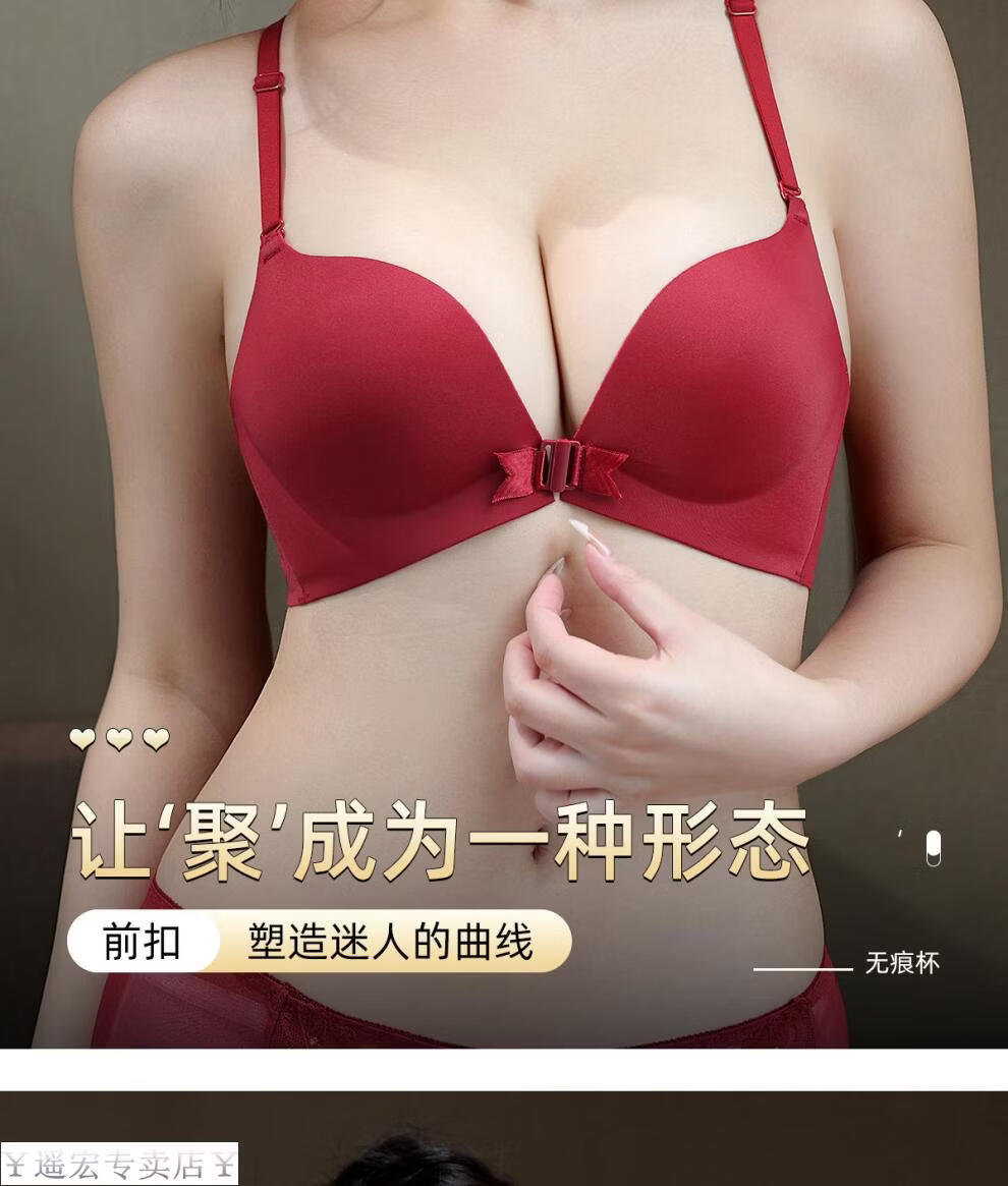 LangSha (LangSha) Burgundy Sexy Beautiful Back Underwear Women's Small Breast Gathering and Enlarging Seamless Front Button Bra Set Ben Ming Nian Burgundy Set 85B 38