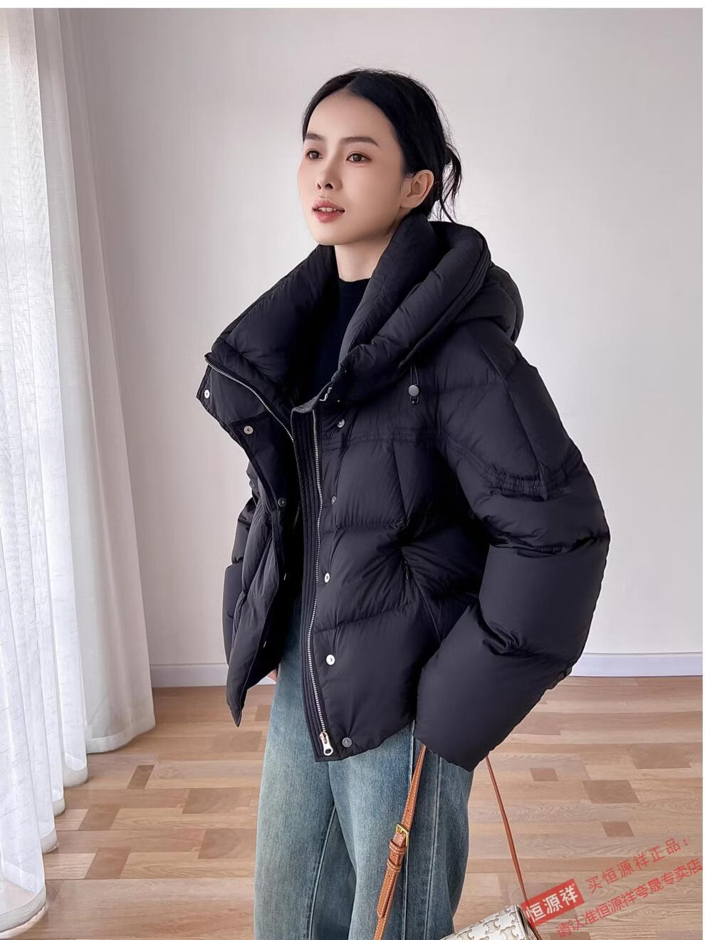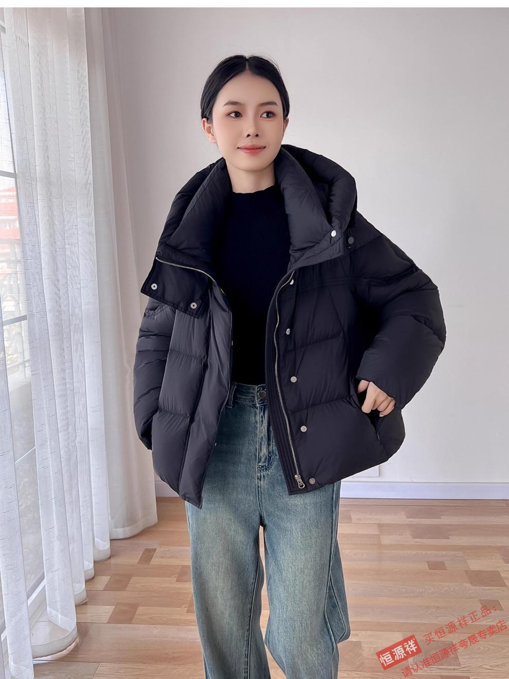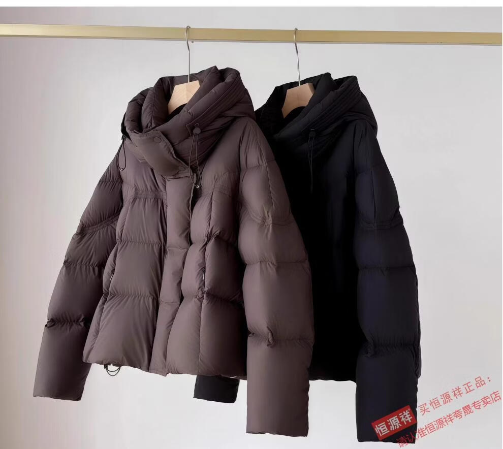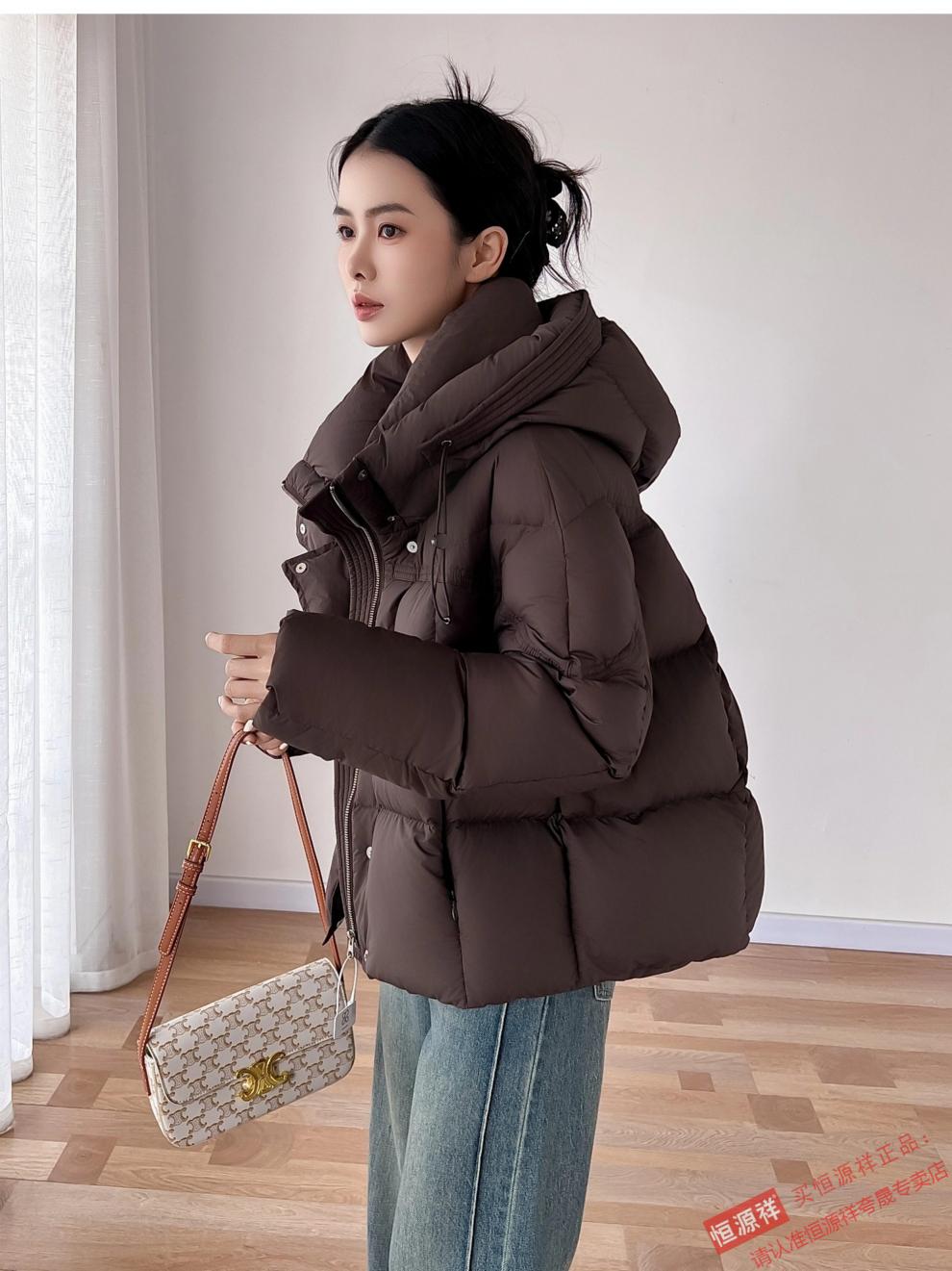 Hengyuanxiang 95 white goose down hooded down jacket for women 25 new soft puff thermos cup thickened short three-proof graphene heating temperament black new hooded goose down jacket S 34 thickened goose down jacket 110Jin Jin is equal to 0.5 kg