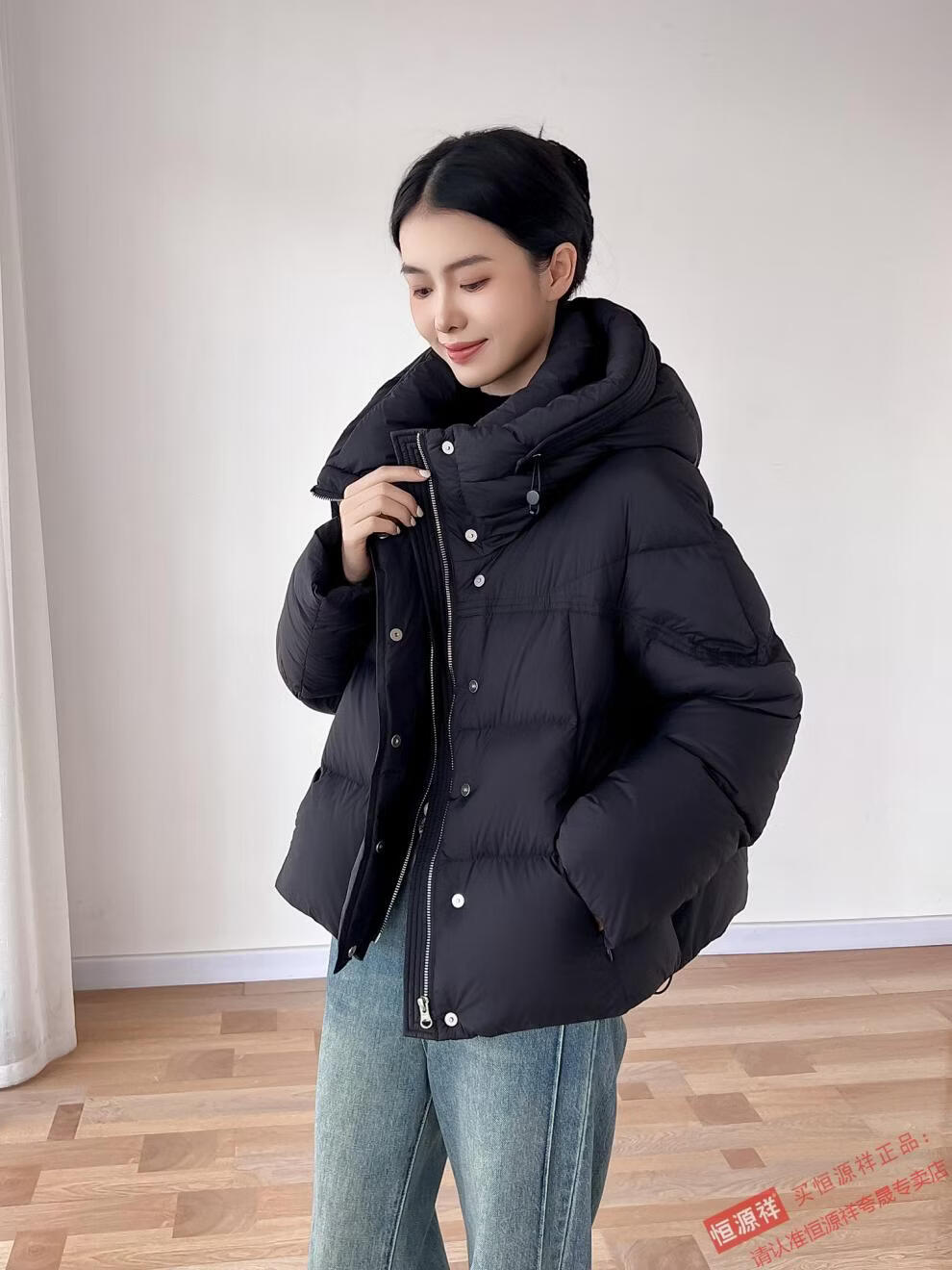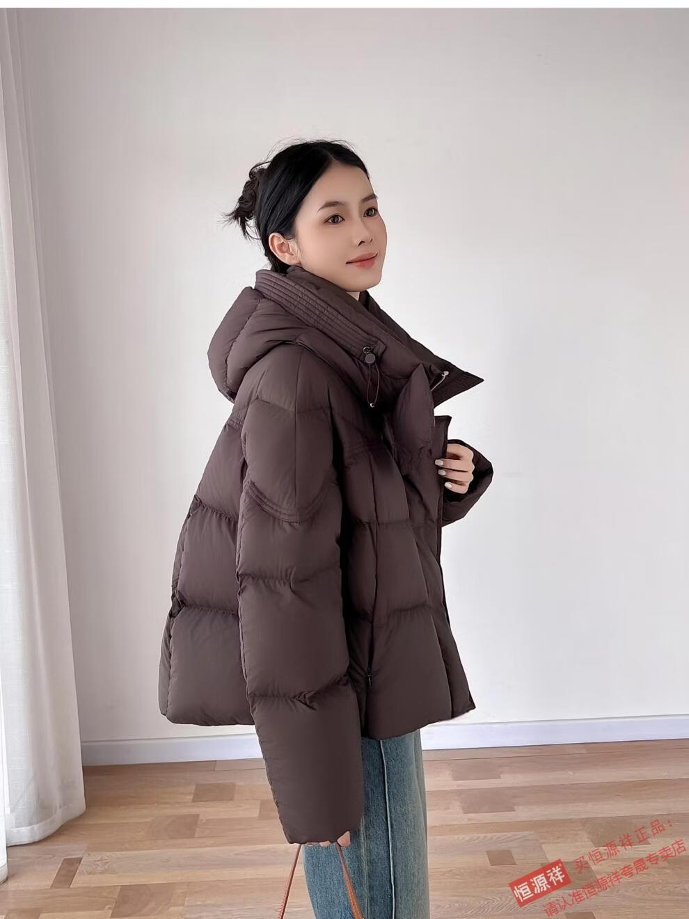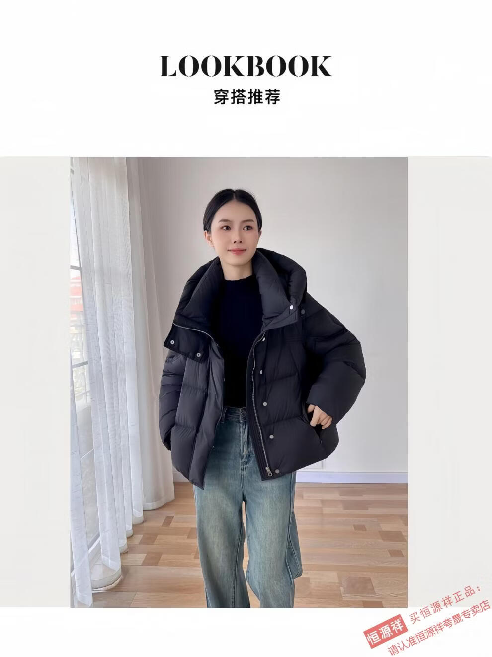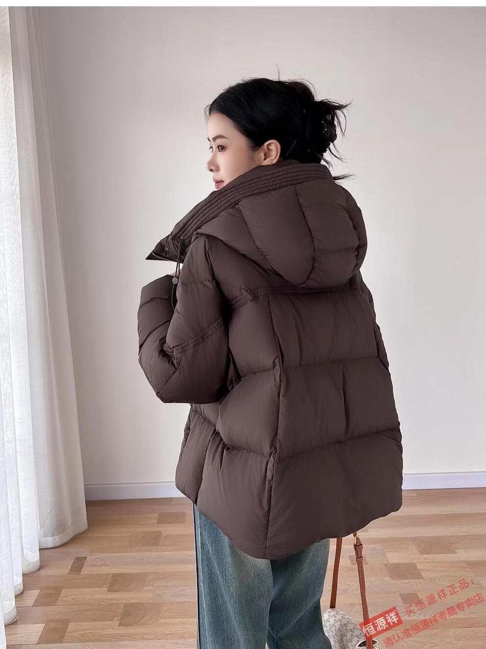 Hengyuanxiang 95 white goose down hooded down jacket for women 25 new soft puff thermos cup thickened short three-proof graphene heating temperament black new hooded goose down jacket S 34 thickened goose down jacket 110Jin Jin is equal to 0.5 kg