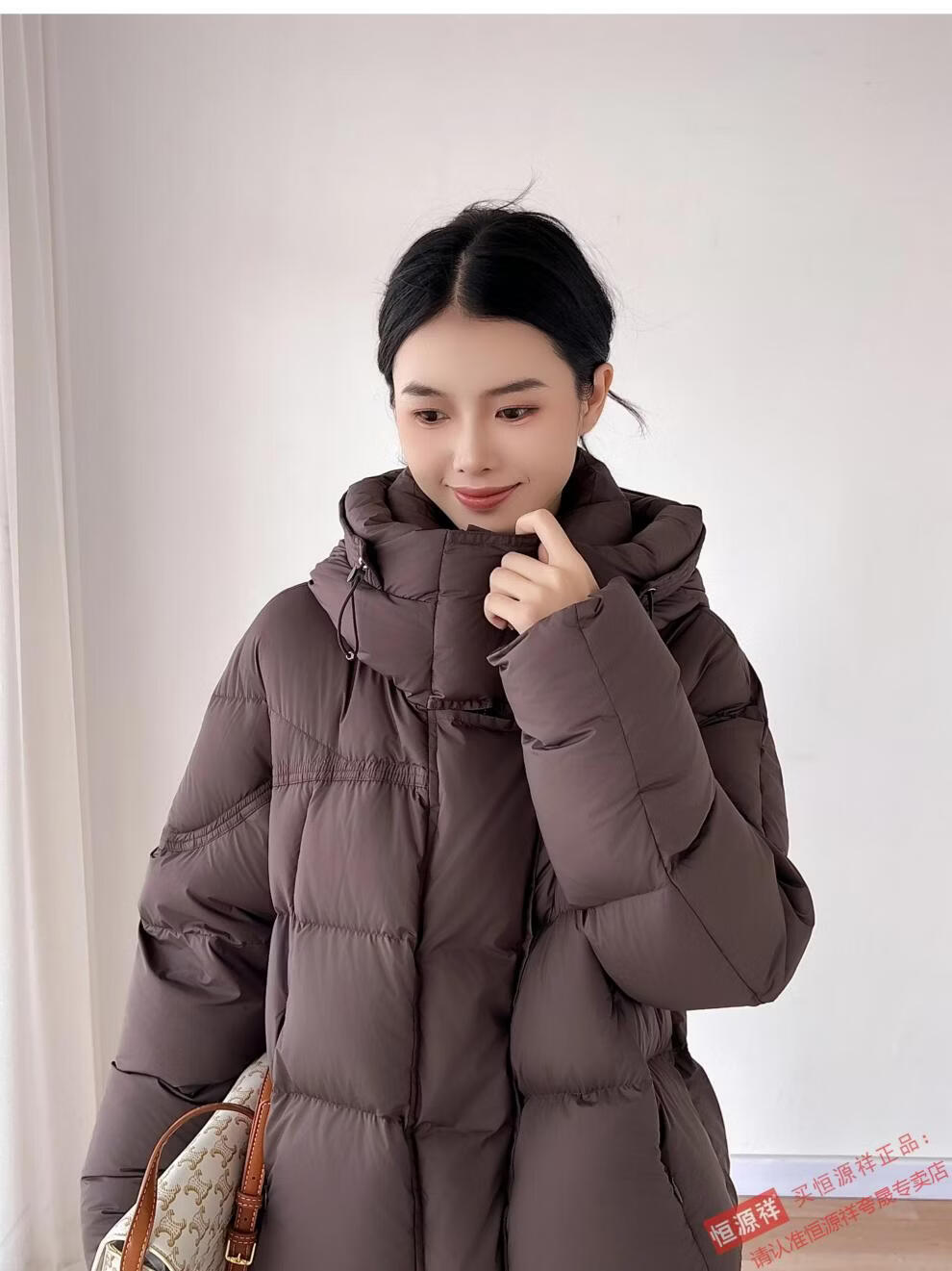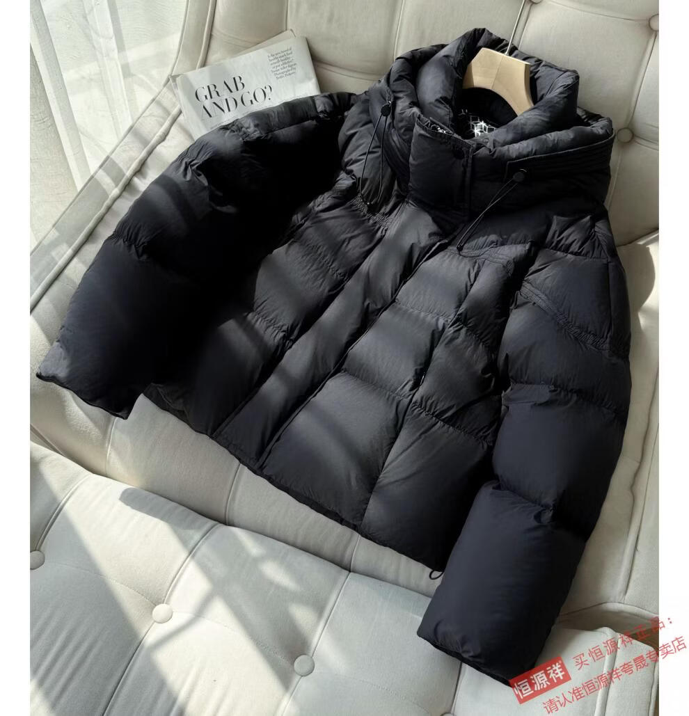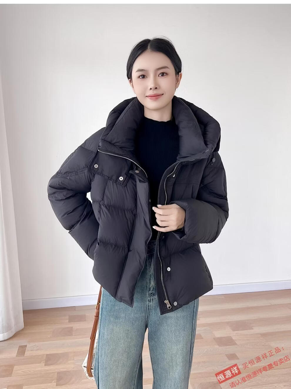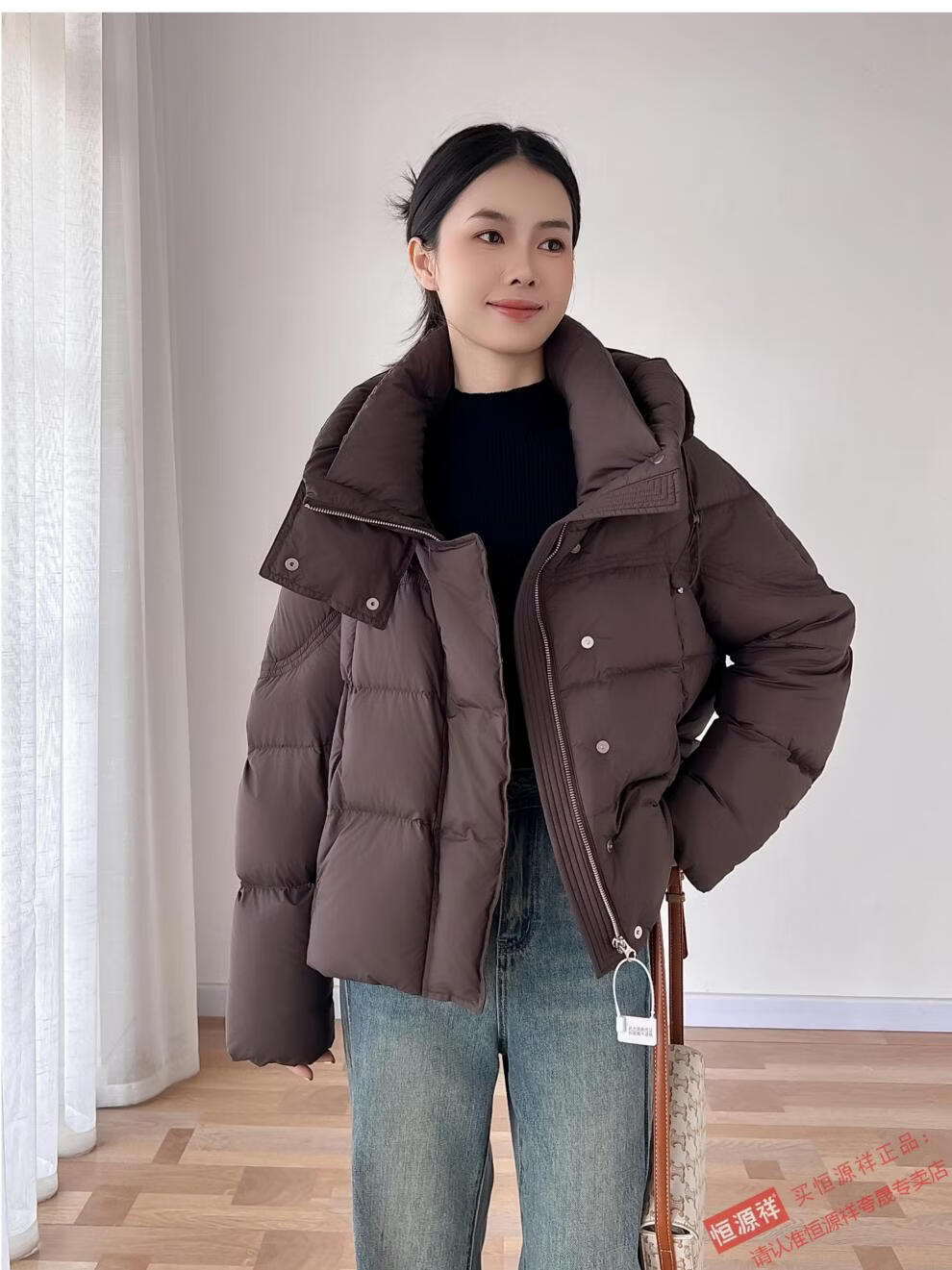 Hengyuanxiang 95 white goose down hooded down jacket for women 25 new soft puff thermos cup thickened short three-proof graphene heating temperament black new hooded goose down jacket S 34 thickened goose down jacket 110Jin Jin is equal to 0.5 kg