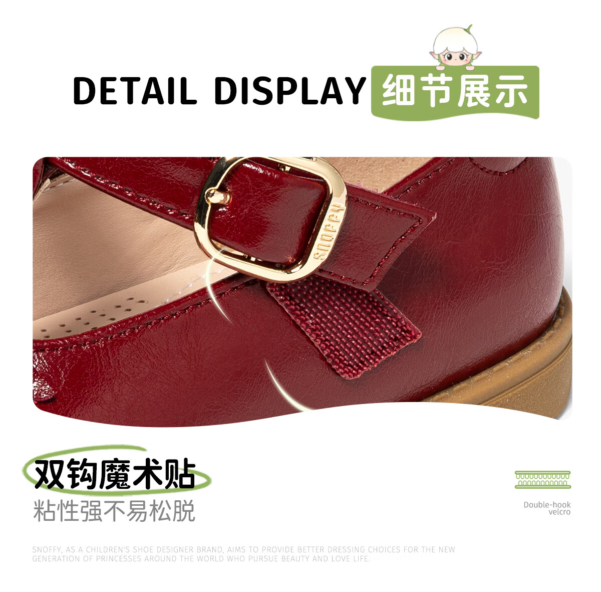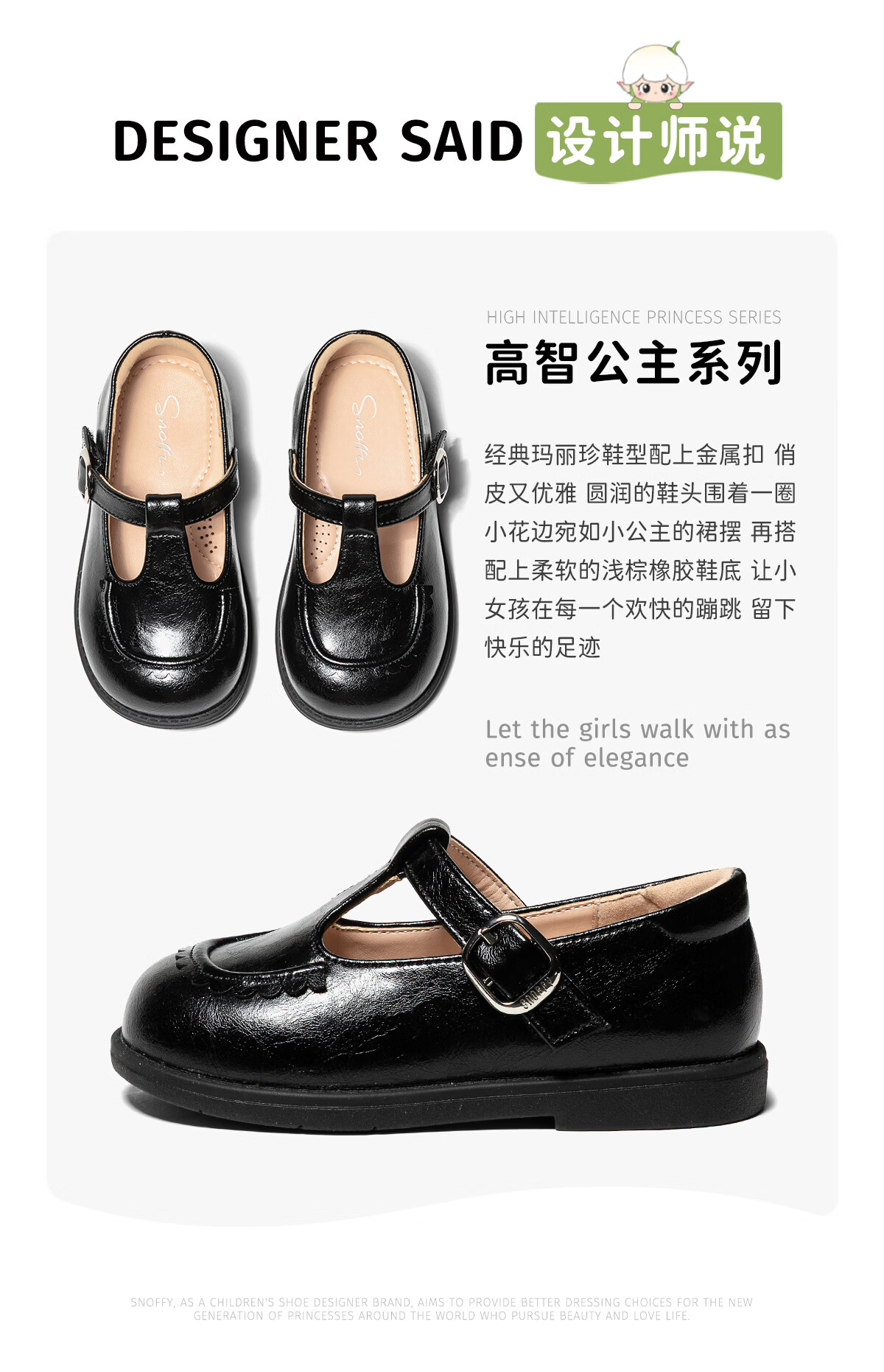 Snafy girls black leather shoes spring new 2026 little girl T-shaped campus soft sole non-slip baby shoes truffle black 25 feet length 15.55cm
