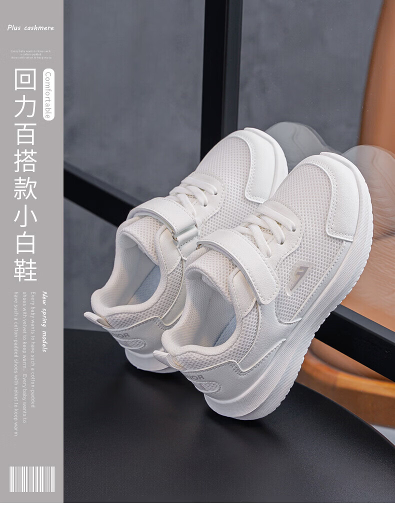 Pull back children's shoes children's sports shoes 2026 spring new boys mesh breathable dad shoes girls casual campus shoes white white -2120 34
